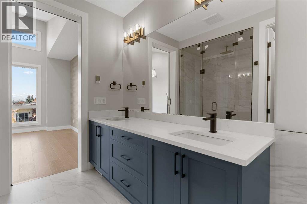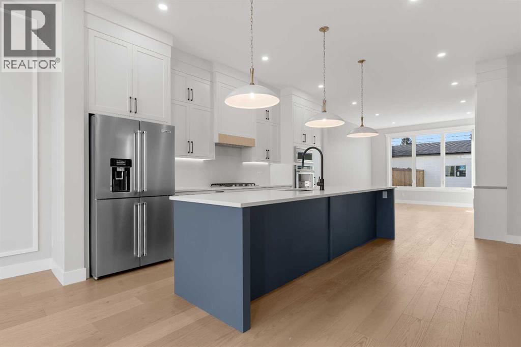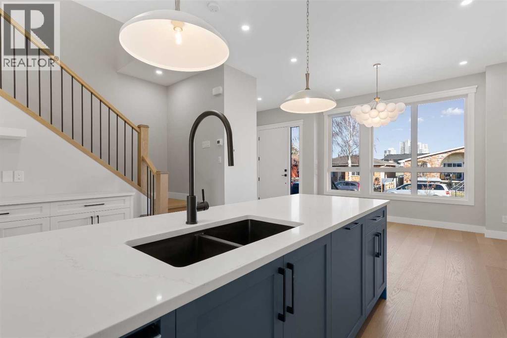 READY FOR IMMEDIATE OCCUPANCY! Welcome to the epitome of urban elegance, a stunning semi detached inner~city infill perfectly situated in one of Calgary’s most desirable communities, just minutes from downtown. This exceptional home includes a LEGAL BASEMENT SUITE (pending final City of Calgary approval), offering a fantastic opportunity for additional income or a comfortable private space for guests. Nestled in a quiet, tree lined neighbourhood yet only moments from the vibrant energy of downtown, this residence truly offers the best of both worlds, tranquility and convenience. Step inside and discover a meticulously designed, modern luxury home that blends style and functionality. The open concept main floor is ideal for entertaining, featuring a chef inspired kitchen with a massive quartz island, premium finishes, and ample workspace to spark your culinary creativity. The inviting living area showcases a stunning fireplace surrounded by custom built-ins, while the rear mudroom and convenient two piece powder room add everyday practicality. Step outside to your west facing backyard sanctuary, perfect for relaxing or entertaining long into Calgary’s summer evenings. Upstairs, the spacious bedrooms are designed for peace and comfort, each with large windows that fill the rooms with natural light. The primary suite impresses with a vaulted ceiling, a generous walk~in closet (offering more space to store your treasures than you’ll find in most infill homes) and an elegant and well appointed ensuite. An upper laundry room with sink also presents on this floor of the home. The lower level is masterfully finished and includes a full kitchen, a MASSIVE living area, a bedroom, and a bathroom, all enhanced by in~floor heating for ultimate comfort. Enjoy being just minutes from trendy boutiques, cafes, parks, and entertainment venues. Embrace the vibrant Rosscarrock lifestyle with this exceptional infill home ~ where luxury, location, and lifestyle meet! (id:6769)