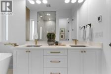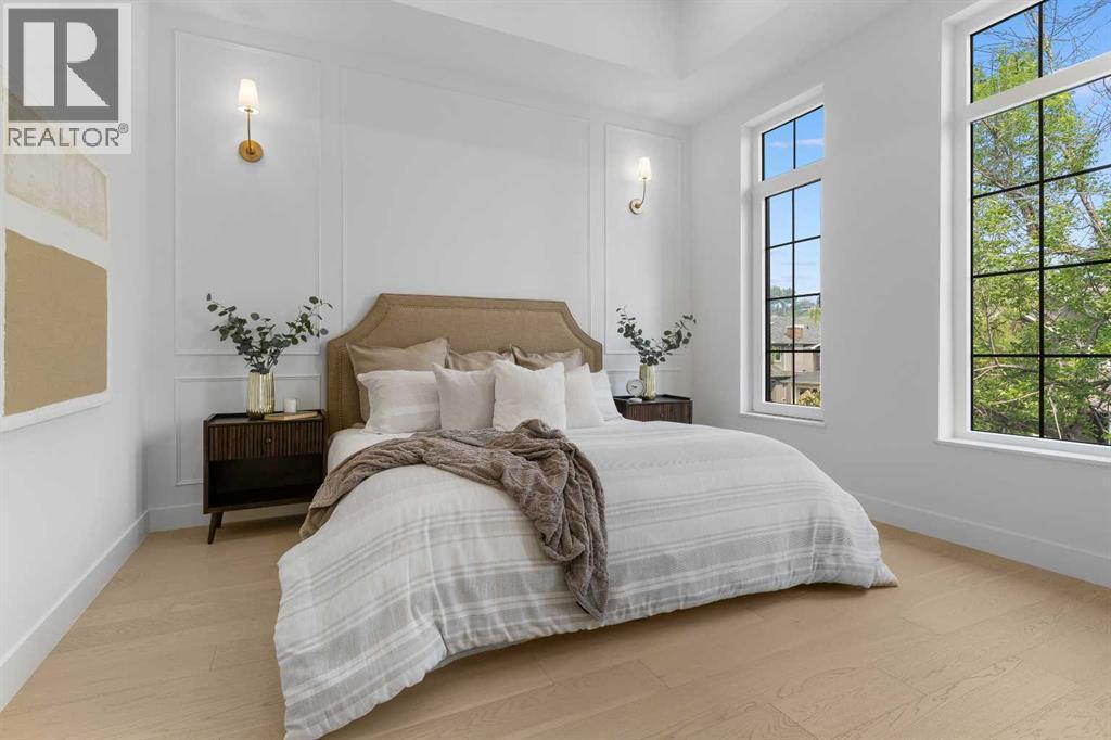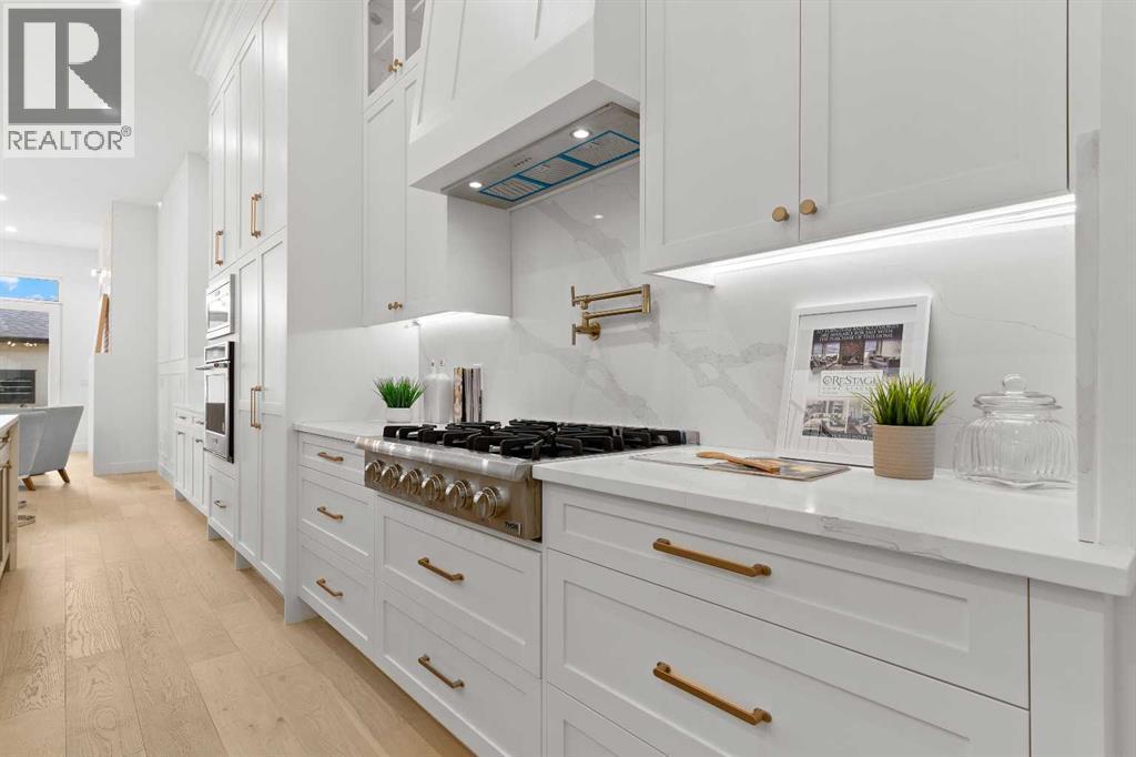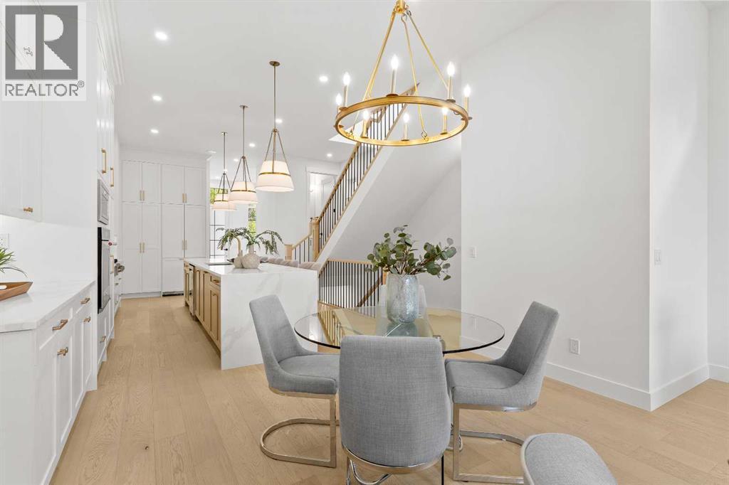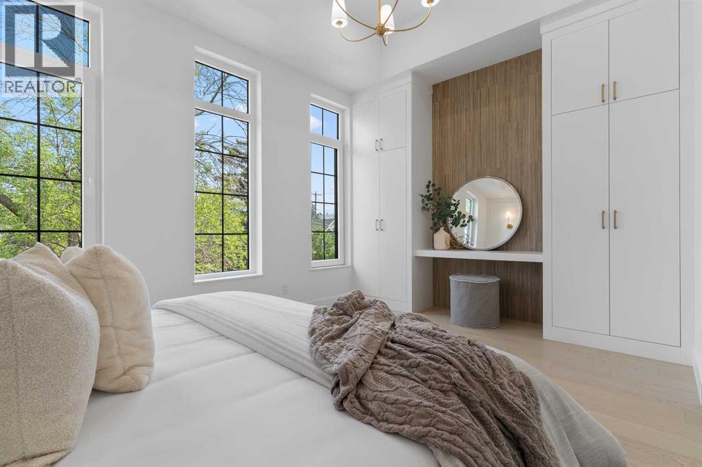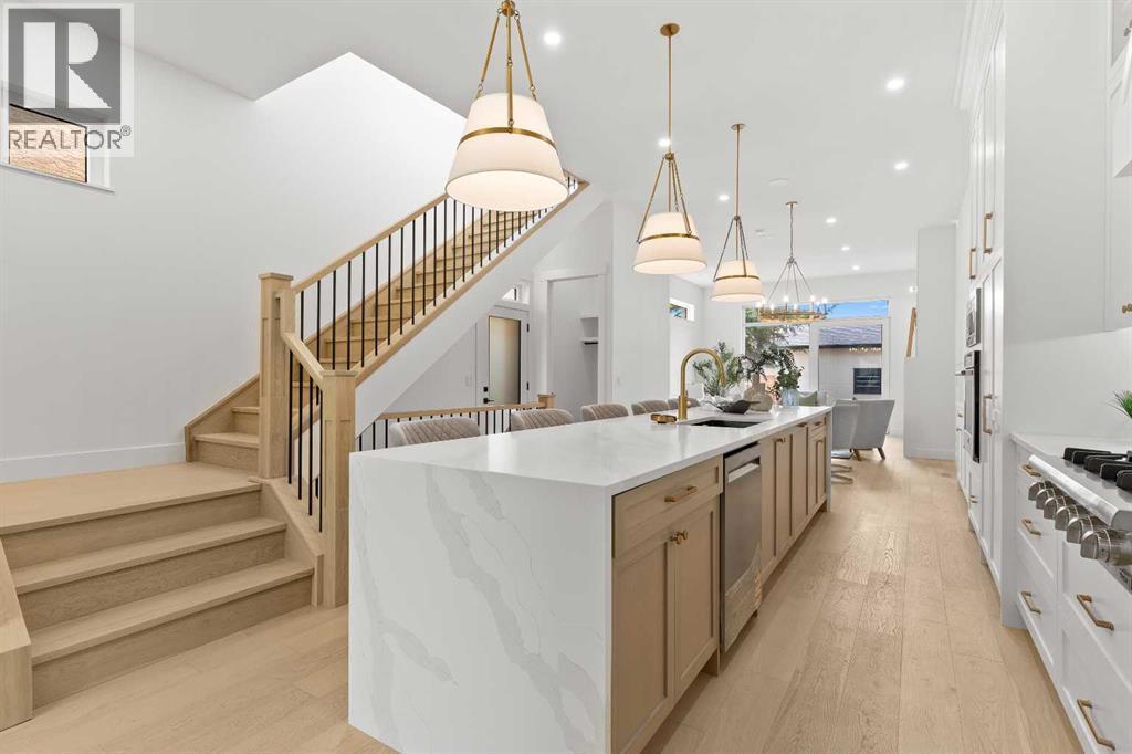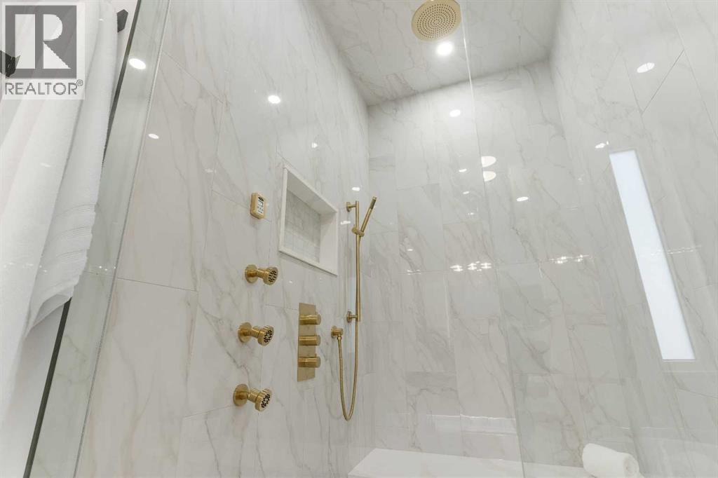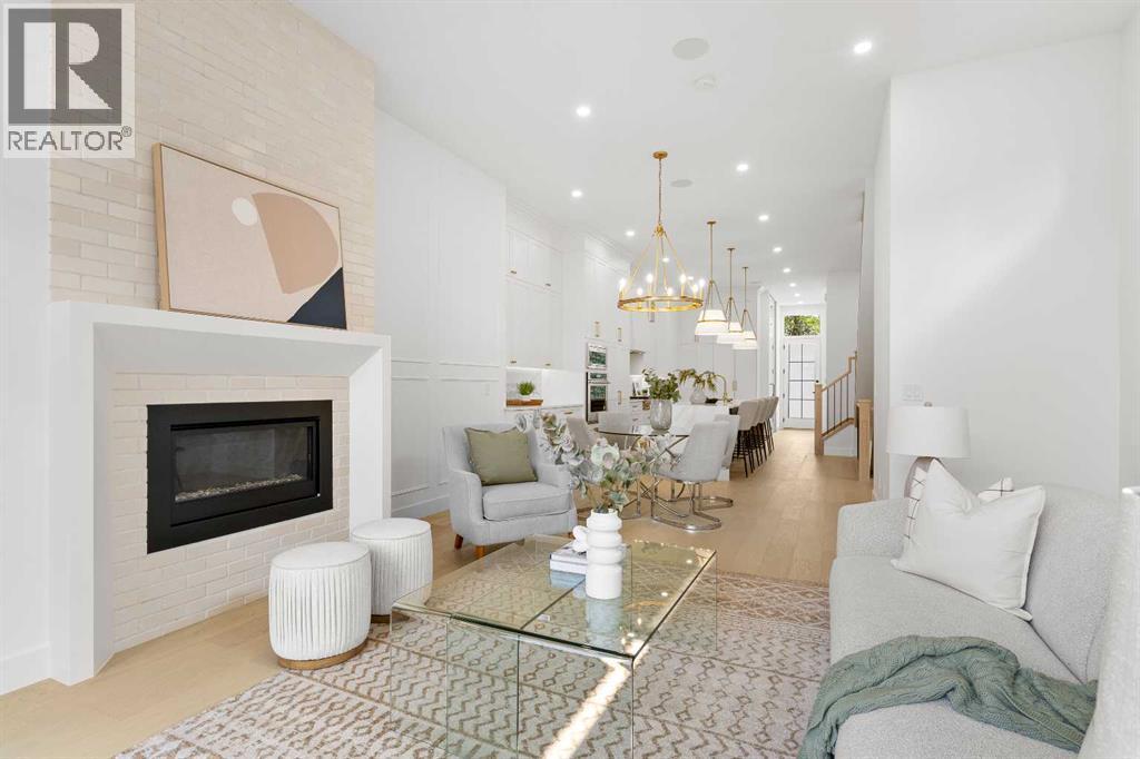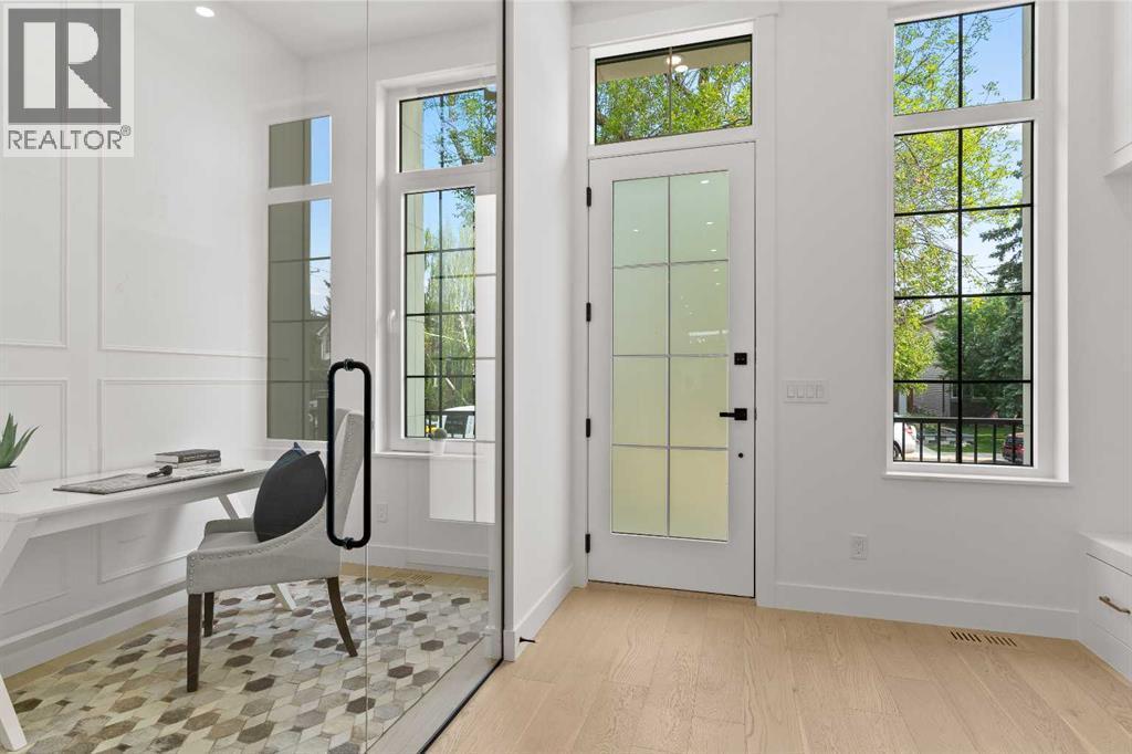 Welcome to one of West Hillhurst's FINEST homes—an exquisite detached infill accented with a stately limestone exterior, in one of Calgary’s most desirable and vibrant inner-city neighbourhoods. Thoughtfully designed for both everyday living and upscale entertaining, this home combines luxury, comfort, and functionality in a truly exceptional package. As you step inside, you're greeted by a spacious front entryway that offers a warm welcome and sets the tone for what’s to come. Just off to the right is a dedicated home office—perfect for remote work, creative projects, or a quiet retreat. The main floor unfolds into a stunning open-concept layout featuring a formal dining area, a chef-inspired kitchen with floor-to-ceiling high-end finishings, and a large living room anchored by a cozy fireplace. At the side entrance, a generous closet space helps keep things organized and clutter-free, making everyday life effortlessly stylish and functional. The south-facing backyard is bathed in natural light, providing the ideal setting for relaxing, entertaining, or enjoying sunny summer days. Upstairs, the primary suite is a true retreat, featuring a luxurious ensuite with a fully installed steam shower and a spacious walk-in closet. Two additional bedrooms on the upper level each offer private ensuites, giving family members or guests the ultimate in privacy and comfort. The fully finished lower level is designed for both entertainment and wellness; featuring a large media room perfect for movie nights or game days, a sleek wet bar, a private gym space, and a fourth bedroom with bathroom, that works beautifully as a guest room, secondary office, or flex space. Additional upgrades include a rough-in for A/C, a rough-in for a hydronic in-floor heating system in the basement, and a central vacuum rough-in. Ceiling speakers are installed on the main floor and in the basement, to set the mood in every space. With its unbeatable location, refined finishes, and thoughtful design, th is home is the perfect blend of modern elegance and inner-city convenience. Don’t miss your chance to own this extraordinary West Hillhurst residence. (id:6769)