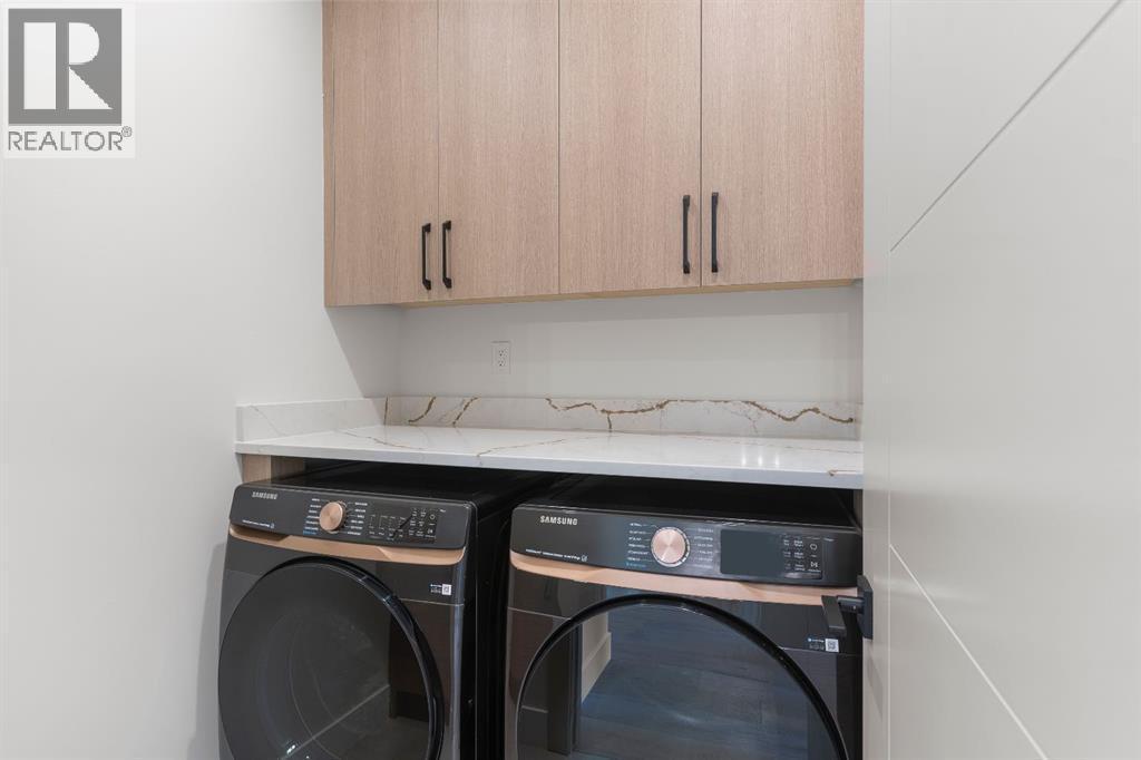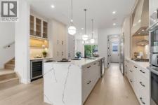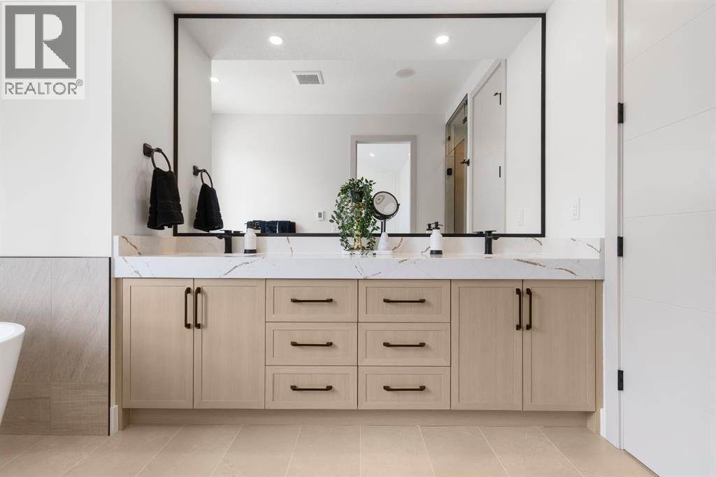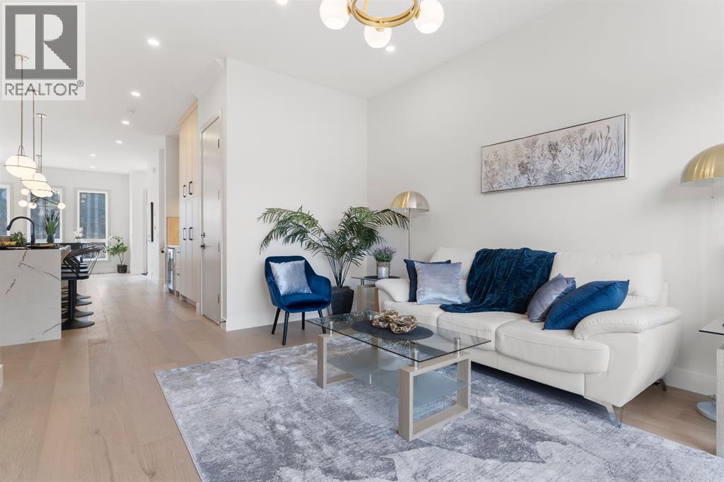 Glenbrook’s Finest! Step into a bright and inviting open-concept main floor where function meets elevated design. At the front of the home, a beautiful formal dining area sets the stage for stylish gatherings and elegant dinner parties. Just beyond, the chef-inspired kitchen boasts a massive waterfall quartz island, double-wide fridge, Bosch cooktop, wall oven, and dishwasher. Adjacent to the island, a thoughtful prep and storage area includes a built-in bar fridge and extended cabinets with convenient pull-out drawers—keeping everything organized and within easy reach for seamless entertaining. Warm neutral tones, built-in ceiling speakers, and timeless finishes create the perfect backdrop for both daily living and hosting with ease. At the rear of the home, a cozy fireplace lounge flows effortlessly onto a sprawling east-facing deck—ideal for enjoying quiet sunny summer mornings or relaxed evenings. Just off the kitchen, a spacious mudroom offers even more custom cabinetry to store your family’s essentials. Upstairs, a versatile loft area offers the perfect spot for a home office or reading nook. The massive primary retreat features heated floors in the spa-inspired ensuite, and a deep soaker tub. Two additional generously sized bedrooms and a stylish four-piece bath complete the upper level. Downstairs, the home offers even more flexibility with a bright and spacious legal basement suite (pending final City of Calgary approval). Featuring two private bedrooms and a large open living area, this level is ideal for extended family, guests, or future rental income. This home isn’t just beautifully finished—it’s a thoughtful investment in style, space, and long-term potential. (id:6769)