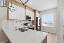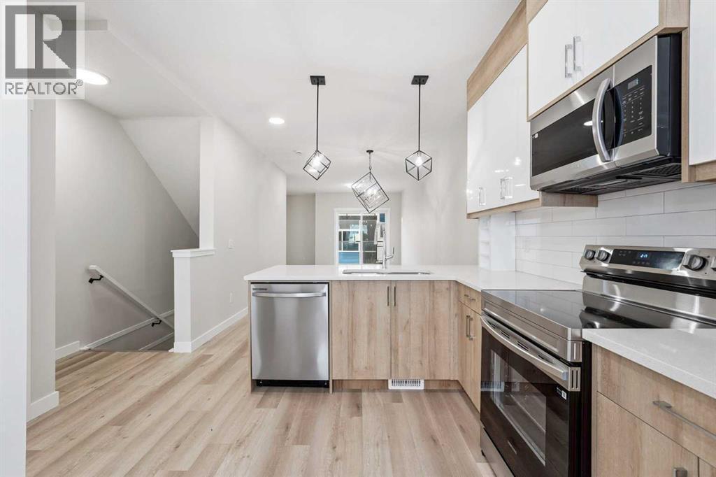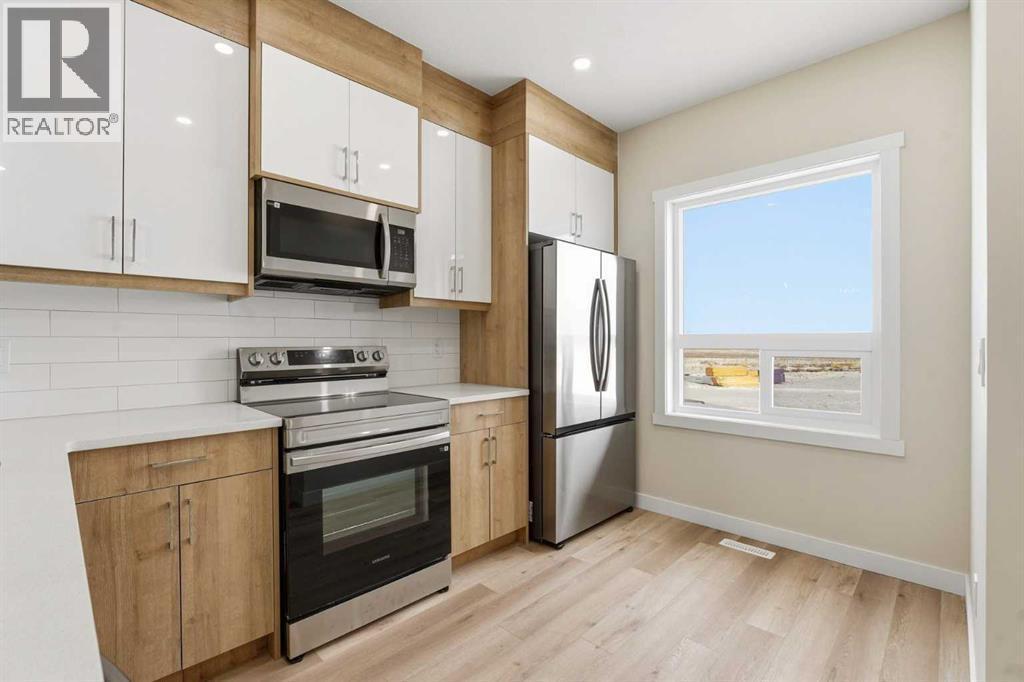 A rare combination of privacy, natural light, and functional design defines this contemporary 3-storey townhouse offering 3 spacious bedrooms, each with its own private ensuite—ideal for families, professionals, or multi-generational living.The entry level welcomes you with a practical foyer and a flexible bedroom that works perfectly as a guest suite, home office, or private retreat. The main floor is bright and inviting, featuring large windows, an open-concept layout, and a modern kitchen equipped with stainless steel appliances, sleek lighting, and a functional breakfast bar—perfect for entertaining or everyday living. A convenient powder room and a cozy balcony complete this level.Upstairs, you’ll find two generous primary bedrooms, both with private ensuites. One suite offers a walk-in closet and dual vanity for added comfort. A stacked laundry closet completes the top floor.Additional highlights include a single attached garage, low condo fees, ample visitor parking, and future nearby green space. With quick access to Stoney Trail, commuting and daily errands are seamless.Modern comfort, flexible living, and a convenient location—this move-in-ready home checks all the boxes. (id:6769)