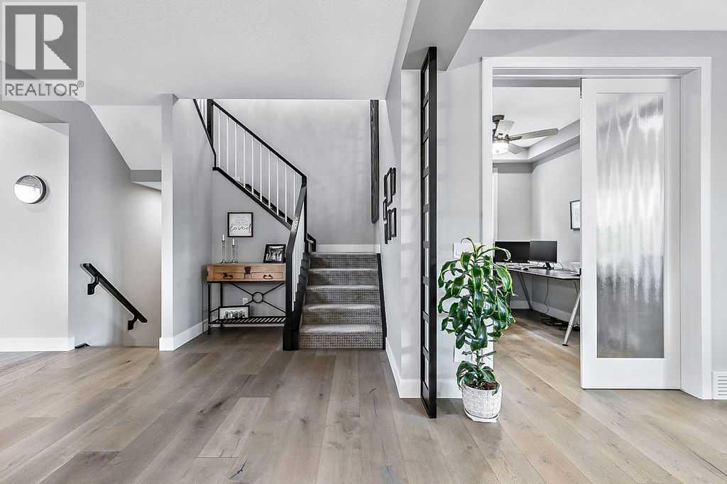 Welcome to this stunning, METICULOUSLY CARED FOR home in the one of a kind Mickelson Golf Course and lake community of Harmony. Situated steps from a greenspace, this home has great curb appeal and captures your attention with a full front verandah that invites you to sit and enjoy the serene surroundings. Step inside to a bright and sunny open floor plan that creates an amazing first impression. The breathtaking kitchen features high end appliances including a heavy duty Miele hood fan and a Miele 6-burner gas stove with gas oven. The trendy white cabinetry, a huge island and granite countertops add a touch of elegance to this functional space, perfect for any home chef. Throughout the main floor, beautiful hardwood floors lead you to a cozy den, ideal for a home office or quiet retreat. The spacious living room is a true highlight, showcasing a fireplace feature wall that serves as the perfect centerpiece for gatherings. Upstairs, you'll find a great sized bonus room, a convenient laundry room and three great sized bedrooms. The extra large primary bedroom is a luxurious escape, complete with a spa inspired ensuite and a generous walk in closet. The fully developed basement offers even more living space and includes a fully SELF CONTAINED FOURTH BEDROOM WITH ITS OWN LAUNDRY, walk in closet and 4 piece ensuite; also a 2 piece bathroom and huge games/family room, perfect for entertaining or relaxing with loved ones. With nearly 2,800 square feet of thoughtfully designed space, this FOUR BEDRROM FAMILY HOME features a floor plan that effortlessly accommodates a variety of lifestyles. Move in and enjoy the incredible amenities Harmony has to offer including two private lakes, miles of beautiful pathways, parks, playgrounds, the future Village Centre, a WORLD CLASS MICKELSON GOLF COURSE and quick easy access to the mountains. (id:6769)