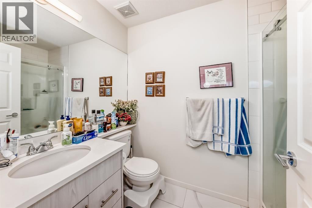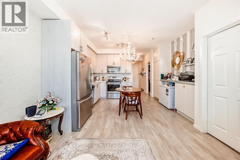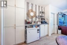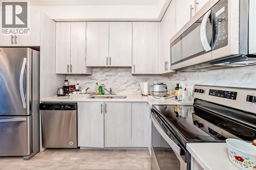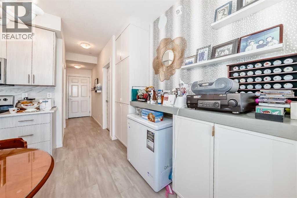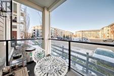 The previous show-suite offers a professional split-bedroom design where the central living area separates the two bedrooms for maximum privacy. As a main-floor unit, this home features 9-foot ceilings that create a spacious and open atmosphere. The entry foyer includes a coat closet and leads into a modern open-concept space designed for both daily living and entertaining. The gourmet kitchen features Blizzard-Quartz countertops, a marble tile backsplash, and stainless steel appliances. A breakfast bar that overlooks the living room and a designated dining area. The cabinetry is upgraded with 42-inch upper cabinets, under-cabinet lighting, and undermount sinks. The primary suite fits a king or queen-sized bed and includes a private walk-in closet. The attached ensuite bathroom features a deluxe shower and a quartz countertop with a banjo arm for extra surface space. On the opposite side of the unit, the second bedroom fits a queen bed and sits directly next to the second full bathroom, which includes a deep soaker tub. High-end finishes are found throughout the home, including silver oak cork flooring, custom lighting, and designer wallpaper. The living room comes with a pre-installed TV mount and provides direct access to a private concrete patio. For extra convenience, the in-suite laundry room includes a stacked washer and dryer with a built-in organizer. This home is located within walking distance of Sage Hill Crossing, T&T Supermarket, and Walmart. (id:6769)