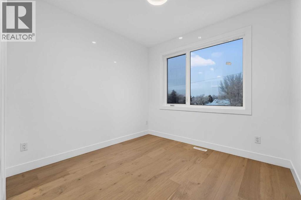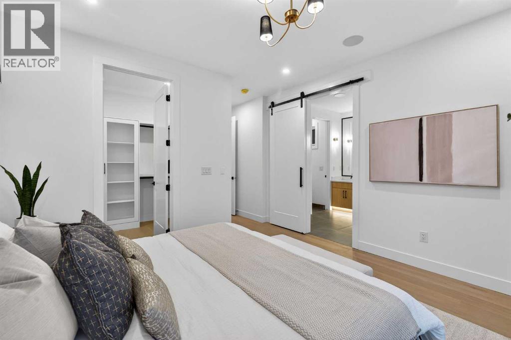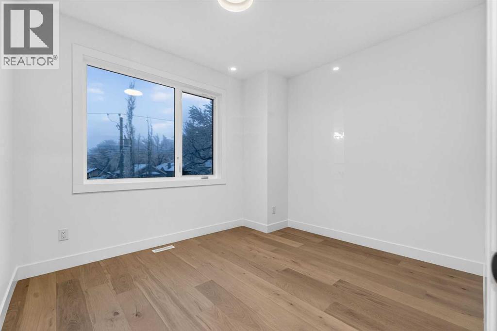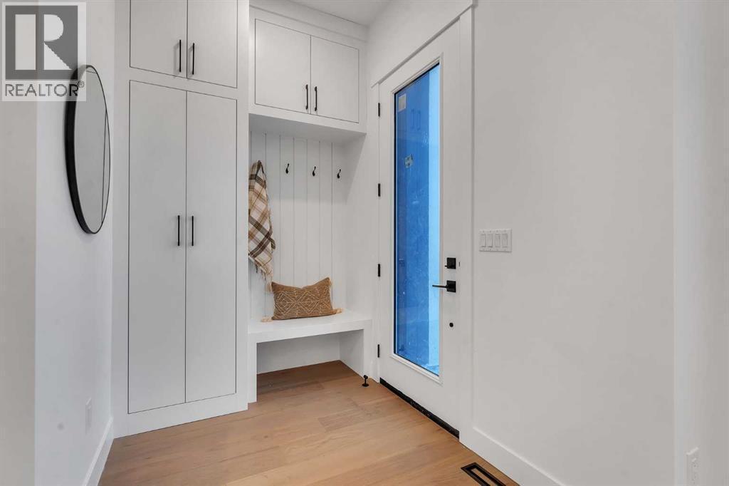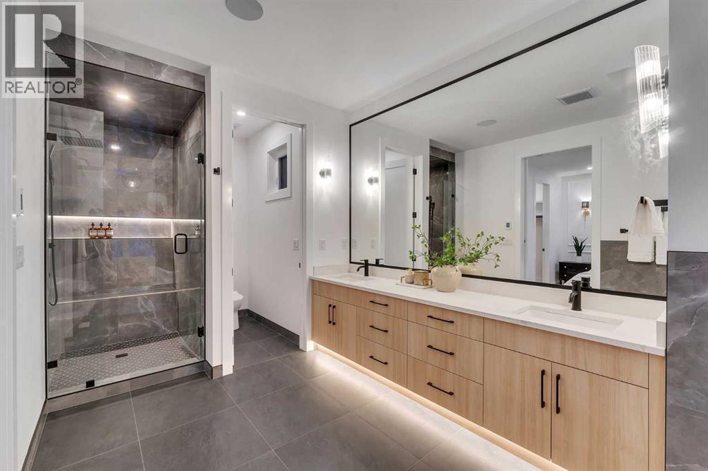 OPEN HOUSE JAN 31ST 12-3PM **FREE A/C INSTALLED IF THE SALE IS FIRM BEFORE FEBRUARY 15TH** IMMEDIATE POSSESSION AVAILABLE | 4 BEDROOMS | 3.5 BATHROOMS | WALK-OUT BASEMENT WITH GYM, REC ROOM & WET BAR | SUNNY SOUTH FACING BACKYARD WITH DOWNTOWN VIEWS | Welcome to this brand-new, move-in ready infill that perfectly blends modern sophistication with smart, functional design and an open concept layout. This home has been thoughtfully curated with high-end finishes, tons of natural light, and a layout that combines luxury with practicality. Stepping inside, you're greeted with soaring 10-foot ceilings and expansive windows bringing in an array of natural light. The open-concept main floor flows seamlessly, starting with a welcoming foyer featuring custom built-in cabinetry and a bench - offering convenience, storage, and a stylish first impression. The dining area, bathed in sunlight, sets the tone for everything from casual family dinners to elegant hosting. Just steps away from the dining area - the gourmet kitchen is a true centrepiece and a chef's dream. The kitchen boasts floor-to-ceiling custom cabinetry, quartz countertops, LED under-cabinet and built-in lighting, and top-tier KitchenAid stainless steel appliances. A striking and expansive waterfall island anchors the space - perfect for prepping meals, morning coffees, evening cocktails, or just to get some work done. Extras like a built-in pantry with custom cabinetry, tiled coffee station, and floating shelves with integrated lighting elevate both form and function. Just off the kitchen, you have your own private home office offering a custom glass door and providing a quiet retreat for remote work or study. The spacious living room features a stunning tiled fireplace and oversized double sliding glass patio doors that extend your living space outdoors to the backyard patio offering downtown views - ideal for summer entertaining, morning coffees, or quiet evenings. A well-designed mudroom with built-in cabinets provides additional storage space and helps keep daily essentials organized. A chic powder room with a quartz vanity, designer fixtures, LED under lighting, and stunning wallpaper adds a refined touch to the main floor. Upstairs, the primary suite is a showstopper. Custom detailing, an expansive walk-in closet, and a spa-inspired ensuite with IN-FLOOR HEATING, a quartz double vanity, LED accent lighting, backlit mirror, free-standing tub, and oversized glass shower make this a true retreat. Two additional bedrooms, each with their own spacious walk-in closets, provide cozy, private spaces and share a beautifully appointed four-piece bathroom. A dedicated laundry room with custom cabinetry, quartz countertops, and a sink finish off this masterful upper level. The fully finished WALK-OUT basement is thoughtfully designed and features an additional bedroom, four-piece bathroom, gym/exercise area, a wet bar, and recreation area perfect for additional living space. (id:6769)