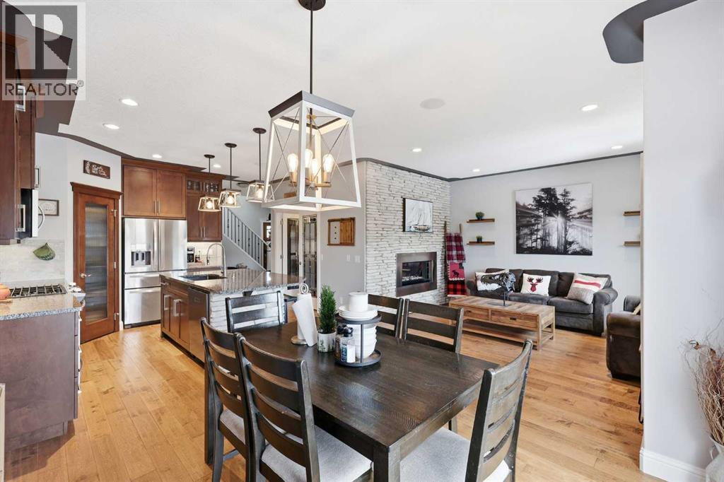 Welcome to 166 Fireside Bend, a well-designed family home backing onto a landscaped pathway in the heart of Fireside. Offering 2,000 developed SQ FT, his home is ideally situated on a generous lot. With schools, playgrounds, parks, and Fireside’s retail hub just steps away, this location is perfect for families seeking both convenience and a strong sense of community. The main floor features a bright, open-concept layout with large rear-facing windows overlooking the backyard. The kitchen is the true centerpiece, showcasing full-height cabinetry with glass display uppers, a built-in wine rack, granite countertops, stainless steel appliances including a gas range, corner pantry, and a large island with breakfast bar and eye-catching stone detail. Thoughtful lighting and generous prep space make it ideal for both everyday living and entertaining. The dining area offers easy access to a well-designed two-tiered deck, creating a private outdoor space for hosting, relaxing, and enjoying summer evenings while overlooking mature landscaping and the pathway beyond. The great room is anchored by a stone feature wall with a double-sided fireplace, shared with the main floor office or den; A flexible space ideal for working from home or a quiet retreat. Upstairs, a vaulted-ceiling bonus room provides excellent additional living space filled with natural light. The primary suite features a walk-in closet and a well-appointed ensuite with jetted tub and standalone shower. Two additional bedrooms, a full bathroom, and a conveniently located laundry room complete the upper level. The undeveloped basement is ready for future customization with bathroom rough-in and large windows for added natural light. This home offers exceptional value in one of Cochrane’s most family-friendly communities! Book your private showing today before it’s gone! (id:6769)