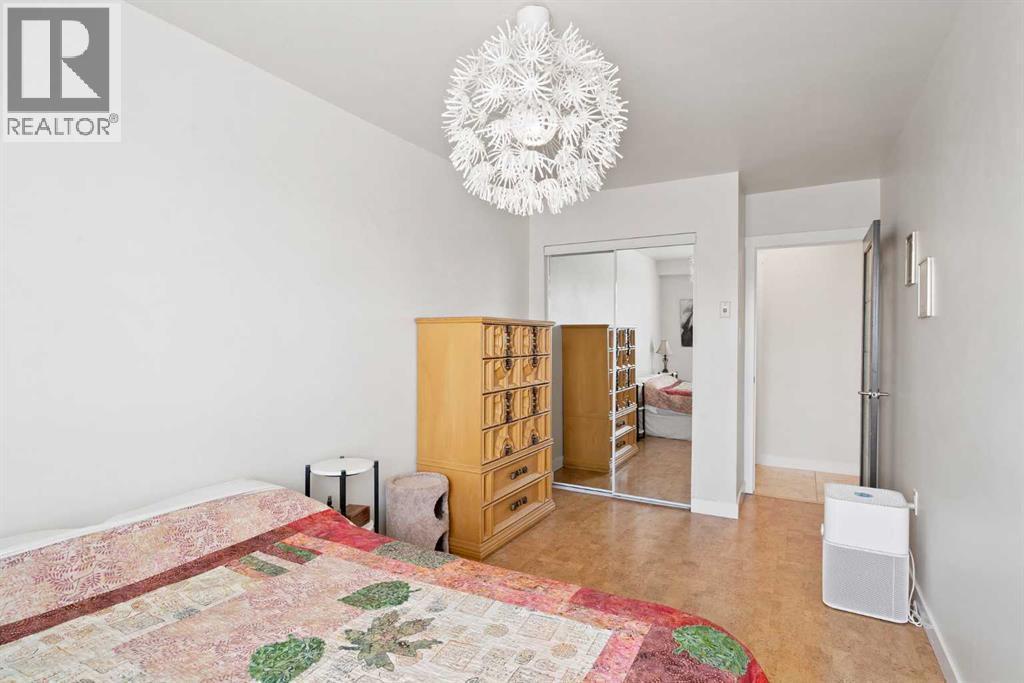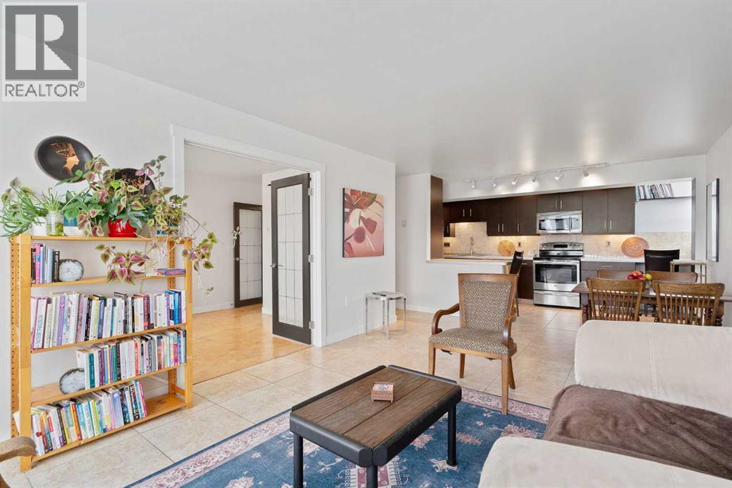 Welcome to this spacious 2-bedroom, 1-bath unit that offers over 860 sq. ft. of thoughtfully designed living space in one of Calgary’s most vibrant inner-city communities. Located on the top floor of a solid concrete building, this corner unit is filled with natural light from multiple exposures and enjoys downtown views from its northeast-facing balcony. Inside, the open-concept kitchen is both stylish and functional, featuring stainless steel appliances including a new Miele dishwasher, espresso cabinetry, modern hardware, soft-close drawers, a breakfast bar, and plenty of cabinet and counter space. The kitchen flows seamlessly into the dining area and living room, where large windows brighten the space. Tile flooring flows throughout for easy upkeep, and the bedrooms are lined with warm cork. From the living room, French doors open to the second bedroom that can be used as a home office, complete with cork flooring and a closet. The spacious primary bedroom offers a large closet and sits next to 4-piece bathroom with soaker tub and a full-size LG washer/dryer combo, adding everyday convenience. There’s also a deep in-unit storage closet, perfect for keeping your belongings organized. Additional shared storage is available in the building. This pet-friendly condo welcomes your furry friends (no size restrictions, board approval required), and nearby off-leash dog parks make it easy to get outside and explore. Covered parking is included, with the option for additional permit parking out front.Located in Bankview, a hidden gem just minutes from downtown, this home is surrounded by unique streets and plenty of parks. Local cafés, restaurants, and shops are all within walking distance—plus a Starbucks just steps from your door. You’re also conveniently close to both 17th Ave SW and Marda Loop, giving you easy access to everything the city has to offer. This condo combines thoughtful design, modern updates, offering a comfortable and vibrant space to call home in the heart of Calgary. Book your showing today. (id:6769)