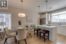 With light pouring in from every angle, this impeccably designed 2020 constructed corner-unit townhouse feels fresh, bright and instantly inviting. In collaboration with a professional designer, every finish from the classic white kitchen to the quartz countertops was thoughtfully selected for timeless style and everyday comfort. The open concept main floor offers a spacious living space with room for a desk nook for working from home, a bright dining area for weeknight meals, and plenty of space to relax together. A stylish kitchen with stainless steel appliances including a French door fridge, and a striking tile backsplash beckons you to try out new recipes. Step outside to your private balcony for your morning coffee, evening grilling, or simply enjoying the fresh air, sheltered by a privacy wall. Upstairs, both bedrooms offer double closets and private ensuites, providing comfort and convenience for guests or a roommate. Laundry is neatly tucked into the upper hallway. The attached tandem double garage provides parking plus generous storage space for seasonal gear. With 9’ ceilings on the main floor, a neutral colour palette, and meticulous upkeep, this move-in ready home feels airy and welcoming. Located just minutes from the shopping at Cross Iron Mills, as well as grocery stores, restaurants and pubs. Enjoy quick access around the city from Stoney and Deerfoot Trail. There are pathways, parks, and playgrounds nearby to explore. This home blends convenience with lifestyle and is ideal for a first-time buyer, young couple, small family or busy professional. Book your private tour and see why this is the perfect fit. (id:6769)