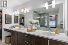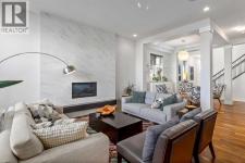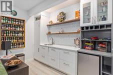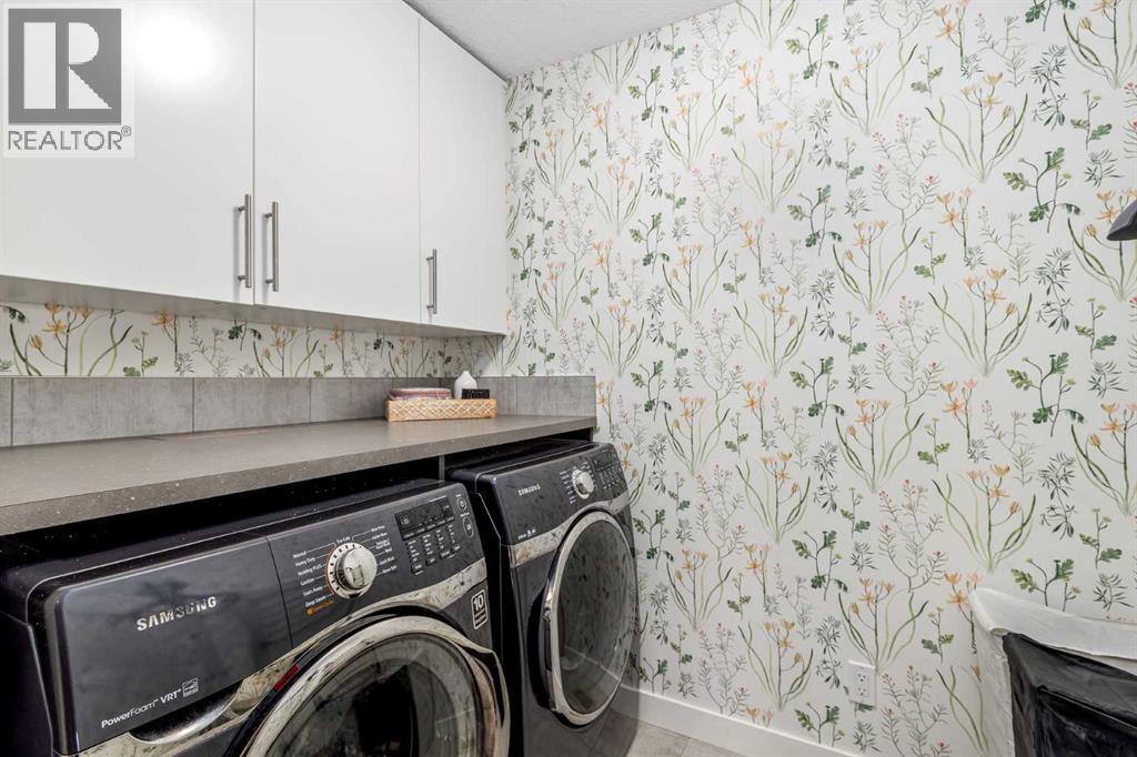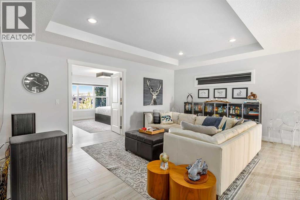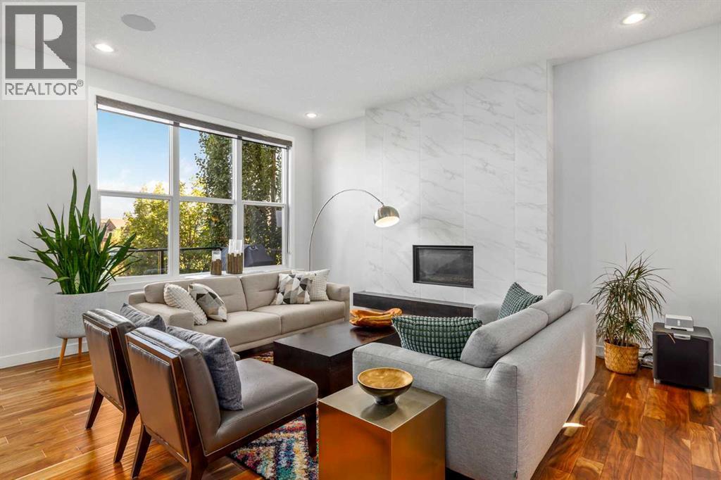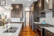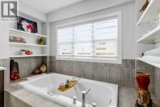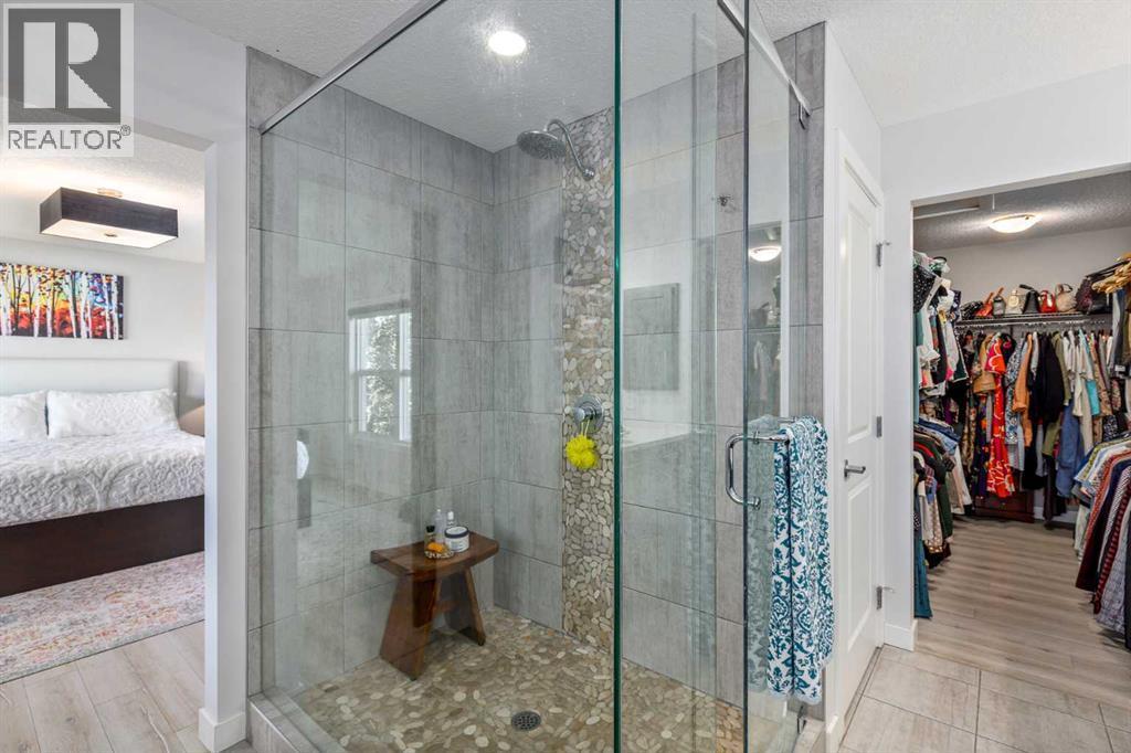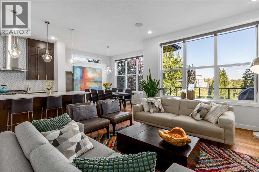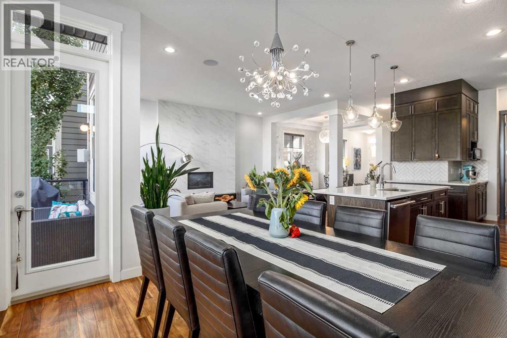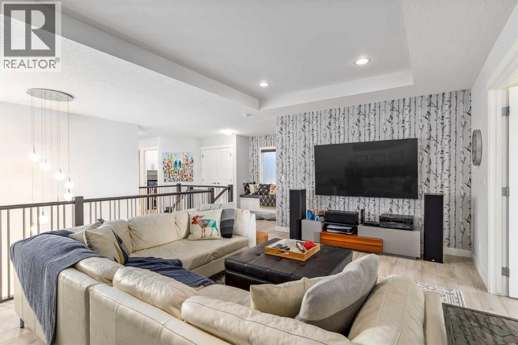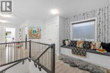 **Open House Saturday January 17th 1-3PM** From the moment you step inside, this stunning home feels like something out of a Pinterest board or a high-end interior design magazine. Every detail has been thoughtfully selected & expertly executed, making it a true showstopper that shows 10 out of 10. Located in the prestigious community of Riverstone in Cranston, this 2,500 sq ft two-storey home offers an unbeatable lifestyle—BACKING DIRECTLY onto a tranquil NATURAL RESERVE & fronting onto a kid-friendly playground. It’s the ideal combination of luxury, functionality, & location. Inside, you’re greeted by 10' ceilings, acacia hardwood floors, & a layout that flows effortlessly. The front dining room features a double tray ceiling & a striking designer light fixture, while the expansive rear living room is anchored by a gas fireplace wrapped in marble-style tile with a lower hearth. Large windows along the back wall frame serene views of the green space beyond, bringing the outdoors in. The chef’s kitchen is a showpiece—featuring full-height dark-stained cabinetry with bar pulls, white quartz counters, upgraded appliances, & a stunning herringbone tile backsplash that extends to the ceiling around the hood fan. A cabinet-style pantry wraps into a coffee bar nook for added function & flair. The back mudroom connects seamlessly to the oversized garage & includes locker-style built-ins. A beautifully wallpapered 2-piece powder room adds a touch of charm. Upstairs, the large bonus room is wrapped in modern railing & showcases a birch forest wallpaper feature wall, built-in ceiling speakers, & laminate floors that continue throughout the upper level (carpet only on the stairs). A convenient built-in desk area outside the kids’ bedrooms creates a perfect zone for homework or study sessions, while a built-in bench at the top of the stairs offers a cozy reading nook. All three bedrooms include custom California Closet-style built-ins for thoughtful storage. The primary suite o verlooks the peaceful reserve & features a spa-like ensuite with a large soaker tub framed by a picture window, a massive glass shower, dual sinks with a dedicated vanity space, & a barn-style door leading to the generous walk-in closet. The professionally finished basement, completed by the builder, extends the living space with durable laminate floors, a spacious rec room, a bright fourth bedroom with a wallpaper feature wall, a 4-piece bathroom, & a sleek wet bar complete with sink & mini fridge—ideal for entertaining or relaxing movie nights. Step outside to discover your private oasis. The beautifully landscaped backyard is designed for both comfort & calm, with mature trees providing privacy & a two-tiered deck perfect for hosting or unwinding. A cozy hot tub area invites you to relax year-round, while thoughtful details like under-deck storage and low-maintenance landscaping enhance the functionality. (id:6769)