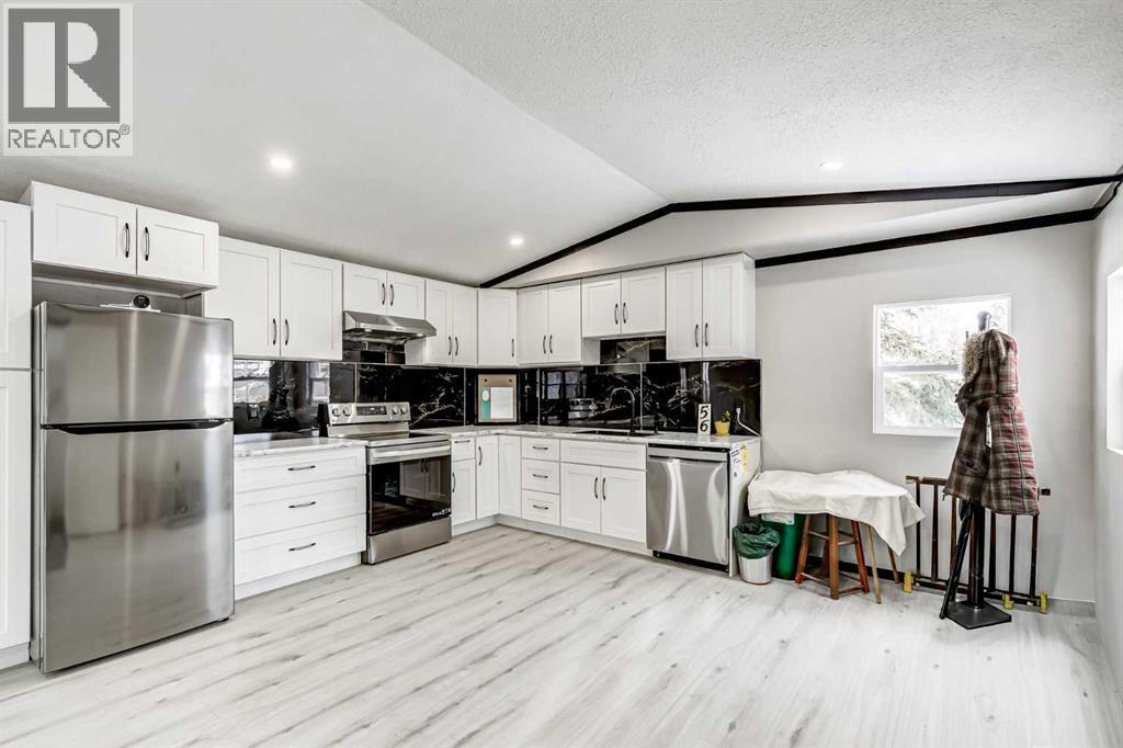 OPEN HOUSE Saturday January 24th 11am-1pm. This meticulously updated home combines long-term structural integrity with a stunning, modern aesthetic. Following a series of upgrades, including a new metal roof & furnace in 2009, full replacement of plumbing in 2011, and updated wiring in 2013, this property underwent a complete professional transformation in 2025. The interior has been reimagined with a contemporary open-concept layout, featuring all-new drywall, Air conditioning, freshly painted, and smooth ceilings accented by LED pot lights and designer fixtures. The gourmet kitchen is a true showpiece, boasting brand-new cabinetry, elegant tile backsplashes, and a full suite of stainless-steel appliances, including an electric range, hood fan, dishwasher and fridge. Every inch of the living space has been refined with new flooring, interior doors, and trim. The bathroom is equally impressive with full renovation featuring a brand-new tub and vanity with modern faucets. Just outside you’ll find a space-saving tower washer/dryer. The exterior is built for durability and curb appeal, all completed in 2025 featuring new windows & exterior doors for enhanced energy efficiency and security, premium vinyl siding, Trimlock skirting with integrated rodent guard, structure was recently leveled and furnace tune-up completed. A large yard offers ample space for recreation, complemented by a convenient two-car parking pad. Move in with total peace of mind knowing the major systems have been modernized and the interior is effectively brand new. Calgary Village is a well-run park with clubhouse amenities include a gym and recreation room. This unbeatable location has easy access to the vibrant events at Elliston Park and seamless connections to Stoney Trail, putting the entire city within effortless reach. Don’t miss this rare opportunity to own this gem in a prime Calgary location. (id:6769)