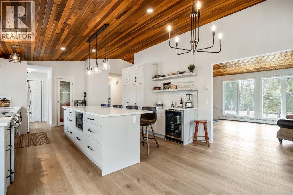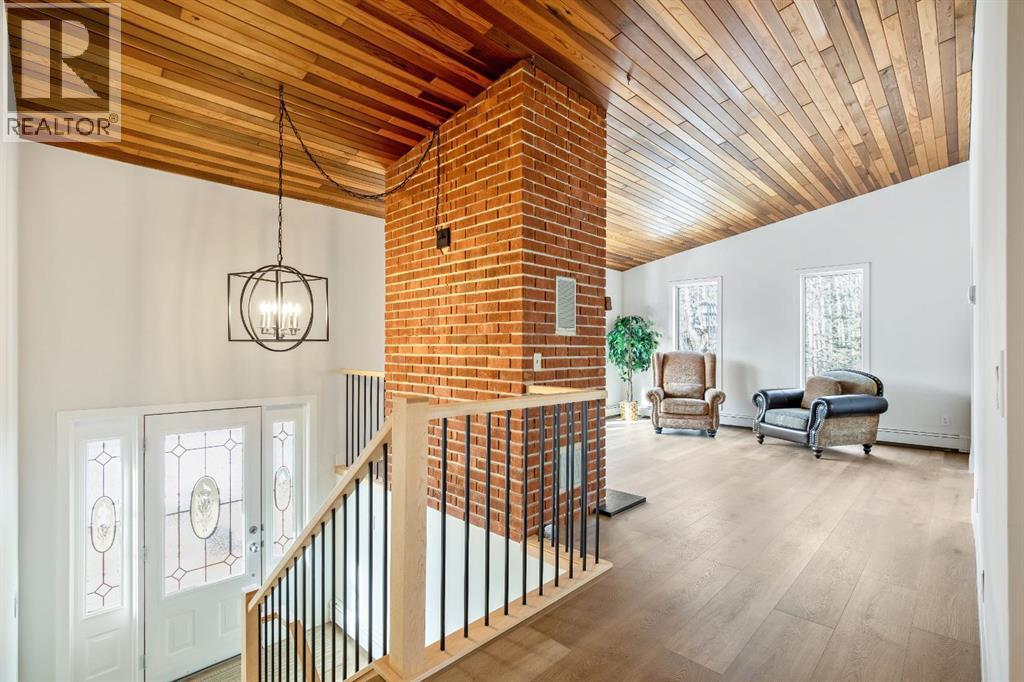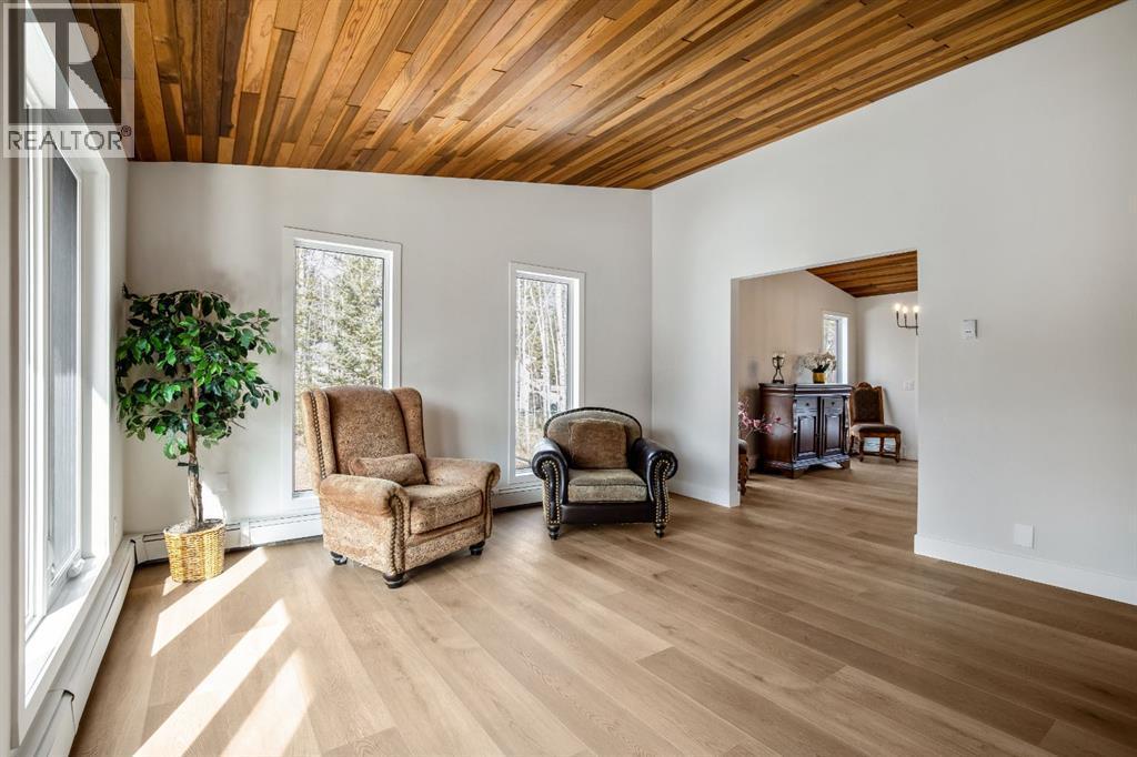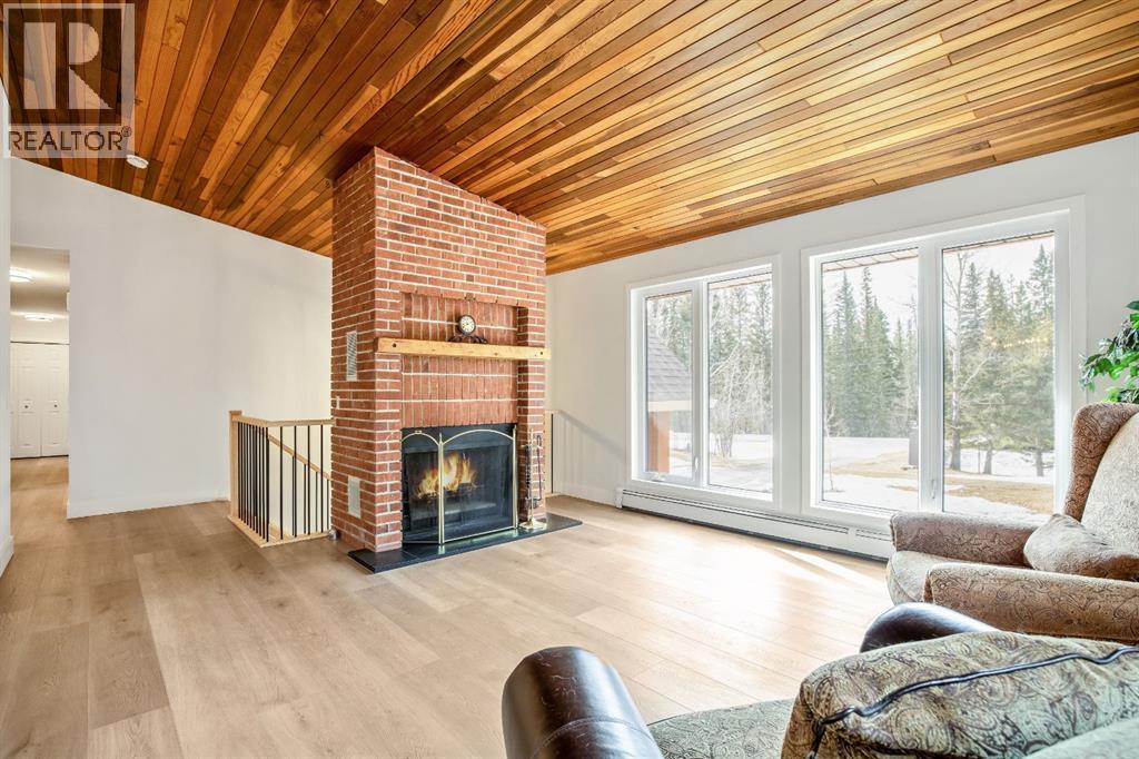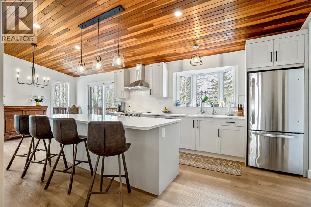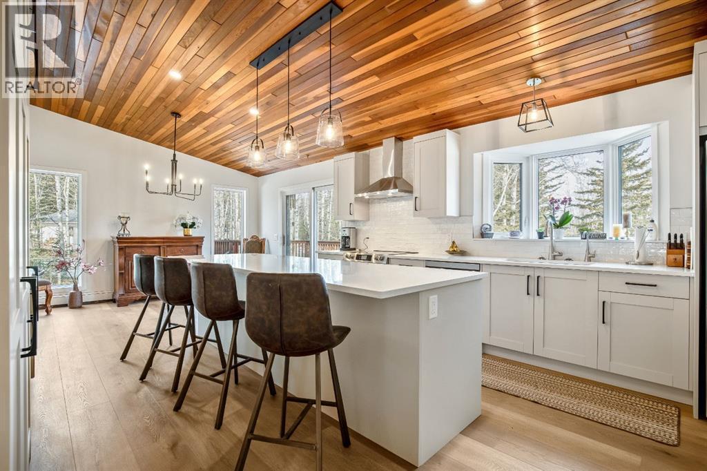 Bright and sunny professionally renovated home in West Bragg Creek located mid way between the Hamlet and the Bragg Creek trail system. All you need to do is unpack your furniture and start enjoying country life. Major renovations include a stunning Legacy kitchen with shiny quartz counters, electric slide in range featuring convection bake, no preheat, steam bake and Air Fry to make cooking a breeze. New flooring throughout, upstairs windows are triple glazed and upstairs bathrooms refinished. Three bedrooms upstairs, brick fireplace in living room, family room with large windows on lower level. Hot water heating with 5 zones ensures each room meets your living temperature ideals. Underdrive garage is heated. Park like yard is perfect for kids and dogs. Children's slide and swings, gas BBQ on deck, fire pit with seating and a large dog run. Everything you need to start your rural life - all yard furniture and even the ride on lawn tractor to help maintain your yard. No water or septic concerns here! Mountain View Park has its own water and sewer system. (id:6769)