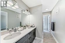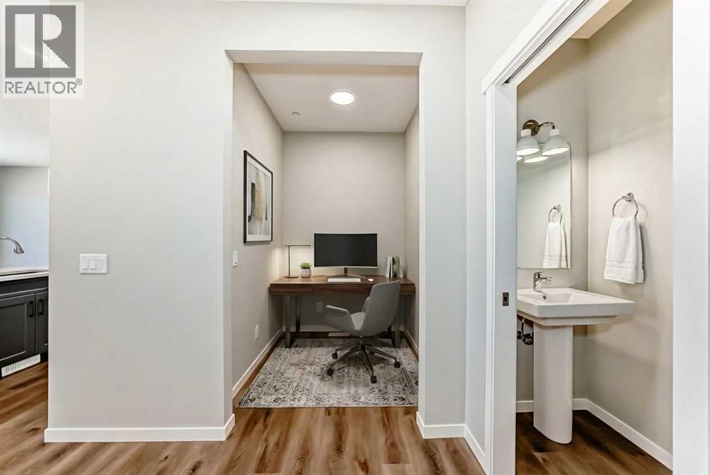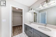 Welcome to the exquisite "Carisa" floor plan, where nearly 1,700 SqFt of thoughtfully designed space combines modern elegance with unmatched functionality. This home’s layout is tailored for both comfort and style, creating the perfect setting for family living and entertaining. As you step inside, you’ll be greeted by the warmth and durability of vinyl plank flooring that flows seamlessly throughout the main level, accentuating the modern finishes and striking architectural details. Natural light pours in through the back wall of windows, infusing the open-concept living areas with an inviting ambiance. Dual sliding patio doors extend your living space to the expansive backyard, ready for your personal touch to create the ultimate indoor-outdoor oasis. At the heart of the home, the kitchen is a chef’s dream. Featuring two-tone cabinetry, sleek quartz countertops, and a stylish tile backsplash that wraps elegantly around a chimney-style hood fan, this kitchen is as functional as it is beautiful. Stainless steel appliances and a thoughtfully positioned mudroom with direct kitchen access ensure that even grocery days are effortless. A cozy dining nook and a spacious living room, are perfectly positioned to enjoy the home’s abundant natural light. The smartly designed pocket office offers the perfect work-from-home setup or a dedicated homework space for the kids. Upstairs, a versatile bonus room serves as the ideal family retreat, separating the serene primary suite from the secondary bedrooms. The primary suite is a tranquil haven, complete with a luxurious 4-piece ensuite featuring an oversized shower and ample space to unwind. The two additional bedrooms are generously sized, making them ideal for children or guests. With an upstairs laundry room and a stylish 4-piece bathroom, convenience is woven into every detail of this home. **This home also comes complete with full front and backyard landscaping, including sod, mulch on the side yards, and trees/shrubs in the front as per community guidelines. Located in the vibrant southeast Calgary community of Hotchkiss, this home offers more than just a beautiful living space. Residents enjoy stunning mountain views, 51 acres of park space, interconnected walking paths, and a central wetland. Designed with families in mind, Hotchkiss is a community where you can truly belong and thrive. (id:6769)