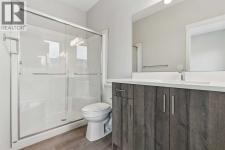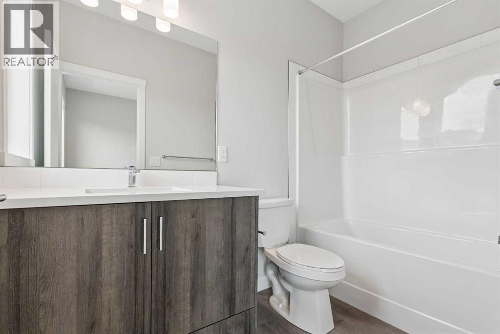 Built in 2025 and ready for quick possession, this stylish, never-lived-in 2-bedroom home offers just over 1,300 sq. ft. of bright, open-concept living — perfect for first-time buyers, investors, or anyone seeking low-maintenance modern living.Step into a beautifully designed kitchen featuring rich cabinetry, white quartz countertops, stainless steel appliances, and durable luxury vinyl plank flooring that flows throughout the main level. The open layout connects seamlessly to the dining and living areas — an inviting space for both entertaining and everyday comfort.Enjoy summer evenings on your private balcony (gas line ready for BBQ season!) and appreciate thoughtful details throughout, including raised bathroom vanities, upper-floor laundry, and a double attached garage offering extra storage and winter convenience.Upstairs, both bedrooms feature their own private ensuite — a rare find that adds flexibility and privacy.Located in a vibrant SW Calgary community, just minutes from the CTrain, major roadways, shopping, Fish Creek Park, and local restaurants. Pet-friendly and low-maintenance, this townhome combines comfort, convenience, and value — an incredible opportunity to own new without the wait. (id:6769)