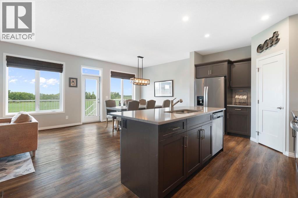 Welcome to 311 Monterey Place SE in beautiful High River, Alberta, where the pace is slower, the skies are wider, and the backyard views are downright dreamy.This warm and welcoming 2-storey home offers nearly 3,000 square feet of thoughtfully developed living space. Step inside and you’re greeted by a spacious, open-concept main floor featuring a modern kitchen with quartz counters, loads of counter space, and a walk-in pantry to keep everything tucked away. The dining area flows beautifully into the living room, where a cozy gas fireplace sets the tone for family nights or lazy Sundays. Just around the corner, but cleverly tucked away for privacy, is a main floor office, perfect for those who work from home or need a quiet retreat.Upstairs, you'll find three generously sized bedrooms, a bright bonus room, and a thoughtfully designed full bathroom with a double vanity (so yes, no more morning sink battles). The primary suite is your peaceful getaway, complete with beautiful ensuite with a soaker tub and walk-in closet. A dedicated laundry room upstairs, which if you've got a family, you know how important a full room for laundry is!The sunshine basement is fully finished and fabulously functional with a fourth bedroom, full bathroom, rec room, and a stylish wet bar area. Large basement windows bring in tons of light, making it feel like anything but a basement. This basement could be turned into a walkout by installing a door where the windows are near the wet bar!Outside, the west-facing pie-shaped backyard backs onto open farmland leased by a local farmer, giving you peaceful prairie views and the kind of backyard most people only dream of. The home also features A/C to keep you cool in the summer and warm in the winter, plus gorgeous trim lighting that adds a little sparkle year-round. And for those who like their winters toasty, the double attached garage is already equipped with a heater, because stepping into a warm car on a cold Alberta morning? Tha t’s living the dream.This is the kind of home that just feels good, inside and out. Come take a look and see why life is better in High River. (id:6769)
