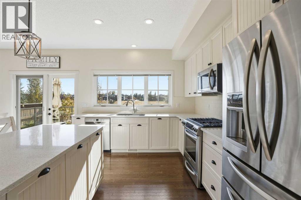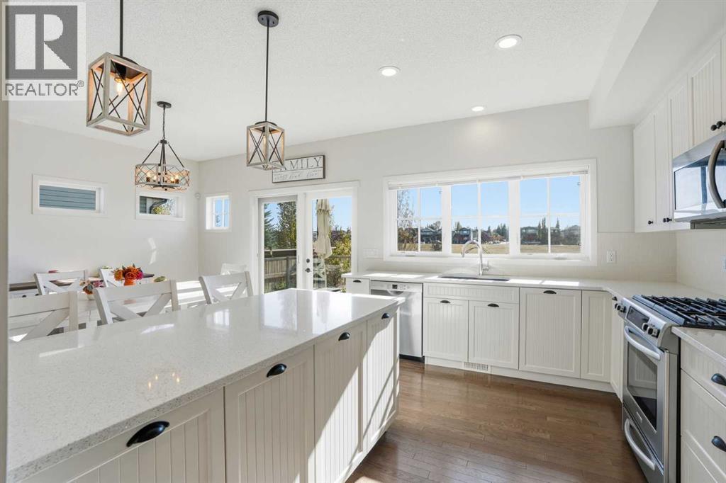 Open house Saturday 1-3pm. Welcome to this beautifully maintained 3-bedroom, 2.5-bathroom home backs onto large green field, next to the school in the heart of Reunion, Airdrie. Offering 2168 sq. ft. of bright, inviting living space with a versatile bonus/flex room, this home truly stands out for its thoughtful layout and pride of ownership. Step inside to a spacious entryway and rich hardwood floors that flow seamlessly throughout the main level. The open-concept design creates an airy, connected feel, while south-facing windows fill the home with natural light all day long. On cooler evenings, unwind by the cozy gas fireplace in the generous living room. The chef’s kitchen is a perfect hub for family gatherings and entertaining, featuring a gas stove, stainless steel appliances, ample counter space, and a large island with breakfast bar. A spacious mudroom with built-in lockers keeps everything organized as you come and go. Upstairs, a bright bonus room offers flexibility for a family retreat, play area, or home office. The primary suite overlooks the backyard and includes a walk-in closet and spa-like ensuite. Two additional bedrooms, a full bath, and convenient upper-floor laundry complete the level. The bright, unfinished basement is ready for your ideas—whether you envision a rec room, home gym, or additional living space, the possibilities are endless. Outside, enjoy the south-facing, fully landscaped, and fenced backyard, complete with a spacious deck and backs onto plenty of green space for play or relaxation. With Herons Crossing (K–8) School just across the back field, plus parks, playgrounds, and shopping nearby, this home perfectly blends comfort and convenience. Additional features include air conditioning, a double attached garage, and newly installed permanent exterior lights . Don’t miss this rare opportunity to own a warm, inviting home in a friendly, family-oriented community—book your private showing today! (id:6769)