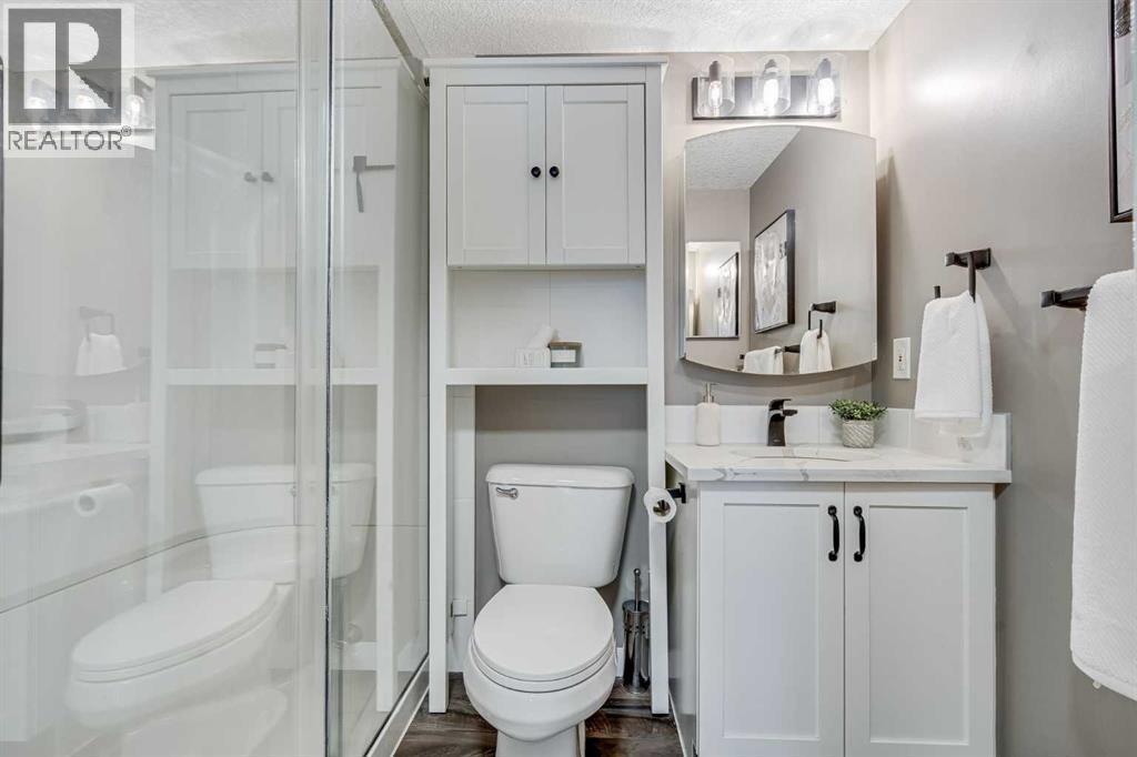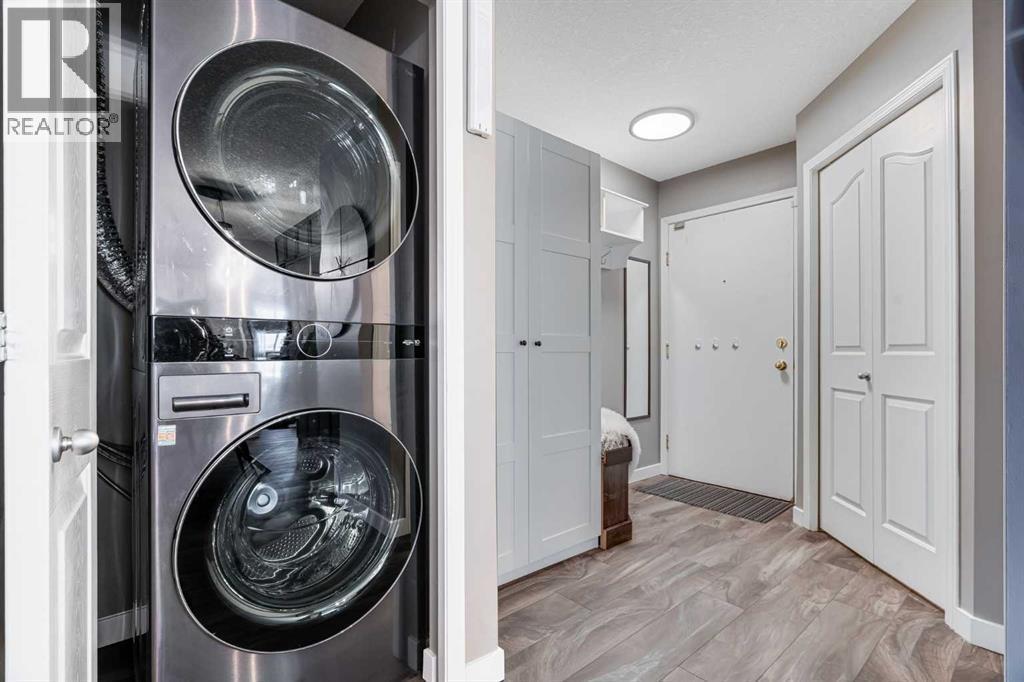 This stunning condo is a rare find — over 1000 sq ft, and beautifully renovated from top to bottom! This unit is set in one of Airdrie’s most peaceful locations, backing onto a serene pond with lots of beautiful nature to obsrve. Inside, every detail has been refreshed: new paint, flooring, trim, light fixtures, knock-down ceilings, and a brand-new kitchen with quartz counters, stylish cabinetry, hidden spice rack, “magic corner” storage, instant hot water tap at the kitchen sink, and all new stainless-steel appliances. Thoughtful touches continue throughout — built-in storage, an extra fridge and freezer, and new washer & dryer. The spacious primary suite offers not one but two walk-in closets with built in storage, and a full ensuite. Enjoy morning coffee or evening sunsets on your large wraparound patio with no neighbours in sight. This well-managed building includes ALL utilities (heat, electricity, water, sewer, garbage, insurance, and reserve fund) — truly worry-free living. Comes with one titled underground stall and one above-ground stall for convenience, as well as a 24 Sq Ft storage cage.Peaceful, stylish, and completely move-in ready — this is the perfect blend of comfort, quality, and quiet living right in the heart of Airdrie. (id:6769)