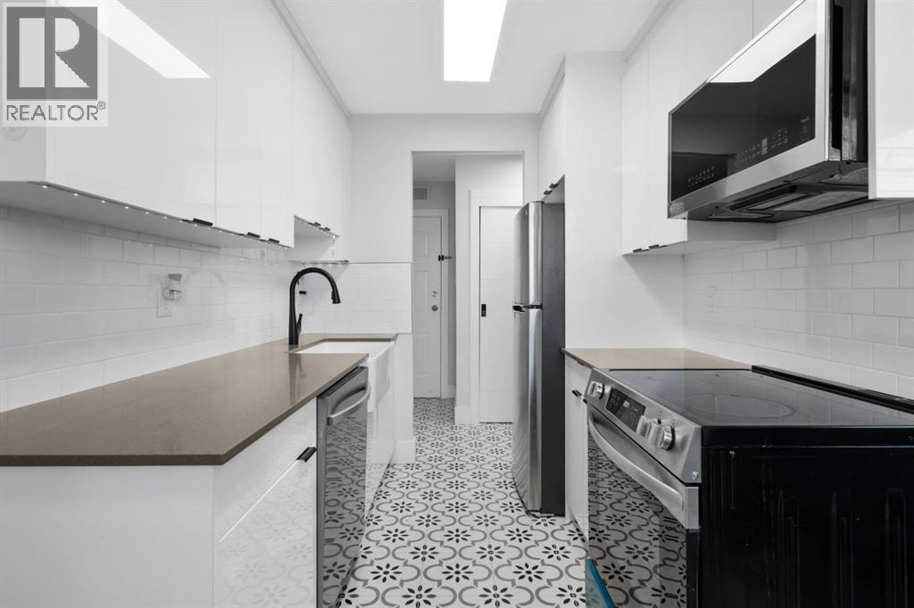 Welcome to this beautifully renovated 2-bedroom, 1-bathroom apartment located in the sought-after inner-city community of Rosscarrock. Thoughtfully updated from top to bottom, this stylish home offers a perfect blend of comfort, convenience, and modern design.Step inside to find new laminate flooring throughout the main living areas, complemented by elegant glazed porcelain tile in key spaces. Fresh paint adds a crisp, contemporary feel, making the entire unit bright and inviting.The spacious living room flows effortlessly into a cozy breakfast nook and a completely updated kitchen featuring sleek white cabinetry, quartz countertops, stainless steel appliances, a chic backsplash, and a deep farmhouse sink. With plenty of cabinet space, this kitchen is as functional as it is beautiful.Both bedrooms are generously sized with plenty of room for comfort and relaxation. The updated 4-piece bathroom features modern finishes and a clean, timeless design. Additional highlights include convenient in-unit laundry and an assigned parking stall.Located within walking distance to Westbrook LRT Station and Westbrook Mall, you’ll enjoy easy access to transit, Walmart, Safeway, Starbucks, and a wide variety of shops, cafes, and amenities.Ideal for first-time buyers, investors, or those looking to enjoy a low-maintenance urban lifestyle — this Rosscarrock gem is a must-see! (id:6769)