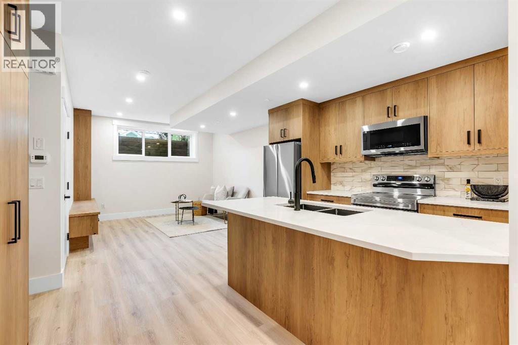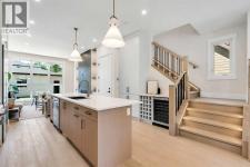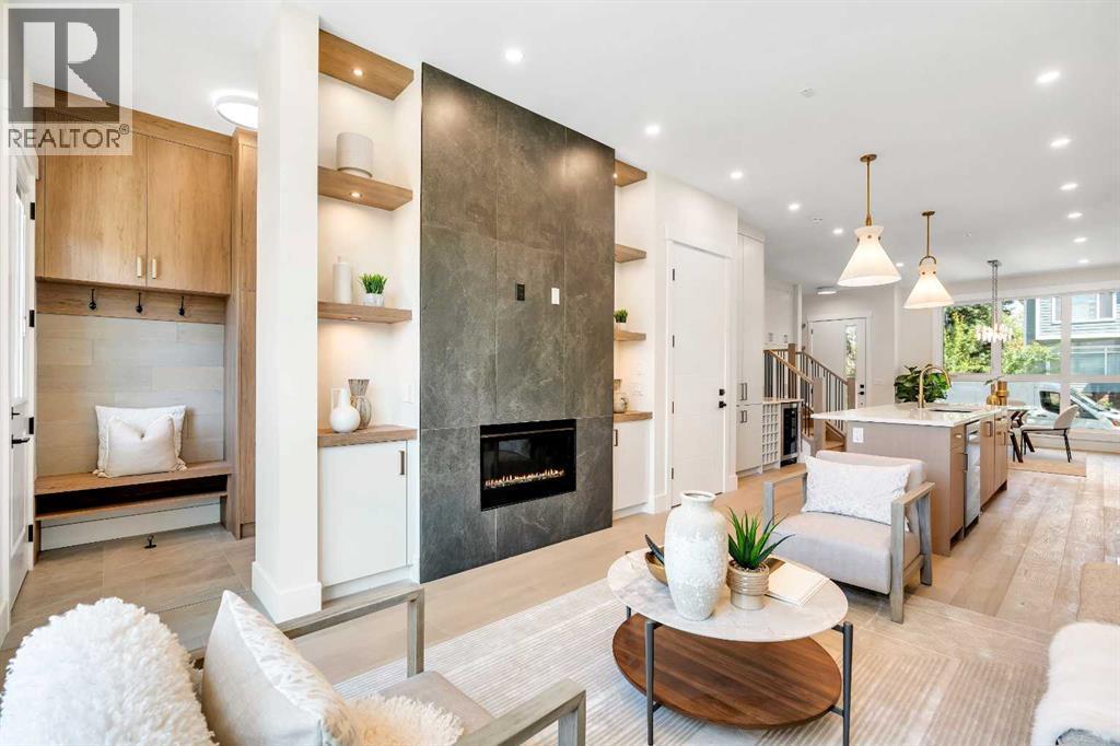 MOVE-IN READY! Striking curb appeal, clean lines, and massive front windows set the tone for this bold, modern SEMI-DETACHED INIFLL tucked onto a quiet street in the heart of RENFREW. From the moment you step inside, you’ll feel the elevated design—natural light pours in from all angles, the layout flows effortlessly, and every detail has been thoughtfully selected for both function and style. The main floor opens with a welcoming front foyer and a bright dining area positioned at the front of the home, perfect for cozy dinners or entertaining guests. The designer kitchen sits at the center, anchoring the space with a large island, quartz countertops, a built-in pantry, and a premium appliance package that includes a gas cooktop and a French door fridge/freezer. At the rear, the living room feels like a retreat, complete with a sleek fireplace, large windows, and easy access to the back deck and a double detached garage. A designer powder room is privately tucked away off the mudroom, and the built-ins here add everyday convenience without compromising on style. Upstairs, you’ll find three bedrooms, including a show-stopping primary suite that spans the entire width of the home. It features vaulted ceilings, a spacious walk-in closet, and a spa-inspired ensuite with a double vanity, soaker tub, tiled shower, and private water closet. Two additional bedrooms, a full bath, and a laundry room with extra storage round out the upper level. Downstairs, you’ll find a LEGAL 1-BEDROOM SUITE (approved by the city) – ideal for rental income, multigenerational living, or guest space. With its own private entrance and mudroom-style bench with hooks, it feels completely independent. Inside, the modern kitchen is finished with quartz counters, custom cabinetry, and a central island for tons of prep space. The suite also includes a generous living area with a large window, a full 4-piece bathroom, in-suite laundry, and a spacious bedroom with a walk-in closet. Living in Ren frew means you’re minutes from some of Calgary’s best-loved amenities. Walk to the Bridgeland restaurant scene, grab coffee at Starbucks or Lukes Drug Mart, or hop on the bike path for a scenic ride along the Bow River. TELUS Spark and the Calgary Zoo are under a 5-minute drive, and the Renfrew Aquatic & Recreation Centre is just up the street for swimming, skating, and gym time. Downtown is only 10 minutes away by car or transit, and access to Deerfoot and 16th Ave makes commuting a breeze. With parks, playgrounds, schools, and community gardens all close by, Renfrew blends inner-city energy with everyday comfort. Whether you’re looking for modern design, income potential, or a walkable inner-city lifestyle, this one checks all the boxes! (id:6769)
