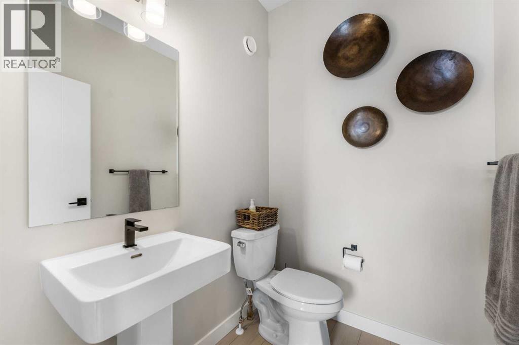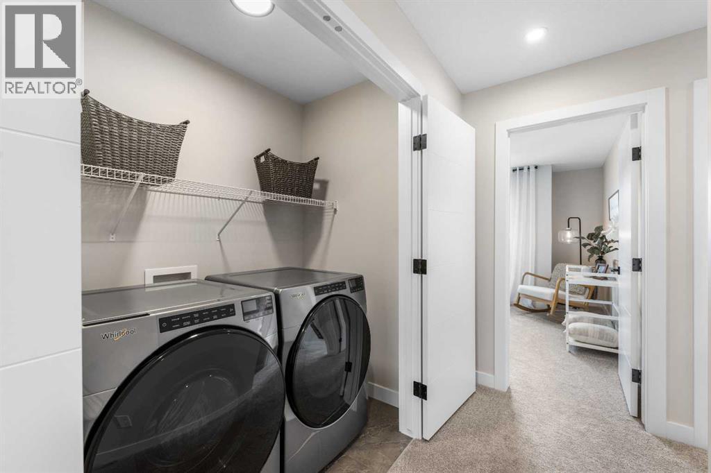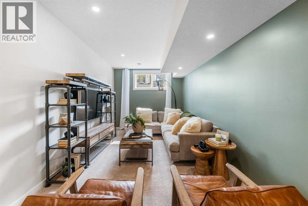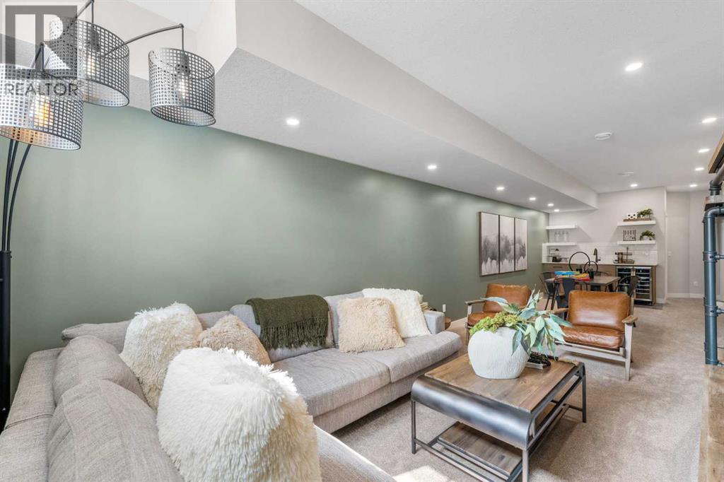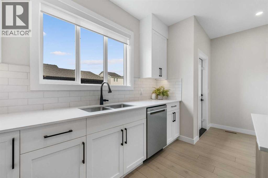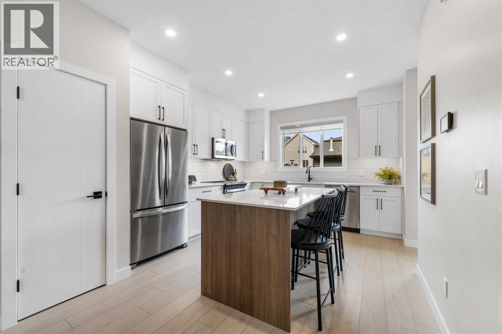 Welcome to the former Edward model showhome by Partners Homes, located in the southeast Calgary community of Logan Landing. This fully finished home offers a well-planned layout, thoughtful finishes, and the added peace of mind of builder’s new home warranty. Additional highlights include central air conditioning and a detached garage that is insulated, drywalled, and heated. The main floor features a welcoming entry with a large front closet, a convenient powder room, and a flexible front room suitable for a home office or additional living space. The kitchen is bright and practical, with a central island, window over the sink, two-tone cabinetry extended to the ceiling, and a walk-in pantry. Open dining and living areas flow comfortably together, while the rear mudroom provides everyday organization. Upstairs, the primary bedroom includes a walk-in closet and a four-piece ensuite with dual sinks and a fully tiled shower. A central bonus room separates the primary bedroom from two additional bedrooms, offering privacy and flexibility. A full bathroom and side-by-side laundry complete this level. The fully developed basement with a separate side entrance adds valuable living space and versatility. This level includes a large open recreation area with a built-in bar, beverage fridge, and shelving, along with an additional bedroom, a full bathroom, and ample storage. Logan Landing offers access to the Bow River, ponds, parks, playgrounds, and an extensive pathway network. The community is minutes from the Seton Urban District with shopping, schools, healthcare, and entertainment, and provides convenient access to Deerfoot Trail. This former showhome presents a rare opportunity to own a fully finished, move-in-ready home in one of Calgary’s newest southeast communities. (id:6769)