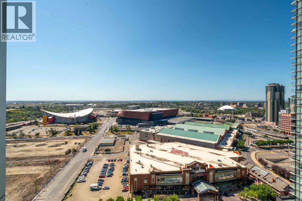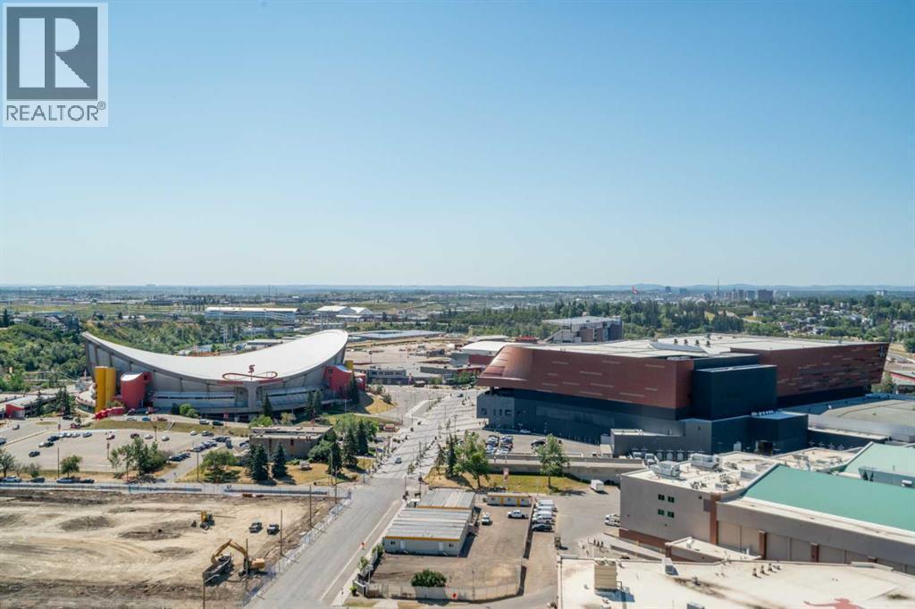 Experience unparalleled living in this stunning northwest-facing 2 bedroom condo in the prestigious Arriva building, perfectly situated near the new Flames Arena. Revel in breathtaking panoramic views of the mountains, downtown skyline, and the iconic Saddledome from every room in this remarkable unit. Boasting an open layout, this condo provides generous living and dining spaces that seamlessly flow into a chic, modern kitchen—ideal for hosting family and friends. The kitchen is a chef's dream, featuring expansive quartz countertops, integrated Miele appliances including a 5-burner gas range, and sleek Italian Snaidero cabinetry with abundant storage. Floor-to-ceiling windows flood the space with natural light, offering captivating views from every angle. The spacious primary bedroom includes a walk-through closet leading to an ensuite bathroom with a separate shower and tub, creating a private oasis. The secondary bedroom, separated by the living area for maximum privacy, is perfect for a home office or guest room. Start your day with a cup of coffee on the large balcony, enjoying the sunrise over the cityscape. The balcony also features a gas line for convenient BBQs. This unit is complete with a 3-piece bathroom, in-suite laundry room, and a separate storage locker, along with an underground titled parking stall. Arriva offers a wealth of amenities, including 24-hour concierge/security, two guest suites, central AC, an owner's lounge on the 4th floor, and a pet-friendly policy. Embrace the urban lifestyle with close proximity to Downtown, Inglewood, and Beltline. Enjoy Calgary's finest shopping, dining, performing arts venues, the Central Library, and river pathways. Discover the perfect blend of luxury and convenience in this exceptional condo—your ideal home awaits! (id:6769)