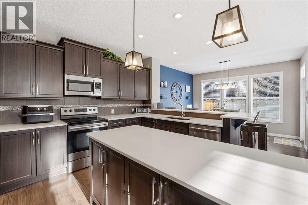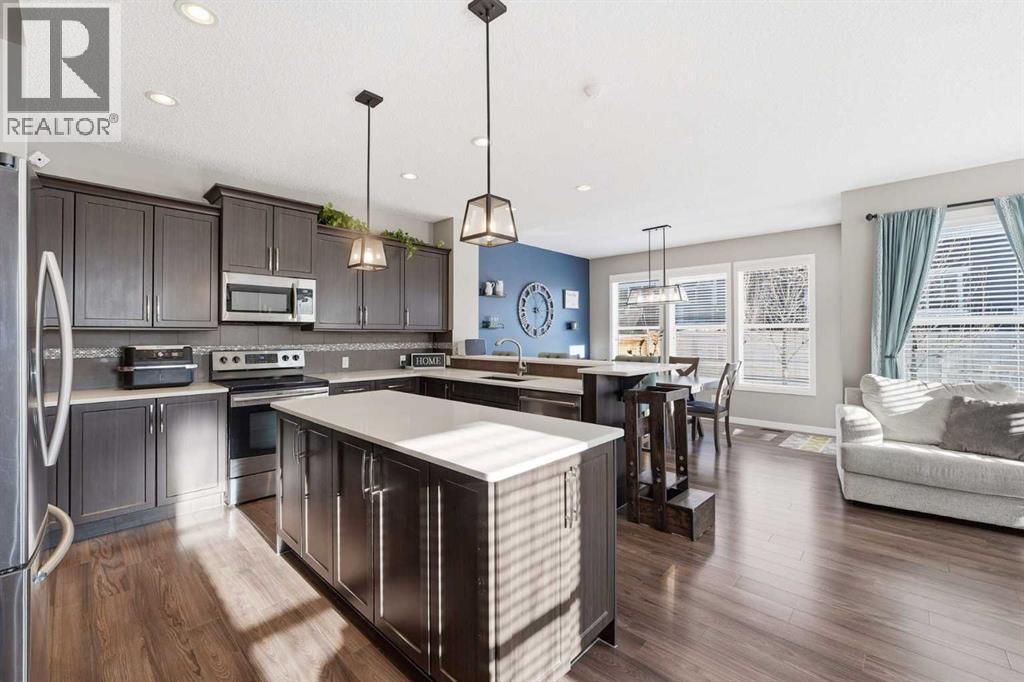 "Welcome Home" to this wonderful family designed home with plenty of room for a growing family, where style meets comfort in nearly 2300 sq ft of beautifully finished living space. Tucked away in Kings Heights on a quiet street just steps from the spectacular Kings Heights Pond and walking paths. In one of Airdrie's most popular communities, this home is just minutes to shopping, restaurants, medical care, schools, and has easy access to the Airdrie South Overpass, Calgary, and the Airport. This corner house features a double attached garage, ample street parking and a backyard that enjoys plenty of sun throughout the day. The main floor layout easily lends itself to entertaining and relaxing. The upper level features a serene retreat in the primary bedroom, 2 more good-sized bedrooms, a laundry room and an awesome space where you can take a break and relax. Don't forget the open and sunny play area on the upper floor. With modern upgrades, refreshed finished, and adaptable living space in the partially finished basement, this home delivers a comfortable, convenient and elevated everyday lifestyle. (id:6769)