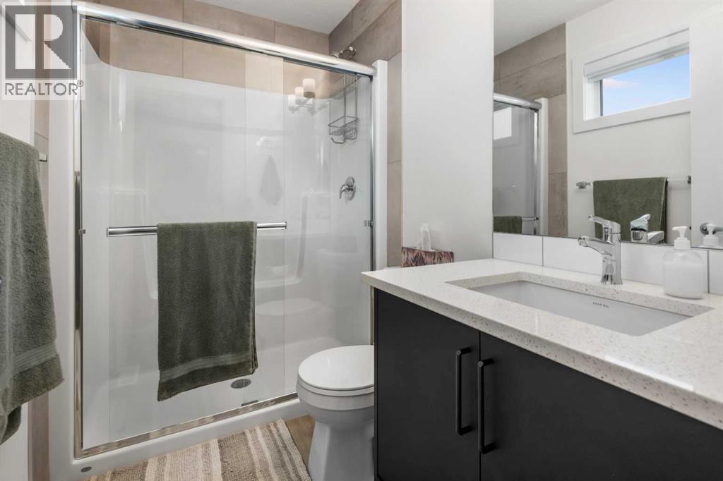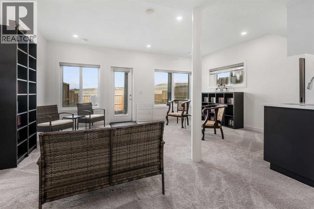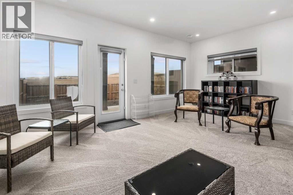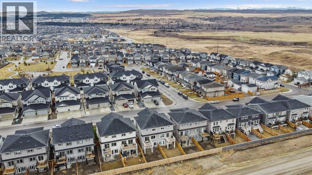 NO NEIGHBORS BEHIND - BACKING ONTO PARKS & RECREATION AREA - STUNNING MOUNTAIN VIEWS - FULLY FINISHED WALKOUT - OVER 2,200 SF - DOUBLE ATTACHED GARAGE - VACANT FOR QUICK POSSESSION... Experience elevated living in this meticulously crafted modern semi detached home, backing onto proposed park & recreation space offering over 2,200 sq ft of beautifully developed living space, stunning mountain views, walk-out finished basement, 3 spacious bedrooms, 3 bathrooms, and striking 9-foot ceilings throughout. With architectural details that balance sophistication and function, this home delivers comfort, style, and unbeatable value. As you step inside, you're welcomed by a bright, open-concept main floor—ideal for both daily life and entertaining. The chef-inspired kitchen is a true centerpiece, featuring elegant quartz countertops, stainless steel appliances, a gas range, and a generous central island perfect for prepping, dining, and gathering. The adjacent living room is anchored by a beautiful electric fireplace and is bathed in natural light thanks to oversized windows that frame unobstructed views of the mountains and open plains. Step out onto the private back deck to spectacular mountain views to the west and open fields to the north, perfect for BBQs or quiet evenings soaking in the scenery. Upstairs, the home continues to impress with a stunning bonus room showcasing soaring ceilings and custom-built-in cabinetry—perfect as a home office, lounge, or creative space. The expansive primary suite offers a tranquil retreat, complete with a sleek 3-piece ensuite and a large walk-in closet. Two additional well-sized bedrooms and a full bathroom offer comfort and flexibility for family or guests. The fully developed walkout basement adds incredible versatility to this home, with large windows, a stylish wet bar with a full size fridge, and custom cabinetry, it's the ideal space for a home theater, guest suite, or secondary living area. The walkout design opens to a privat e grade-level concrete patio and fully fenced yard. A large furnace/storage room offers additional practicality, with the option of adding a bathroom with rough in plumbing. Location is key, heritage hills offer an abundance of green space walking/bike paths and close proximity to schools, parks and all amenities with easy access to highway 1A leading you to the mountains in less than an hour. You're going to love this home, perfectly blending modern elegance with functional design and breathtaking views, this home is ready to impress. Book your viewing today! (id:6769)