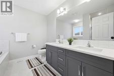 Perfectly situated on a quiet street, this beautifully built two-storey home boasts exceptional curb appeal and over 1,800 sq. ft. of thoughtfully designed living space. Step inside to a welcoming front entrance that opens to a warm and inviting main floor, highlighted by durable vinyl plank flooring throughout the kitchen, dining, and living areas.The spacious, modern kitchen is ideal for both everyday living and entertaining, featuring stainless steel appliances, custom crisp white countertops, ample grey cabinetry, and a large center island with a sit-up breakfast bar—perfect for gatherings with family and friends.Upstairs, you’ll find three generously sized bedrooms, a Bonus room and a well-appointed 4-piece main bathroom. The primary retreat offers a stunning ensuite complete with his-and-her sinks, a relaxing soaker tub, and a separate stand-up shower, creating a true spa-like experience.The unfinished basement provides a blank canvas, ready for your creative vision—whether you’re dreaming of a home gym or additional living space. This exceptional home truly checks all the boxes and won’t last long. Call today to book your private viewing! (id:6769)