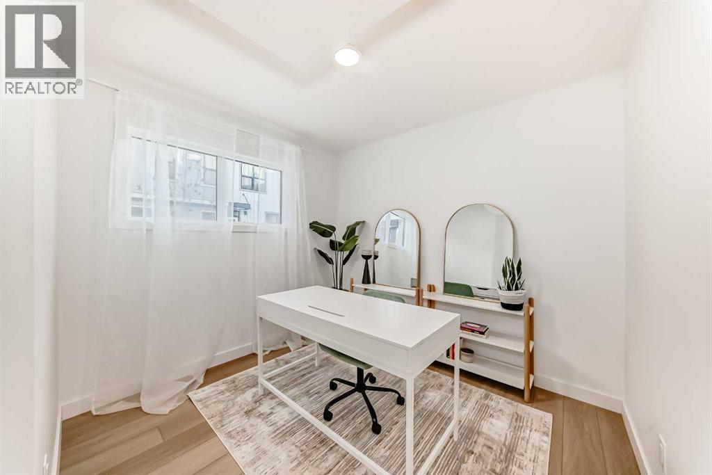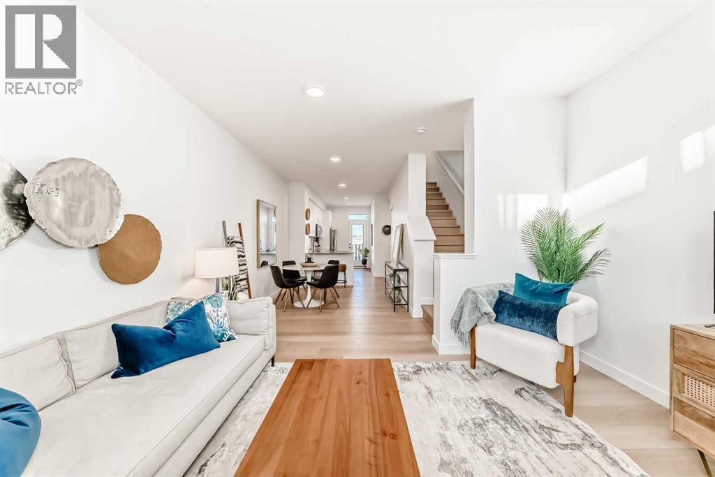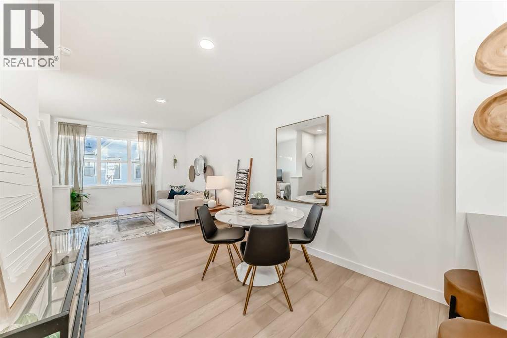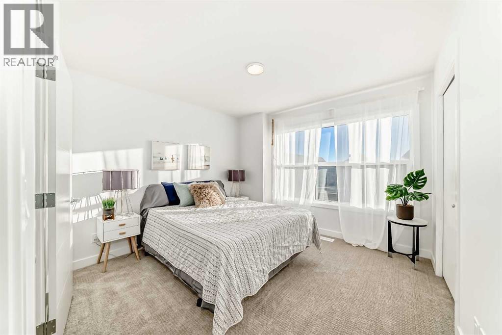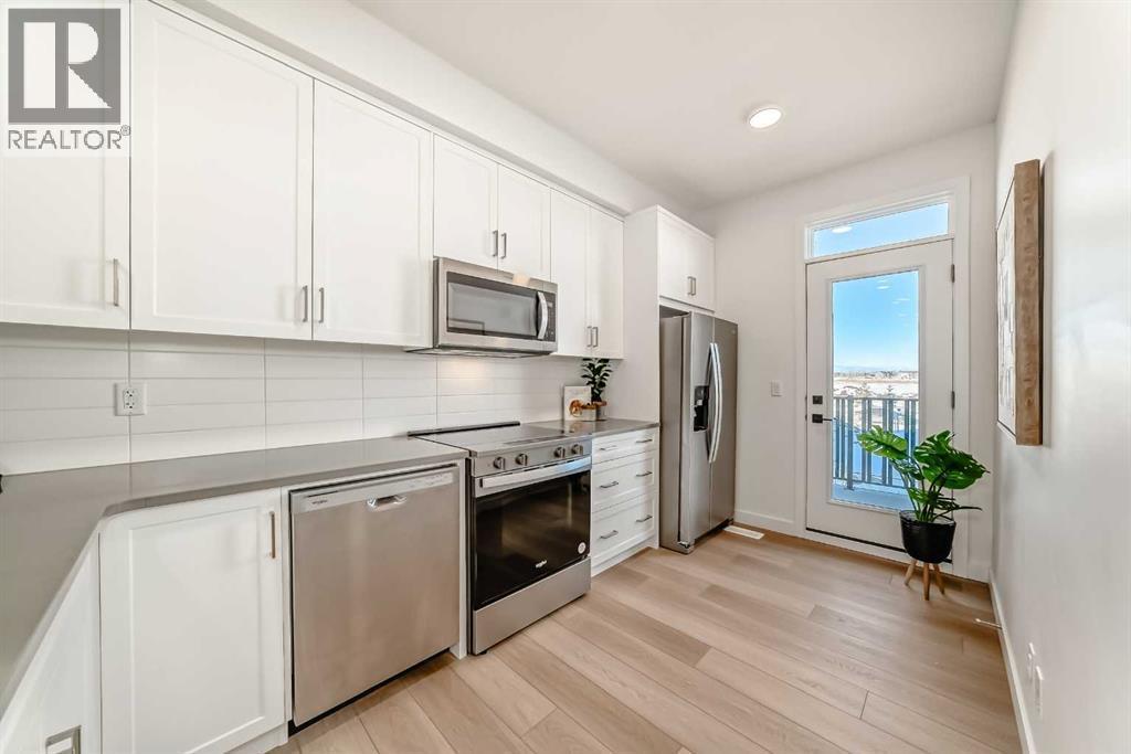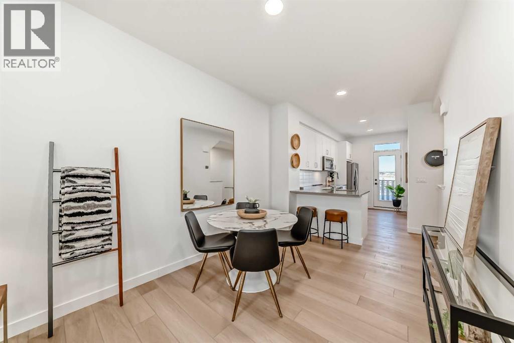 IF YOU’VE BEEN OVERLOOKING TOWNHOMES BECAUSE THEY ALL START TO BLUR TOGETHER, THIS ONE IS WORTH A SECOND LOOK. What sets it apart isn’t flash—it’s how intentionally the space is divided and how well it actually lives.This THREE-STOREY PLAN in Alpine Park is especially strong for buyers who want separation without wasted square footage. The entry level offers a FULL-SIZED DEN that truly functions—ideal for working from home, a bedroom for hosting guests, or creating space that doesn’t compete with daily living. A LARGE STORAGE ROOM and direct access to the SINGLE ATTACHED GARAGE quietly solve the practical pieces many townhomes gloss over.The main living level is open, calm, and well-proportioned. The kitchen anchors the space with warm white cabinetry, charcoal quartz, and a BREAKFAST BAR PENINSULA that handles real life without bottlenecks. Kitchen, dining, and living areas connect in a way that feels easy rather than compressed, and the FULL-WIDTH BALCONY adds genuinely usable outdoor space.Upstairs, DOUBLE MASTERS **TWO BEDROOMS—EACH WITH ITS OWN ENSUITE BATHROOM AND FULL-WIDTH CLOSET—**create flexibility that works for couples who don’t need a third bedroom, roommates who value privacy, or buyers thinking ahead to resale. Laundry is located on this level, right where you want it.With approximately 1,449 square feet above grade, modern construction, and the BALANCE OF THE BUILDER WARRANTY still in place, this home offers a low-maintenance entry into one of Calgary’s most design-forward west-side communities. Alpine Park continues to attract buyers who care about architecture, walkability, and long-term livability—and this plan fits that mindset precisely.This is a well-planned townhome, designed for buyers who want space to work, host, and unwind without compromise. If that sounds like you, THIS IS ONE YOU SHOULD SEE. (id:6769)