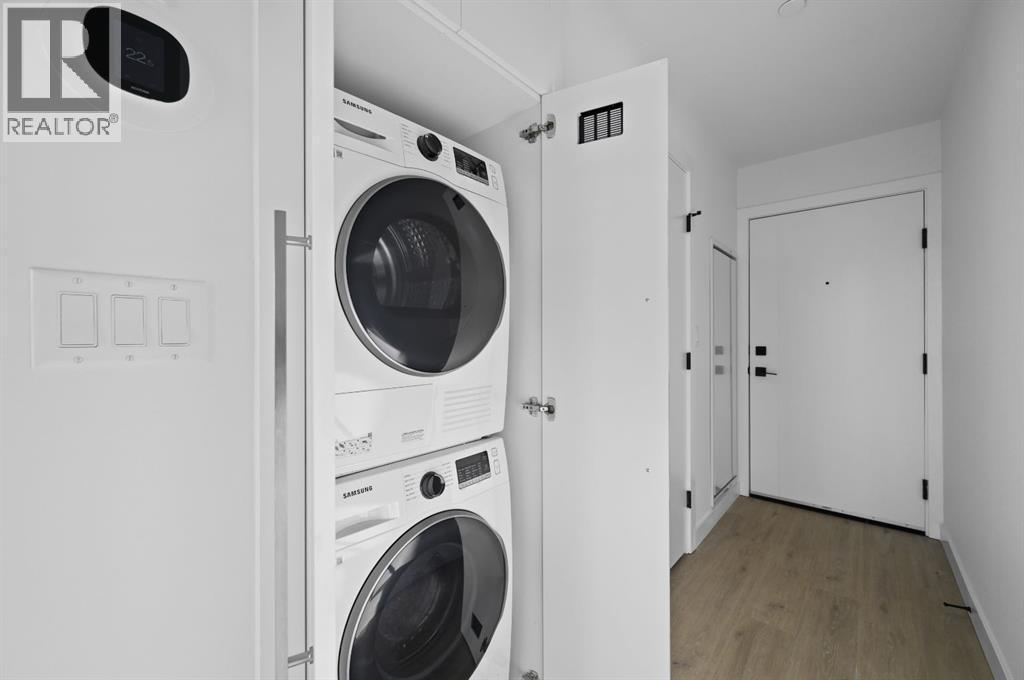 Welcome to Plaza at West District. Discover refined urban living in this beautifully designed 2-bedroom, 1-bathroom residence by TRUMAN, located within an award-winning concrete building in Calgary’s vibrant West District community. Thoughtfully planned and filled with natural light, this home offers modern comfort and exceptional walkability.Inside, the open-concept layout showcases contemporary finishes and efficient design. The bright living and dining area flows seamlessly into a stylish kitchen featuring premium appliances, sleek cabinetry, and a functional layout ideal for everyday living or entertaining. Large south-facing windows flood the space with sunlight throughout the day, creating a warm and inviting atmosphere.Step onto your sunny south-facing balcony—perfect for morning coffee, afternoon lounging, or soaking up the natural light in every season.Both bedrooms offer comfortable, private retreats, while the well-appointed bathroom blends modern style with practical functionality.Additional features include a titled underground parking stall, providing secure and convenient access year-round.Residents of Plaza enjoy access to exceptional amenities, including a fully equipped fitness centre and an inviting owners’ lounge—ideal for relaxing, working, or connecting with neighbours. Located just steps from boutique shops, local services, and the lively energy of West District, this home places you in one of Calgary’s most sought-after urban destinations.Live Better. Live TRUMAN. (id:6769)
