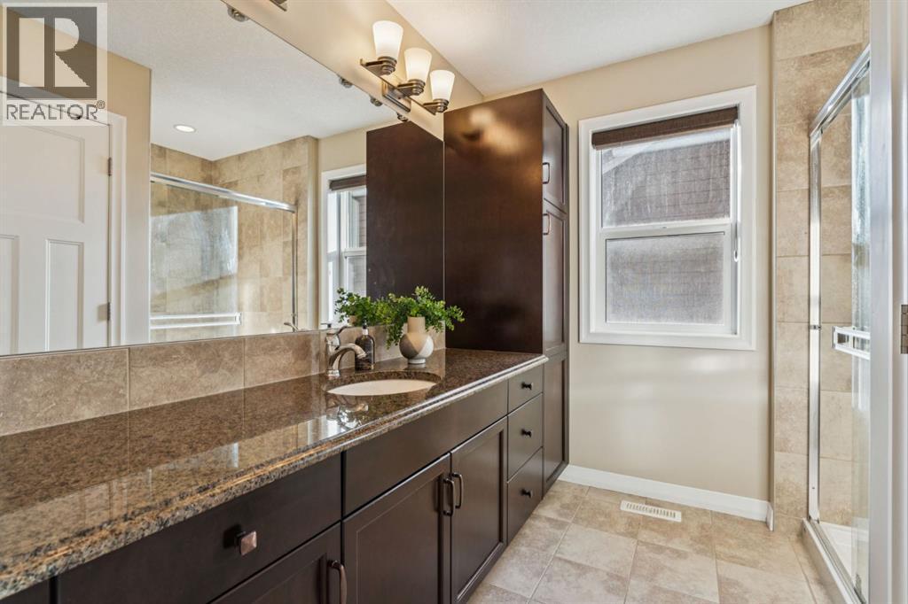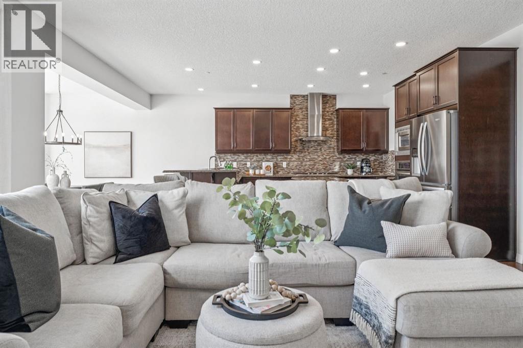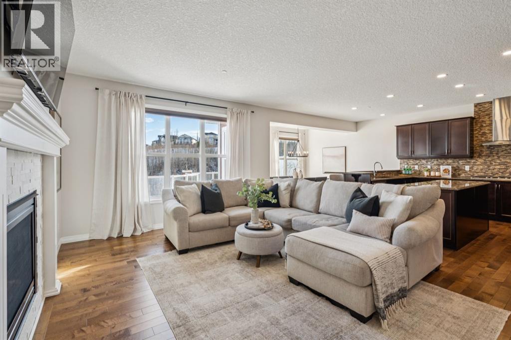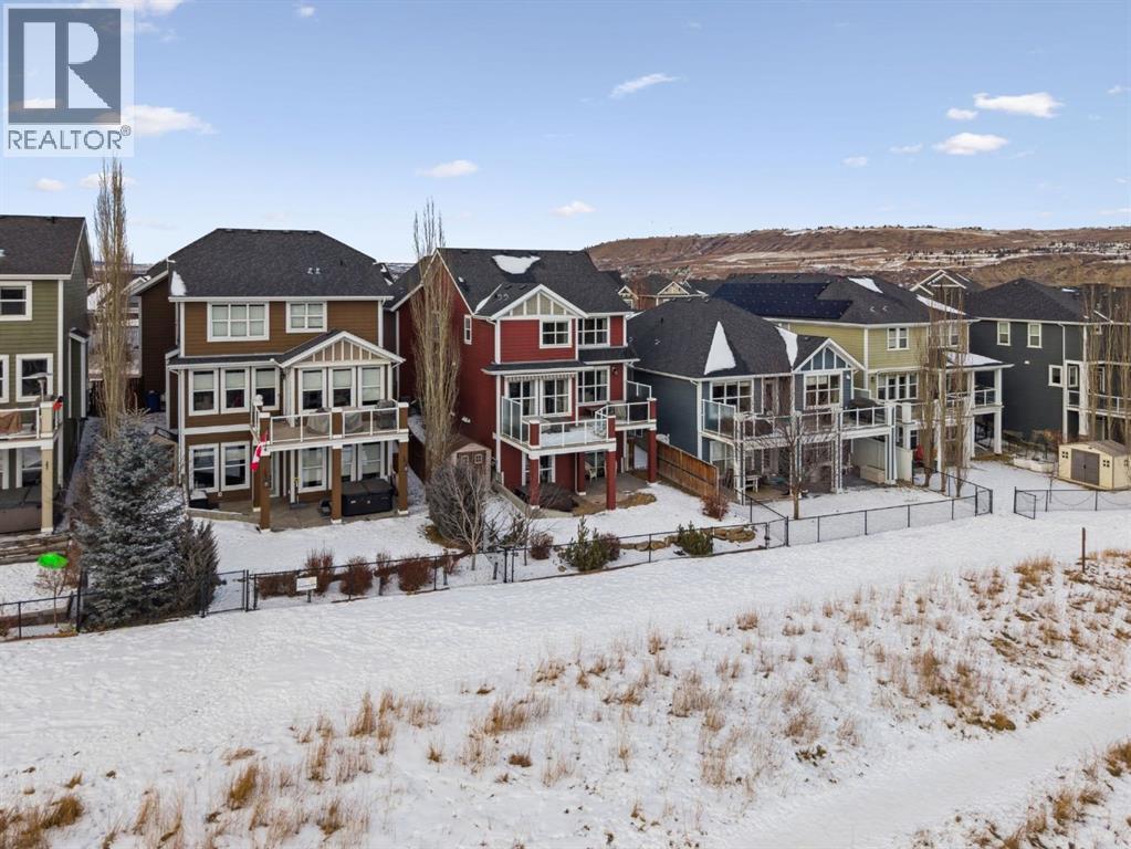 -- OPEN HOUSE SUNDAY 12:00PM - 3:00PM -- Located near the very end of one of Cochrane’s most desirable streets, this exceptional 2012 built walkout home offers 2,571 sq. ft. above grade plus a fully finished walkout basement, backing directly onto a treed Environmental Reserve with NO NEIGHBOURS BEHIND. With direct access to the pathway system and miles of scenic walking paths leading toward the Bow River, this setting delivers privacy, nature, and lifestyle rarely found together.The home offers a welcoming sense of arrival with a covered front porch and an oversized garage featuring high ceilings, built-in cabinetry, and shelving. Inside, the open-concept main floor showcases 9’ ceilings, designer maple flooring, and a spacious living room anchored by a gas fireplace with mantle. The U-shaped kitchen is both elegant and functional, featuring granite countertops, a large island, Stainless Steel appliances, a gas cooktop, and a BBQ gas line, perfect for entertaining. A dedicated mudroom adds everyday convenience.Upstairs, a large bonus room with an electric fireplace separates the children’s wing from the primary retreat. The primary bedroom enjoys peaceful, treed views and features a luxurious ensuite with his & hers granite vanities, soaker tub, separate shower. The main bath offers double under-mount sinks, granite countertops. Secondary bedrooms are generous in size, one with corner windows and a walk-in closet. A tiled laundry room with cabinetry and a double-sided linen closet completes the upper level.The fully finished walkout basement features 9’ ceilings, a comfortable recreation/lounge area, a 4th bedroom, and a full bathroom, providing excellent flexibility for guests or growing families. Additional highlights include a dual-zone furnace, two air-conditioning units, central vacuum rough-in.Outdoor living is equally impressive with a large deck, incredible views, a walkout-level patio with brick walkway, landscaped yard, outdoor shed, and a high-end 2020 Hot Spring hot tub, perfectly positioned to enjoy the surrounding natural beauty year-round.This is a rare opportunity to own a walkout home with privacy, views, and direct access to nature in one of Cochrane’s most coveted locations. (id:6769)