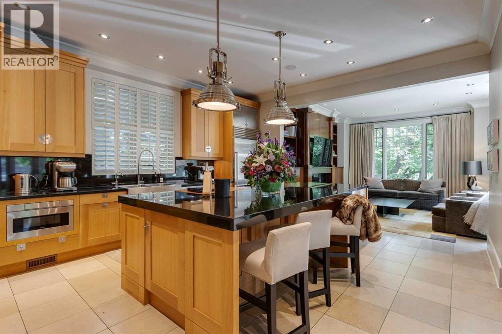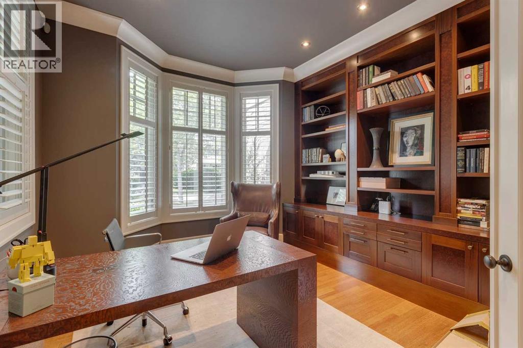 A residence of rare distinction in the prestigious community of Mount Royal. Designed by McDowell & Associates, this extraordinary estate embodies timeless architecture, enduring craftsmanship, & refined sophistication at every turn. Situated on an 80x161 ft (10,764 sq. ft.) professionally landscaped lot, this stately property offers over 5,822 sq. ft. of impeccably finished living space across three levels, featuring five bedrooms (note: basement bedroom has been converted to a large executive office) & six beautifully appointed bathrooms. From the moment you step through the grand foyer, the home reveals its pedigree - barrel vaulted ceilings through the foyer & living room, exquisite millwork, Loewen triple-pane windows & a harmonious blend of oak hardwood & honed limestone flooring. The formal living room is anchored by a gas fireplace with a marble surround, while the dining room exudes elegance beneath a statement chandelier. At the heart of the home lies the Empire-designed kitchen, outfitted with Sub-Zero, Wolf & Miele appliances, this culinary space offers inset cabinetry, granite counters, a large center island & countertop seating overlooking the private gardens. A mudroom leading from the garage & executive main-floor office with built-ins complete this level. The upper floor is a retreat of calm sophistication. The primary suite is an indulgent sanctuary, featuring a six-piece marble ensuite with steam shower, deep soaker tub, dual vanities & heated floors, alongside two custom dressing rooms. Three additional bedrooms, each with private marble ensuites, offer comfort & privacy for family & guests. The lower level continues the theme of understated luxury with a fifth bedroom (presently converted to an executive office with custom oak shelving & rolling ladder) & full spa bath with steam shower, a temperature-controlled wine room, private fitness studio (could be converted into a large family room). A spacious laundry along with ample storage provides f unctionality without compromise. The triple attached garage is as impeccably finished as the home itself - featuring epoxy flooring, built-in cabinetry, a slat wall organization system & hot/cold water lines for car washing or equipment care. Every element reflects the same meticulous attention to quality & design found throughout the residence. Outdoors, the professionally landscaped gardens form a private sanctuary of greenery & light, with limestone pathways, gas lanterns & multiple seating areas ideal for elegant entertaining with an intimate seating area in the garden surrounding a stone firepit. With in-floor heating, advanced mechanical systems & curated designer lighting throughout, this home offers enduring comfort & sophistication. Perfectly positioned within walking distance to The Glencoe Club, premier schools & the boutiques and restaurants of 17th Avenue & 4th Street SW, this distinguished Mount Royal residence represents the pinnacle of luxury living in Calgary’s most coveted neighbourhood. (id:6769)