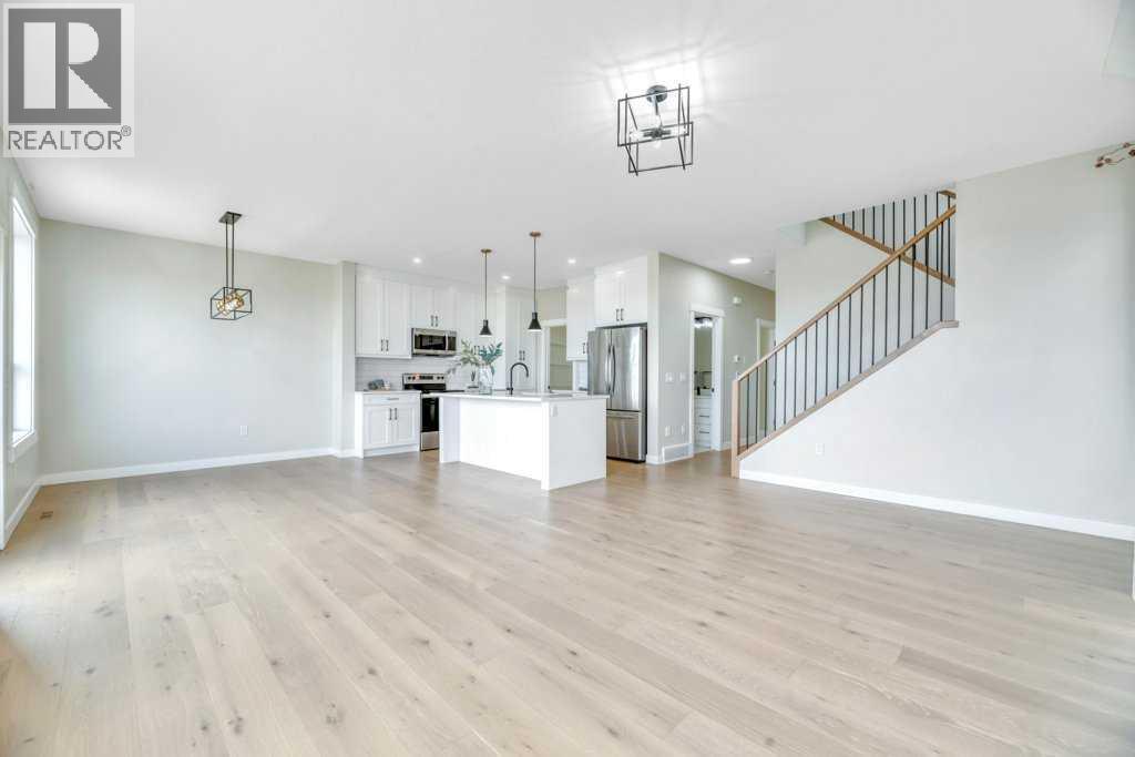 Welcome to 828 Edgefield Street—an exceptional, move-in-ready walkout home offering style, space, and outstanding value in one of Strathmore’s most sought-after neighborhoods with K-9 school and recreational facility. This beautifully designed 4-bedroom, 3.5-bath home is only 3 years old)New Home Warranty) and features a bright, open-concept main floor perfect for modern family living and entertaining. The kitchen is a true showstopper with crisp white shaker cabinetry, quartz countertops, striking black accents, and a large central island, complemented by a walk-through pantry that leads directly to the double attached garage—ideal for effortless everyday living. The dining area opens onto a sun-filled rear deck, while the inviting living room with gas fireplace creates a warm, comfortable space to unwind. Upstairs, the spacious primary retreat offers a spa-inspired ensuite with dual sinks, a soaker tub, tiled rainfall shower, and private water closet. Two additional well-sized bedrooms, a versatile bonus room, and convenient upper-floor laundry complete the level. The fully finished walkout basement adds incredible flexibility with a fourth bedroom, full bathroom, and adaptable space suited for a home gym, media room, or guest suite. Step outside to a backyard ready for your personal finishing touches. Ideally located close to school, pathways, and walkable to everyday amenities, this home perfectly balances style, functionality, and location. With a new price and walkout design, this is a great opportunity to secure a beautiful family home at exceptional value—book your private showing today. (id:6769)