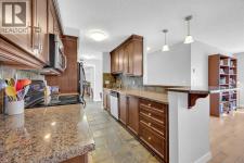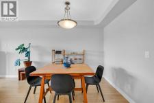 This bright and airy 2-bedroom, 1-bathroom condo offers a spacious layout that truly stands out. The galley kitchen features stainless steel appliances and granite countertops, opening to a dining area large enough to accommodate a full-size table—rarely found in condo living and perfect for hosting. The inviting living room is highlighted by a cozy gas fireplace, creating a warm and welcoming space to unwind. Hardwood flooring runs throughout, complemented by the convenience of in-suite laundry. West-facing exposure fills the unit with natural light. The home also includes an underground parking stall, secure storage locker, and bicycle storage. Ideally located, you’ll enjoy easy access to unique shops, restaurants, and transit. All just a short walk away. (id:6769)