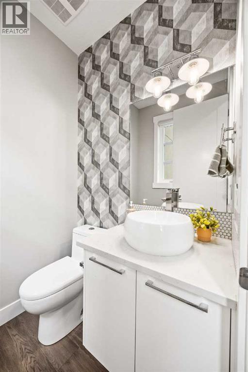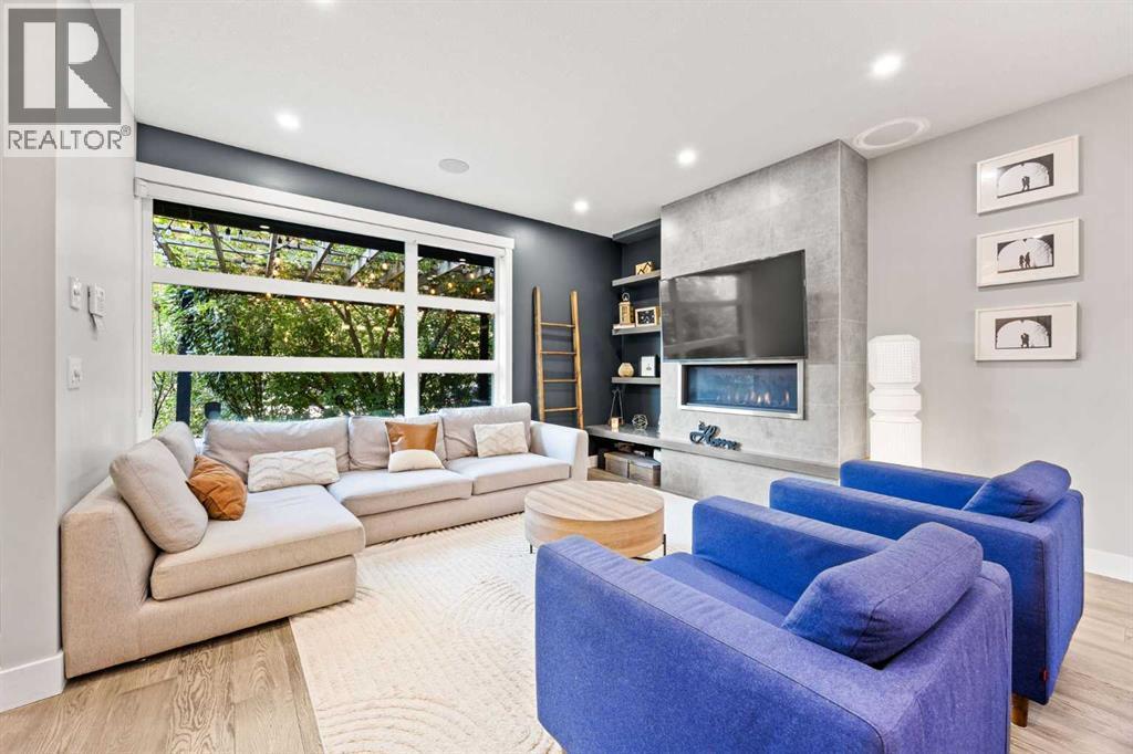 Incredible opportunity to own one of the best priced semi-detached luxury infills in the inner city. A beautiful home in the heart of Bridgeland offering all the perks of city living with no condo or HOA fees. A 5 minute walk from Downtown, Bow River Pathway, and all the amenities the beautiful community of Bridgeland has to offer. Walk or bike to work with the bike lane directly in front of your home. This is not your typical semi-detached property, offering 3 bedrooms + an office with an adjacent rooftop balcony & 3.5 baths, CENTRAL AC, situated on a 36-foot-wide lot, it offers a noticeably more open and spacious feel throughout. Perfectly situated across from Flyover Park, this home features over 2,400 sq. ft. of developed living space designed with comfort and style in mind. Upon entering, you’ll immediately notice the 9 ft ceilings and engineered hardwood flooring that flow seamlessly across the main floor. The bright, wide living room is anchored by a tile-surround gas fireplace with custom built-in shelving, extending naturally into the dining area and open concept gourmet kitchen. The kitchen showcases beautiful quartz countertops, modern white cabinetry, a subway tile backsplash, and stainless steel appliances. A tucked away pantry and 2-piece bathroom complete the main level. The open riser staircase serves as an architectural focal point connecting all levels. On the second floor, you’ll find the serene primary retreat, complete with a walk-in closet and 5-piece spa inspired ensuite. A quiet reading nook within the primary bedroom captures the morning sun through large, bright windows. This level also includes a spacious laundry room for added convenience. Heading up to the third floor, natural light floods the hallway with beautiful downtown views. The open bonus room offers flexible space for a home office, studio, or entertainment area, and opens onto the rooftop deck equipped with a built-in gas line and stunning city skyline views. This level is comp lete with an additional bedroom and a 4-piece bath overlooking downtown. The fully developed basement includes a spacious media room, perfect for movie nights, a fully equipped wet bar, bedroom, and 4-piece bathroom, ideal for guests or extended family.Out front, your private patio is enveloped by mature trees that naturally screen the space from the street, creating a serene and intimate retreat in the heart of the city. Complete with a built-in gas line, it’s the perfect setting for summer BBQs or quiet evenings outdoors. The detached garage offers plenty of space for your car parking needs and generous built in storage for bikes, tools, and all your outdoor essentials. A Walk Score of 94 and a Bike Score of 97, this home offers unbeatable convenience. Steps from Blush Lane Organic Market, Bridgeland Market, Luke’s Drug Mart, UNA Pizza, Village Ice Cream, coffee shops & a variety of beloved local spots. Don’t miss this opportunity. Homes like this with this location rarely come to market in Bridgeland. (id:6769)
