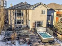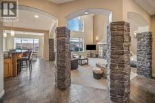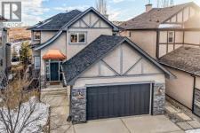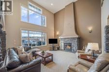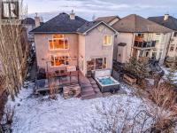 A story-book family home where nature, design, and thoughtful living come together. Offering 5 bedrooms, over 3,500 sqft of developed living space, air conditioning, soaring ceilings, and an open floor plan, this residence is defined by its unbeatable location and timeless backdrop. With no homes behind, enjoy valley views where sunrises, sunsets, and occasional Alberta wildlife become part of daily life in this peaceful nature escape. Tucked quietly into a cul-de-sac with wonderful neighbours, the curb appeal immediately captivates. A new copper entry awning welcomes you inside, equal parts beauty and function while adding character. The spacious front entry offers a large closet and weaves into a private home office with french doors, ideal for work or study. From here, the home opens into the heart of the space, a grand living room anchored by a towering fireplace, stone clad columns, graceful arches, and a wall of expansive windows dressed with Hunter Douglas dual roller shades. Soaring ceilings and a lofted overlook give architectural presence without feeling showy. The open kitchen features quartz counters, stainless appliances, a raised breakfast bar for casual meals or cocktails with friends, and a large corner pantry. Adjacent, the roomy dining nook is wrapped in windows with spectacular ridge views, creating the perfect setting for everyday meals and celebrations alike. Upstairs, balcony views lead you into the primary retreat, spacious enough for a king and featuring a cozy gas fireplace. Two walk-in closets, a linen closet, and a spa inspired ensuite await, complete with double vanities, private toilet, glass shower, and a corner soaker tub perfectly positioned to take in the valley views. Blackout drapes ensure restful sleep. Two additional generous bedrooms share a rare full bath with dual vanities and private toilet, a layout designed for real life. The fully developed lower level is built for entertaining with two spacious bedrooms (one with walk in closet), a full bathroom, and a dry bar with fridge and microwave. There is space for a gym, games, and a cozy theatre nook and in-floor heating on the tiled floor to keep your tootsies warm. Back upstairs, the mudroom and laundry area shine with custom built ins, storage benches, handy hooks, SINK, folding counter, and new washer and dryer, connecting seamlessly to the double attached garage with abundant shelving and storage. The south facing backyard is a showstopper, backing onto an environmental ravine with breathtaking views and ever changing skies. Relax in the hot tub, host dinner parties on the large vinyl deck with twinkle lights, or stargaze around the outdoor fireplace. The fenced yard features perennials, lilacs, garden box, a custom shed, and direct access to miles of pathways. New roof & eaves, new Air Conditioner. Walking distance to K-9 school and playground, close to Beacon Hill, Sage Hill, Nolan Hill, Creekside, with easy access to the airport, downtown Calgary, and the Rocky Mountains. (id:6769)
