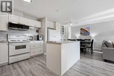 Welcome to this impeccably upgraded 2-bedroom, 2-bath condo in the sought-after Somerset Crossing – one of the largest floor plans available in the complex, offering over 1,000 square feet of beautifully designed living space. Nestled in the heart of Somerset, just steps from Shawnessy’s shopping, dining, and amenities, this stunning home combines comfort, function, and style in one of Calgary’s most walkable neighborhoods. Step inside to discover brand-new luxury vinyl plank flooring flowing seamlessly throughout the main living areas, giving the home a modern yet warm feel. The kitchen has been completely reimagined with a custom flush central island, perfect for prepping meals, entertaining guests, or enjoying your morning coffee. Extended cabinetry, finished with elegant glass insets and a matching countertop, stretches into the spacious dining area—providing tons of extra storage and display space, rarely found in condo living. The open-concept living room is generous in size, basking in sun-soaked Southeast exposure with unobstructed views of the peaceful courtyard and shimmering pond beyond. Step through the sliding glass doors onto your covered patio, where you can relax and enjoy the view—patio furniture included, so you’re ready to unwind from day one. Both bedrooms are privately tucked away, each enjoying bright southeast light. The primary suite features a large closet and a beautifully renovated 3-piece en suite with a stunning oversized walk-in shower, floor-to-ceiling tile, and sleek glass doors. A second 4-piece bath is perfect for guests or family. Practical touches abound, including a spacious entryway with room for a bench and a massive in-suite laundry/storage room—complete with the original island repurposed as a folding station or work surface, along with built-in shelving for smart, out-of-sight organization. You’ll also enjoy the convenience of one titled underground parking stall, and peace of mind knowing you're in a well-managed, sought-af ter building where residents tend to stay for the long haul. With quick access to Macleod Trail & Stoney Trail, Spruce Meadows just minutes away, and walkable access to everything from groceries to coffee shops and fitness studios, this location truly has it all. With quick access to the Somerset C-Train, heading to down town to enjoy all that Calgary has to offer is ideal - perfect to enjoy a nice blend of urban and suburban. Rarely do units like this come available—especially with these upgrades, size, and that unbeatable view. Don’t miss your chance to make this exceptional condo your next home! (id:6769)