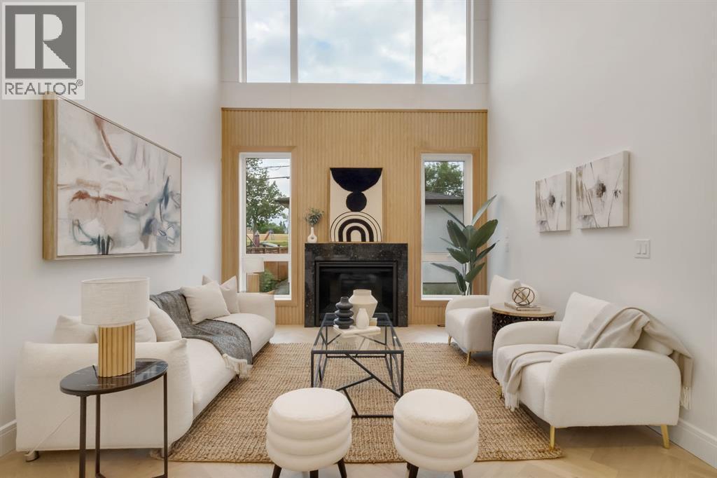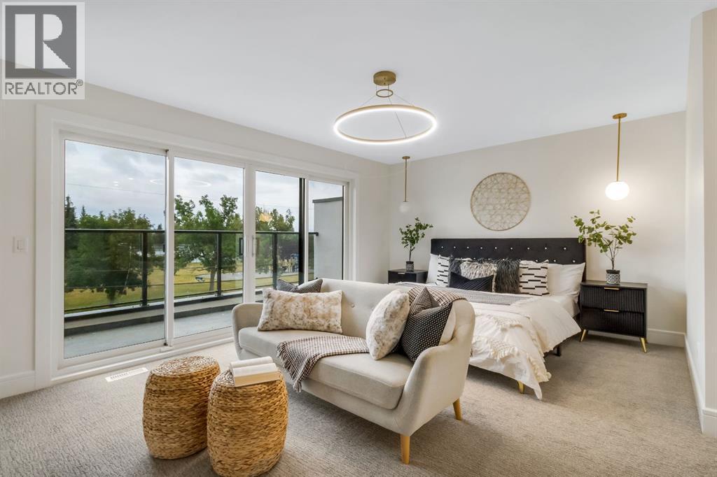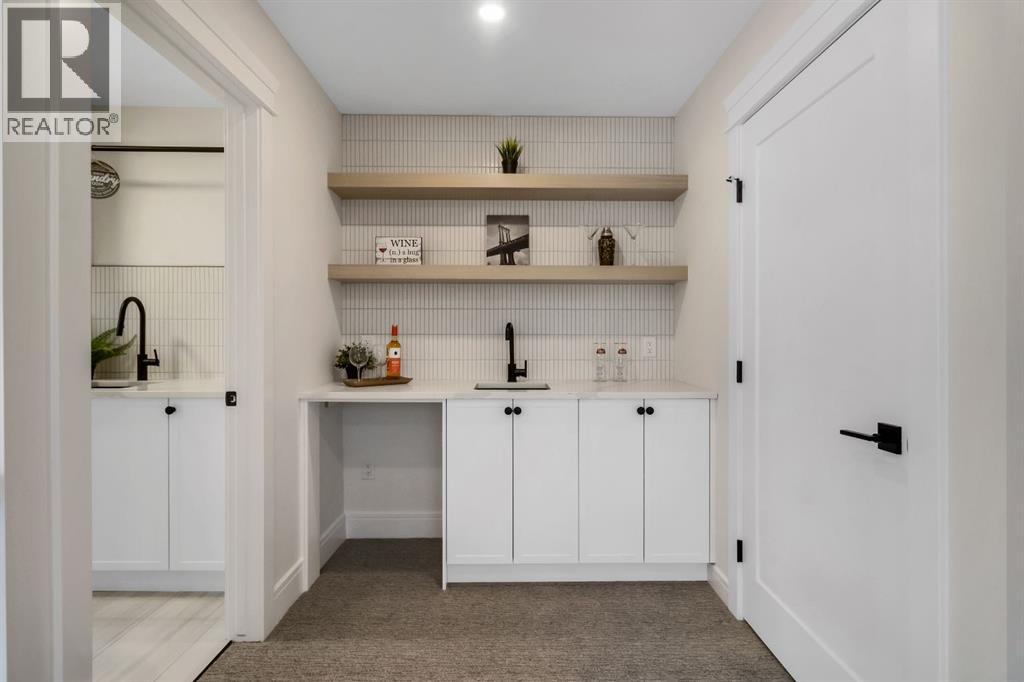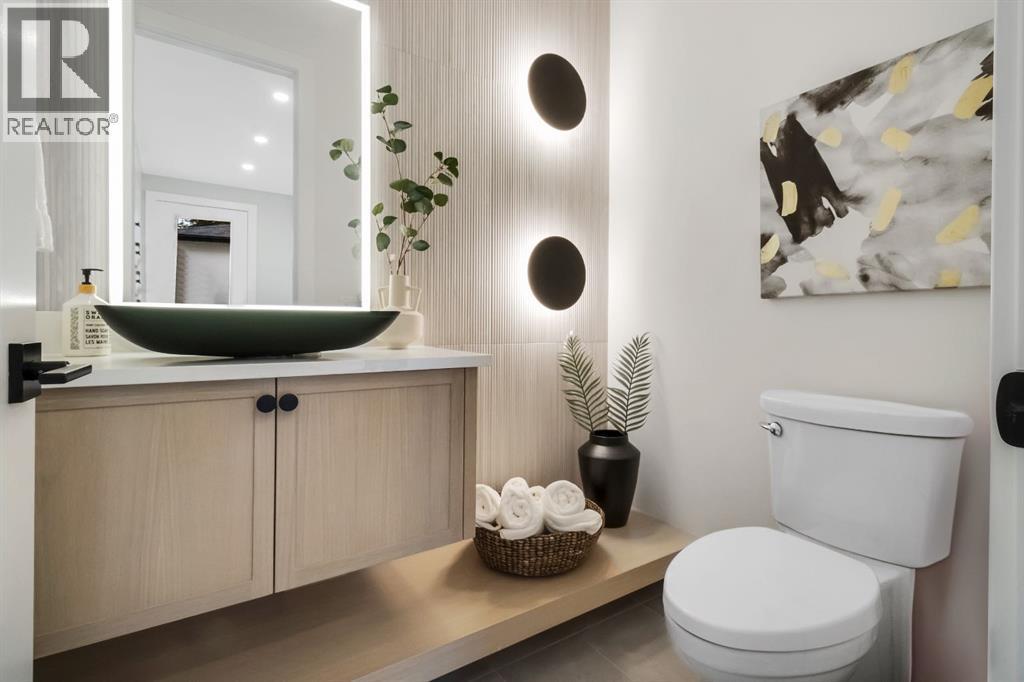 Welcome to this exceptional modern home nestled on a quiet, mature street in the heart of desirable Banff Trail, with a charming park right at your doorstep. Boasting over 3,800 square feet of thoughtfully designed living space across four levels—and serviced by a private elevator—this home seamlessly blends contemporary luxury with everyday comfort. Step into the elegant front den, where custom lighting and a statement feature wall offer a stylish first impression. The main level showcases wide-plank hardwood flooring and a soaring open-to-above layout that brings a dramatic sense of space to the living area. The gourmet kitchen is a true showstopper, equipped with premium appliances, including a 6-burner gas range, and framed by sleek finishes that will delight any culinary enthusiast. A chic powder room, complete with a standout vanity and playful designer lighting, adds personality, while the rear mudroom provides functional storage and access to the backyard. The second level is thoughtfully laid out with two large bedrooms, each featuring a built-in closet, and connected by a spacious Jack-and-Jill bathroom—perfect for family or guests. This floor also includes a cozy bonus room with a built-in bar and a large laundry area with everything you need for convenience. Ascend to the third floor to discover a private primary retreat spanning the entire level. This sanctuary features a generous bedroom, a coffee/wet bar, and a sunny balcony with peaceful views over the backyard and adjacent park. The custom walk-in closet is outfitted with high-end built-ins, and the spa-inspired ensuite is a true retreat, showcasing a dramatic black soaker tub, a double vanity, a stunning tile-clad steam shower, and floor-to-ceiling tile details. Downstairs, the fully finished basement continues to impress with a fourth bedroom, a stylish full bathroom with bold black tile accents, a dedicated home gym, and a spacious media room complete with a wet bar—ideal for movie nights or ente rtaining friends. Outside, the striking architectural is complemented by a welcoming front patio. With quick access to major routes, top schools, and nearby amenities, this home is a rare combination of style, functionality, and unbeatable location.Schedule your private tour today and experience the ultimate in modern inner-city living. (id:6769)