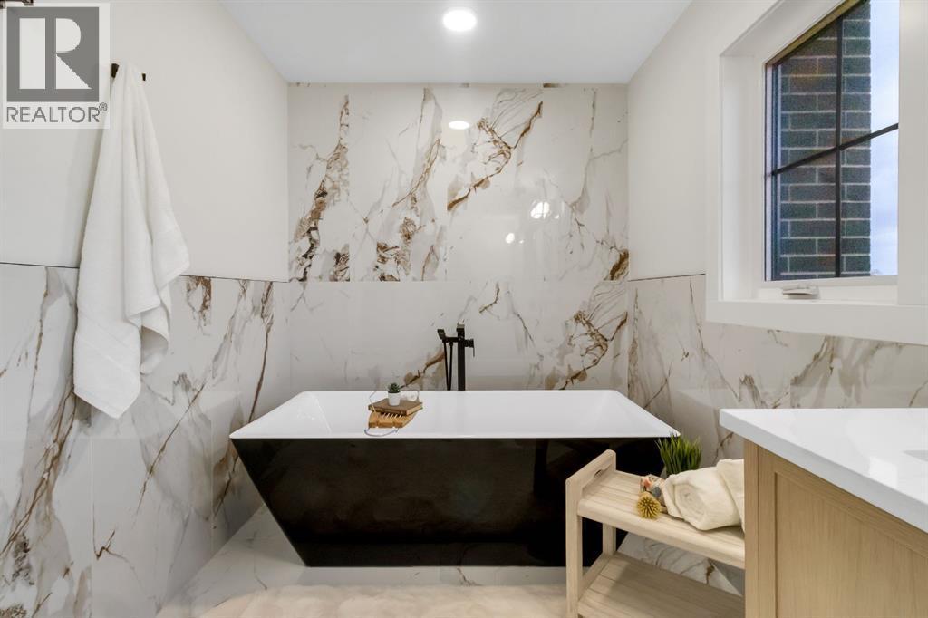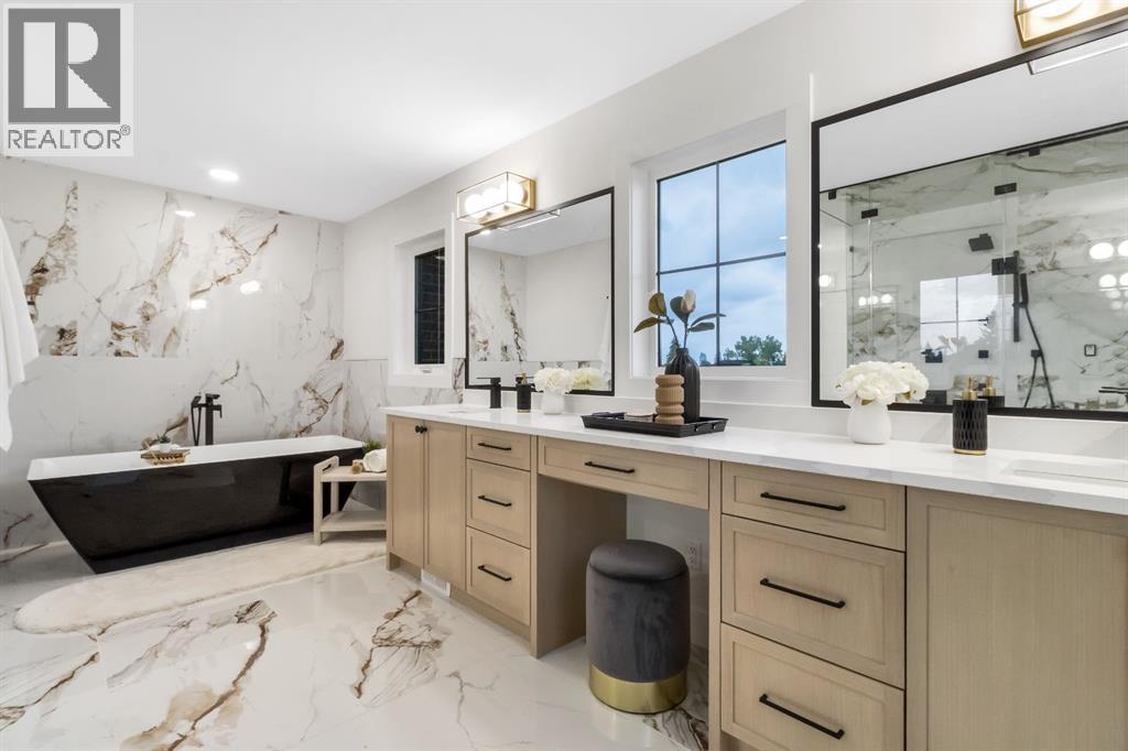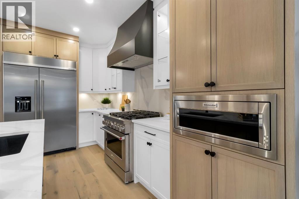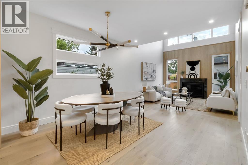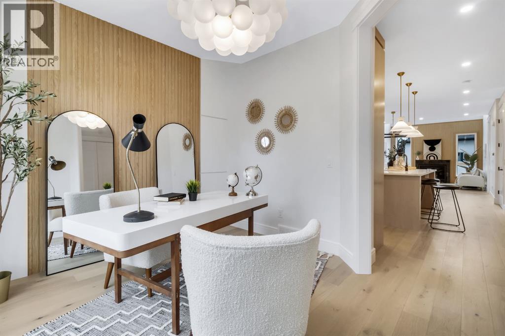 Welcome to this exceptional modern home nestled on a quiet, mature street in the heart of desirable Banff Trail, with a charming park right at your doorstep. Boasting over 3,800 square feet of thoughtfully designed living space across four levels—and serviced by a private elevator—this home seamlessly blends contemporary luxury with everyday comfort. Step into the elegant front den, where custom lighting and a statement feature wall offer a stylish first impression. The main level showcases wide-plank hardwood flooring and a soaring open-to-above layout that brings a dramatic sense of space to the living area. The gourmet kitchen is a true showstopper, equipped with premium appliances, including a 6-burner gas range, and framed by sleek finishes that will delight any culinary enthusiast. A chic powder room, complete with a standout vanity and playful designer lighting, adds personality, while the rear mudroom provides functional storage and access to the backyard. The second level is thoughtfully laid out with two large bedrooms, each featuring a built-in closet, and connected by a spacious Jack-and-Jill bathroom—perfect for family or guests. This floor also includes a cozy bonus room with a built-in bar and a large laundry area with everything you need for convenience. Ascend to the third floor to discover a private primary retreat spanning the entire level. This sanctuary features a generous bedroom, a coffee/wet bar, and a sunny balcony with peaceful views over the backyard and adjacent park. The custom walk-in closet is outfitted with high-end built-ins, and the spa-inspired ensuite is a true retreat, showcasing a dramatic black soaker tub, a double vanity, a stunning tile-clad steam shower, and floor-to-ceiling tile details. Downstairs, the fully finished basement continues to impress with a fourth bedroom, a stylish full bathroom with bold black tile accents, a dedicated home gym, and a spacious media room complete with a wet bar—ideal for movie nights or ente rtaining friends. Outside, the striking architectural is complemented by a welcoming front patio. With quick access to major routes, top schools, and nearby amenities, this home is a rare combination of style, functionality, and unbeatable location.Schedule your private tour today and experience the ultimate in modern inner-city living. (id:6769)