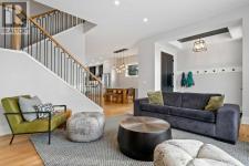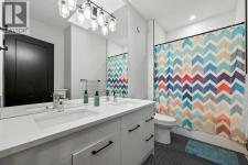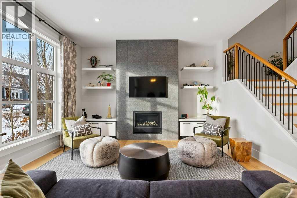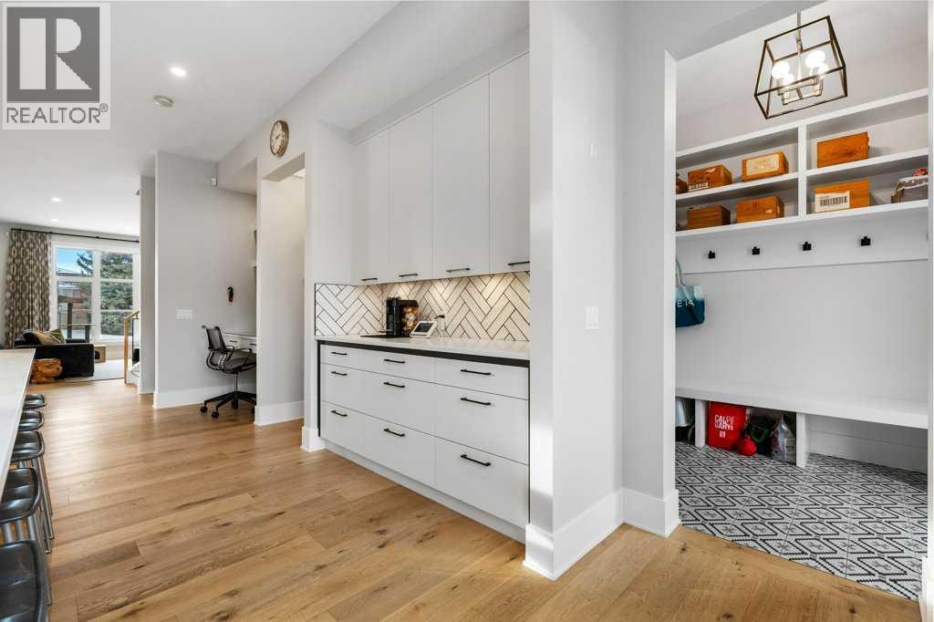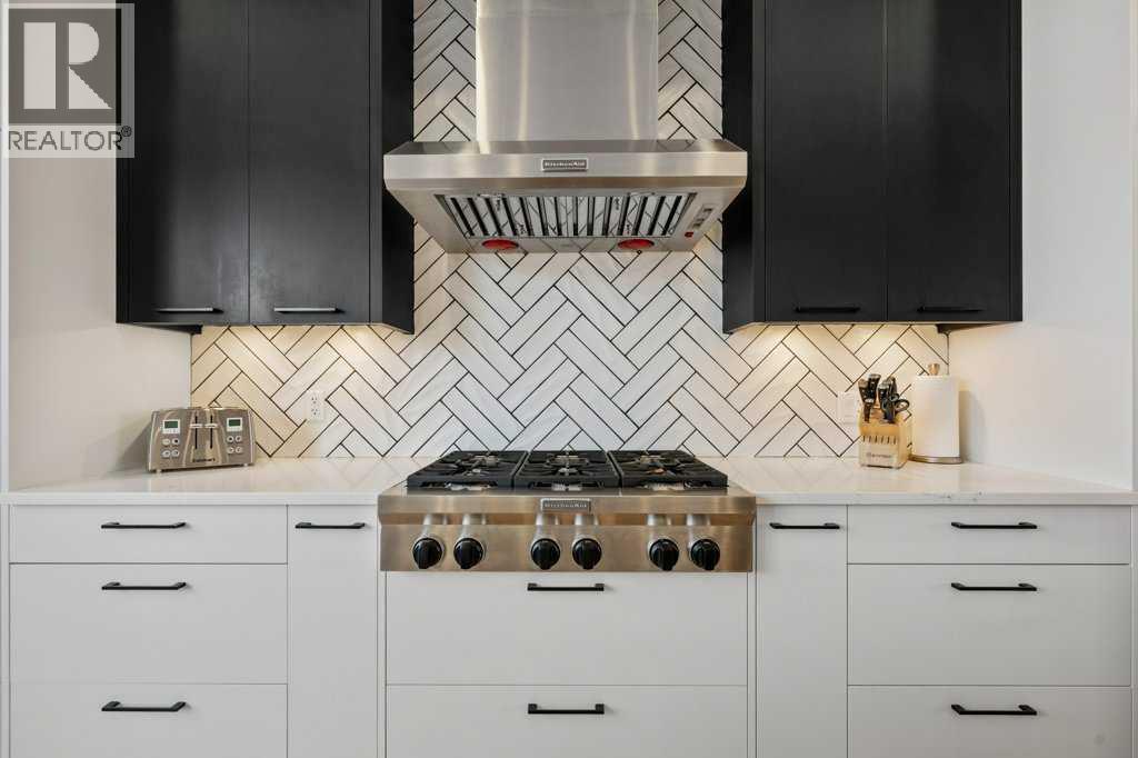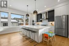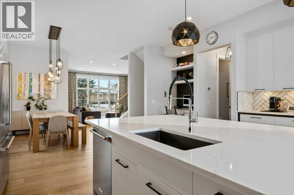 Stunning modern farmhouse located on a quiet street in the heart of the inner-city community of Renfrew. Custom built on a rare 60-foot lot with a 26-foot-wide footprint, this home offers exceptional space and functionality—ideal for growing families. The open-concept main floor is flooded with natural light and showcases 10-foot ceilings, wide-plank engineered oak flooring, solid core doors, custom railings, and a striking gas fireplace with floor-to-ceiling tile and built-in cabinetry from your family size front foyer into the West facing lifestyle room, the perfect start to this impressive plan.The thoughtfully designed kitchen is both stylish and practical featuring extended-height white cabinetry, soft-close mechanics, a massive quartz island, built-in oven and microwave, gas cooktop, French-door refrigerator, walk-in pantry with custom built-ins and an under counter built-in fridge/freezer with pullouts and a built-in desk area. The adjacent wall of windows is overlooking the backyard, with a conveniently located 2-piece powder room and walk in pantry with beverage center completes the main level.Open rail guides you to the 10' ceilings in the upper plan and 3 large skylights. A front primary retreat is a true sanctuary, offering a vaulted 12' ceilings, luxurious 5-piece spa ensuite with heated tile floors (including the shower), freestanding soaker tub, water closet, dual vanities, and a walk-through custom closet with built-ins connecting directly to the upper laundry room with added storage. Two generously sized children’s bedrooms are located at the rear of the home and share a beautifully finished 5-piece bathroom with dual sinks, along with a linen closet.The fully developed basement expands the living space with a large recreation room, built-in media center, as well as a built in wet bar with added storage, a beverage and wine cooler, full-height wine wall and 120-bottle wine towers with quartz counters, a fourth bedroom, a stylish fourth b athroom with curbless walk-in shower, and additional storage.Outside, the property is fully landscaped and fenced, featuring an expansive deck, aggregate concrete walkways, storage shed, and extensive perennial gardens. The oversized double detached garage comfortably accommodates two vehicles with room to spare. Additional highlights include central air conditioning and high-end finishes throughout.This is a quality-built inner-city home offering space, craftsmanship, and modern comfort in a highly desirable, family-friendly location one block to the walking embankment and groomed paths as well as close to parks, schools, amenities, and downtown access. (id:6769)