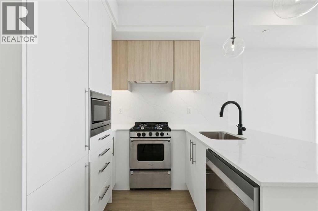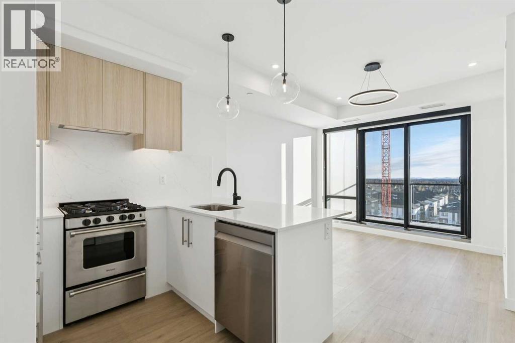 Welcome to this brand new, south-facing 2-bedroom, 2-bathroom residence offering bright, open, and modern living. The thoughtfully designed interior features durable vinyl plank flooring throughout and a sleek, efficient kitchen complete with a gas range, panel-ready Fisher & Paykel refrigerator, quartz countertops, and contemporary finishes. Enjoy seamless indoor-outdoor living with a large south-facing balcony showcasing stunning mountain views—perfect for relaxing or entertaining. The spacious primary bedroom is a true retreat, highlighted by a spa-inspired ensuite. A second interior bedroom and a well-appointed guest bathroom complete the layout. Additional conveniences include central A/C, in-suite washer and dryer, underground parking, and a dedicated storage locker. Located in a brand new Truman-built building, residents enjoy premium amenities such as a full fitness centre, games/owners lounge, dog wash, and car wash. Set in a prime west-end location with everything you need close by, this home offers exceptional value and lifestyle. Book your private viewing today! (id:6769)