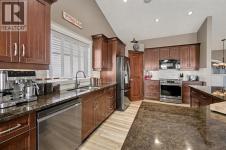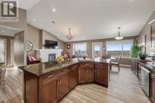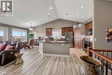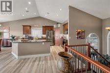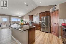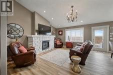 Breathtaking MOUNTAIN VIEWS from your living room, dining room, and backyard! Incredible LOCATION with NO neighbours behind you. You will be immediately IMPRESSED by this BEAUTIFUL and IMMACULATE home from the moment you arrive. This stunning home has almost 2,700 sq. ft. of finished living space.As you enter, you are welcomed by a spacious foyer and a large flex room — perfect for a dining room, home office, or kids’ playroom. A few stairs up is the BRIGHT and OPEN main level with VAULTED ceilings. The large GOURMET KITCHEN has a massive ISLAND and tons of counterspace and cabinets, as well as newer STAINLESS STEEL appliances, overlooking the dining and living rooms. The living room features a cozy FIREPLACE.Patio doors lead to your spacious DECK — complete with a powered awning and fenced yard — where you can sit back, relax, and enjoy the stunning MOUNTAIN VIEWS and incredible SUNSETS. The main floor also has 2 bedrooms, 2 full bathrooms, and laundry. The large primary bedroom features a spa-inspired ENSUITE with an oversized soaker tub AND a double walk-in shower.The lower level is fully FINISHED with a large rec/family room and a second kitchen complete with a breakfast bar. There are also 2 additional bedrooms, another full bathroom, separate laundry, plenty of storage, and in-floor heat. The LARGE HEATED Double Attached GARAGE (approx. 583 sq. ft.) has 10’ doors, 11’5” ceilings, and a 3-phase power supply.Some additional features of this stunning home include irrigation for the front and gardens, including flowerbeds, central AC, and NEW flooring on the main level. Don’t miss out on this opportunity to own in the sought-after community of Highwood Village! Homes with stunning MOUNTAIN VIEWS like this don’t come on the market very often! (id:6769)