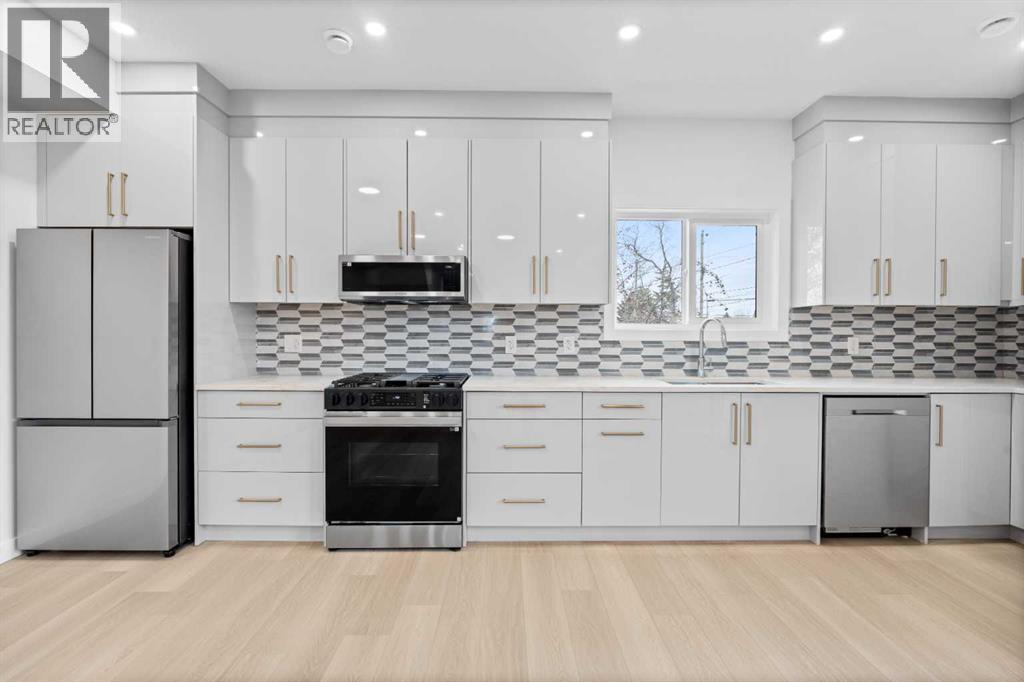 Brand new,2026 constructed 6-plex featuring 4 bedrooms and 3 full bathrooms. The main floor boasts a bedroom with a full standing shower, a modern kitchen equipped with high-end stainless steel appliances, and gas stoves. The kitchen also includes a built-in pantry for added convenience. Upstairs, you will find 3 generously sized bedrooms and 2 full bathrooms, along with front-load washers and dryers for efficient laundry care. LEVEL 7 VINYL FLOORING THRU OUT ALL 6 UNITSEach basement unit is designed with 2 spacious bedrooms with oversize windows, a living room, kitchen/dining area, and separate laundry facilities. The back units offer 2 bedrooms and a den. The building is equipped with 6 gas meters, 6 electric meters, 3 bike storage areas, 3 storage units, and 3 single garages. Located conveniently close to all amenities, this property provides modern living with unmatched functionality. (id:6769)