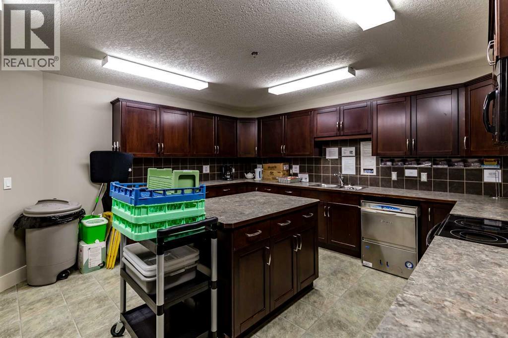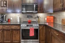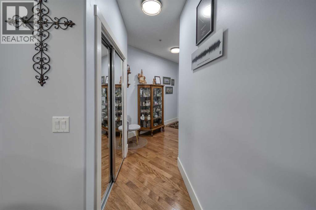 Welcome to Cochrane's most prestigious condo complex. Situated along George Fox Trail, Lofts on the Bow overlooks soccer fields, a playground area, the Bow River and the Big Hill. This two bedroom, two bathroom condo plus a Den is an end unit and features a private patio adjoining the 7,000 square foot Courtyard. The patio comes with a gas hookup for your BBQ and also has a storage room included. Inside, this unit features Hardwood floors throughout except in the bathrooms and Laundry room. They have linoleum flooring. The Kitchen has granite counter tops and lots of cabinets. The lower cabinets have pullout shelving. The ceilings are 9 feet tall and makes the area look larger. New lighting throughout and unit has all new paint. All appliances are included and are just 1 year old. This condo is secluded and sheltered and great for bird watching. This complex is a 55+ building and has many amenities including a pool table for those who like that, a workout room with various machines, a meeting room/ quilting room, a full kitchen and banquet facilities. There are also two guest suites that can be rented for your guests comfort. One Titled and heated underground parking space is included and there is a car wash in the Parkade. There are also lots of outside parking spaces on either side of the condo building and extra ones at the back of the building for those oversized vehicles. Come and check out this unit soon as it won't last long. (id:6769)