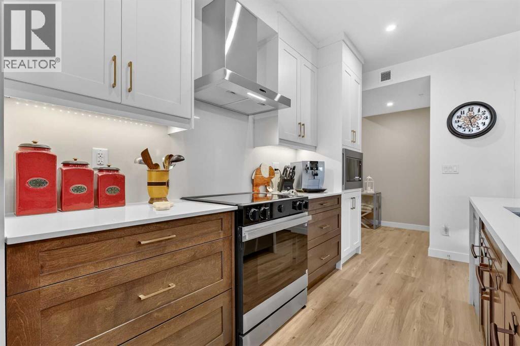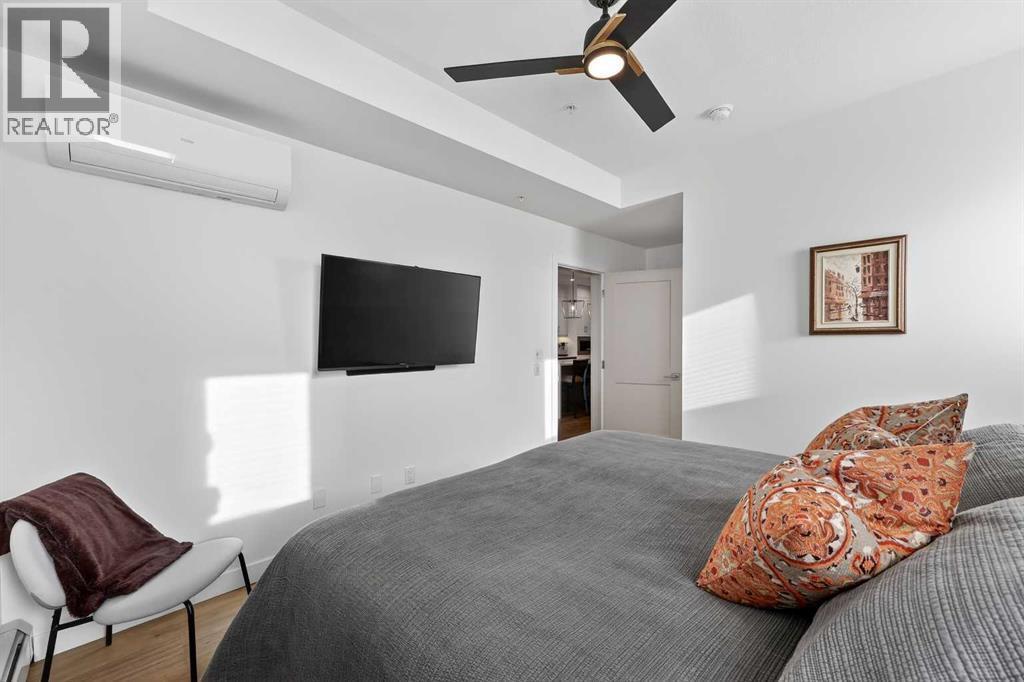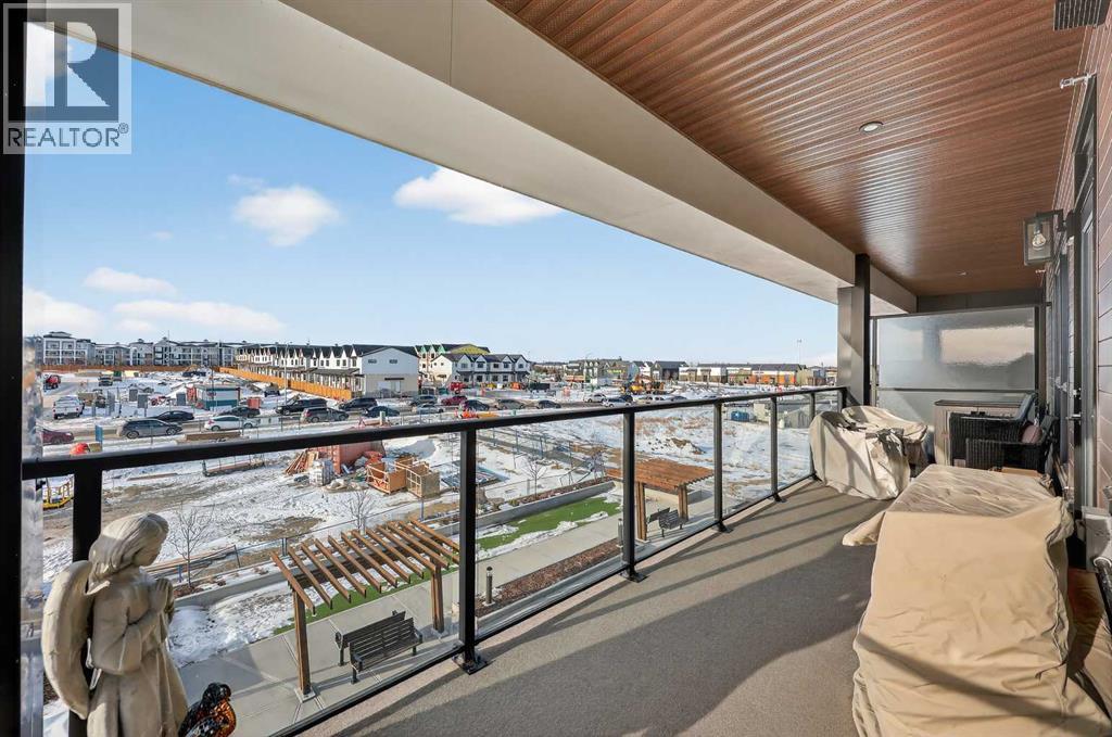 ** NEW LISTING ** Waterside Mahogany - Third Floor Corner Model "Atwood 3" with Courtyard Views - Quick Possession!! Unbelievable VALUE & DESIGN! This superb air-conditioned condo offers two bedrooms, two bathrooms, a titled indoor tandem parking stall (2 cars), extra tall windows, south exposure, a 160 SF covered balcony, and high 9' ceilings. Many Designer Value Added features ... Check and Compare; 974 RMS sq. ft. of luxurious living space. Loaded with extras... Luxury wide plank engineered flooring, upgraded lighting and plumbing fixtures, dual pane Low-E windows, wide patio door, modern white painted casings, doors & baseboards, white decora light switches, convenient laundry with storage & stacked washer/dryer. High-end stainless steel appliance package: fridge with freezer below, built-in microwave, smooth top electric cooktop, and quiet Energy Star-rated tall tub dishwasher. Upgraded Kitchen cabinets with tall upper doors + soft-close drawers + extra floor cabinets + mouldings with under-cabinet lighting, white quartz island countertops, undermount dual-basin stainless steel sink, full-height quartz backsplash, pull-out kitchen faucet, dramatic centre island with waterfall ends, flush eating bar, and room to sit 4. BONUS features: California closet built-in canisters, electric fireplace, and assigned storage locker! BUILDING INFO: latest in acoustic attenuation technology, including Sonopan panelling, combined with real-world testing to achieve best-in-class results. Acoustic Shield 2.0 helps create a calm, peaceful environment where life’s best moments thrive, because every home deserves comfort and connection without the noise. ERV - Advanced Ventilation System - This energy-efficient technology is designed to draw fresh air from outside, filter it, warm it (as needed), and circulate clean air into your home, exhausting the old. In every individual condo. Plus, a supersized front foyer and private entry! Mahogany is Calgary’s premier four-season lake commu nity, centred around a stunning 63-acre freshwater lake and 22 acres of private beachfront. Residents enjoy exclusive access to swimming, kayaking, paddleboarding, fishing, skating, and year-round community events, all just steps from home. The award-winning Mahogany Beach Club offers recreation facilities, picnic areas, fire pits, playgrounds, and gathering spaces designed to bring neighbours together. Winding pathways, parks, and wetlands create a welcoming outdoor lifestyle, while nearby schools, transit, and major roadways provide everyday convenience. At the heart of the community, Mahogany Village Market features grocery, dining, cafés, fitness, and professional services—making it easy to live, work, and play close to home. Thoughtfully designed streetscapes, diverse housing options, and a strong sense of community make Mahogany one of Calgary’s most desirable places to live. (id:6769)