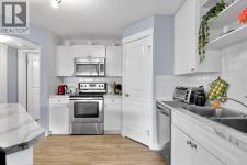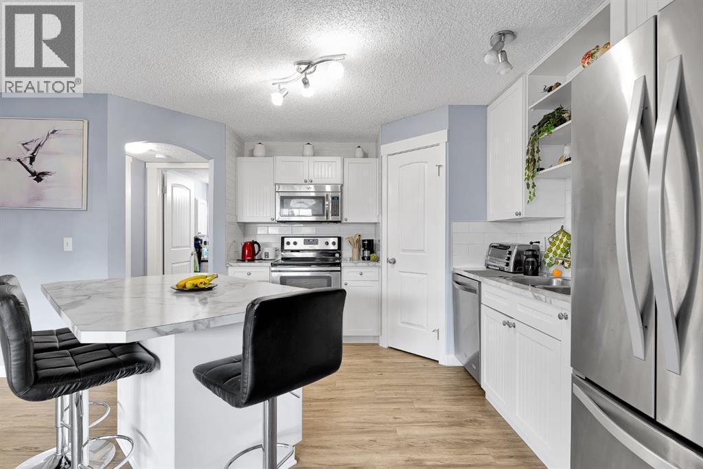 Welcome to this stylish corner-unit, single-level townhouse condo in the highly desirable Southwest community of Evergreen. Offering approximately 800 sq. ft. of thoughtfully designed living space, this bright and inviting home features a sun-filled open-concept layout perfect for both everyday living and entertaining.The welcoming foyer includes a functional closet, while in-floor heating throughout the unit ensures year-round comfort. The modern white kitchen is equipped with stainless steel appliances, a convenient pantry, and a large central island, seamlessly connecting to the spacious living and dining areas. Large windows allow natural light to pour in, enhancing the airy and welcoming feel throughout the home.This well-appointed layout offers two generous bedrooms and one beautifully finished bathroom, creating a comfortable and inviting retreat. You’ll also appreciate the dedicated laundry room and additional storage, adding to the home’s practicality.Enjoy the rare convenience of two parking stalls — one titled and one assigned — and an unbeatable location that truly elevates everyday living. Just steps from Fish Creek Provincial Park, and close to schools, parks, shopping, transit, and major routes including Macleod Trail and Stoney Trail, this home offers the perfect blend of comfort, style, and accessibility. (id:6769)