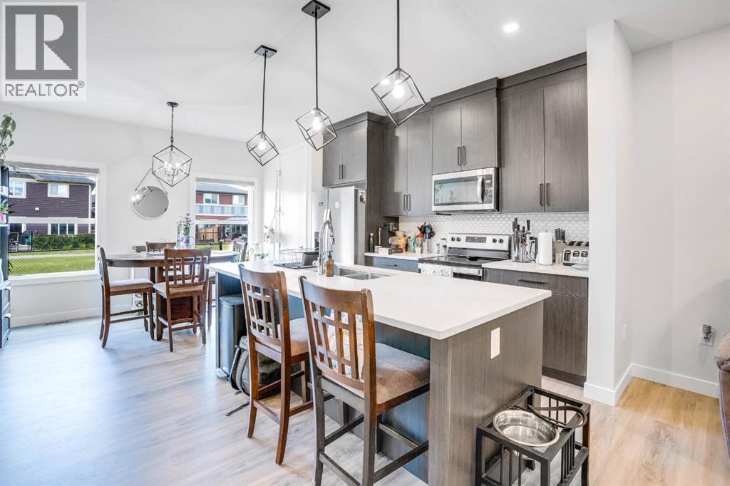 Welcome to this stunning semi-detached home with a front-attached garage, nestled in the vibrant and family-friendly community of Midtown, Airdrie. Thoughtfully designed with both style and functionality in mind, this two-storey home is perfect for families or anyone seeking a modern, connected lifestyle. Step inside to a bright and contemporary kitchen overlooking the charming courtyard, complete with sleek countertops, stainless steel appliances, and a spacious centre island. The open-concept main floor flows effortlessly, creating the ideal space for everyday living and entertaining. Upstairs, you’ll find three spacious bedrooms, including a luxurious primary suite featuring a walk-in closet and a private ensuite. A convenient upstairs laundry and an additional full bathroom complete this level. An unfinished basement with its own side entrance, ready to be transformed into a space that fits your needs. Outside, enjoy a large backyard along with access to scenic walking paths, schools, shopping, and all of Airdrie’s best amenities just minutes away. (id:6769)