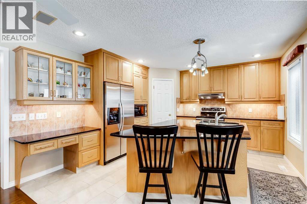 Offered for the first time, this original-owner home is in truly immaculate condition and has been thoughtfully updated over the years. With spacious principal rooms, timeless finishes (including gleaming hardwood floors on the main, stairway and upper hallway) and exceptionally cared for throughout, this is a property that stands out from the moment you arrive. A welcoming front foyer opens to a bright front living room and adjacent dining room, perfect for hosting family and friends. The chef-friendly kitchen is the heart of the home, featuring an expansive granite island, custom full-height oak cabinetry, pantry, new vinyl plank flooring and a sunny dining nook. The main-floor family room offers a cozy place to relax, while a main-floor den provides ideal space for a home office or quiet retreat. Upstairs, the generous size primary bedroom is finished with warm cork flooring, a large walk-in closet, and a luxurious spa-like ensuite with jetted tub, separate shower, twin-sink vanity, and heated floor. Two additional bedrooms, a bonus room with closet (could be used as a 4th bedroom), plus a 5-piece family bathroom with heated flooring and a huge laundry room for added convenience complete this level. The fully developed lower level features a recreation room with electric fireplace, a games room, and roughed-in plumbing for a future bathroom. Practical upgrades include two furnaces, two hot water tanks, and two air-conditioning units, ensuring comfort and efficiency year-round. Additional highlights include an oversized double attached garage that is insulated and drywalled, updated windows, 40-year shingles installed in 2009, and low-maintenance Trex decking on both the front verandah and rear decks. Ideally located just minutes from the recreation centre and lake, local schools, Fish Creek Park, and with excellent access to LRT, Stoney Trail, and Deerfoot Trail, plus shopping and entertainment at The Shoppes of Shawnessy and Shawnessy Village. This is a rare opp ortunity to own a beautifully maintained, move-in-ready home in an outstanding location. Don’t miss this exceptional property. (id:6769)
