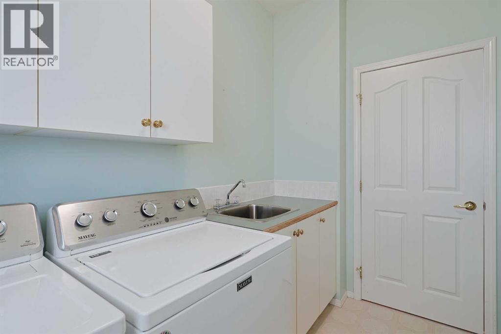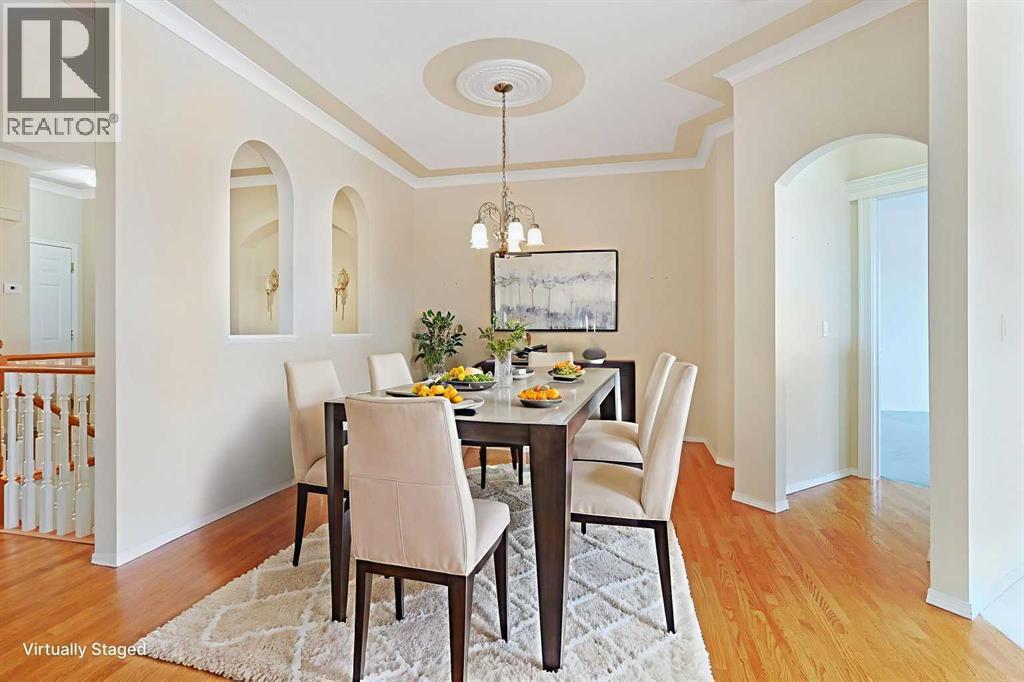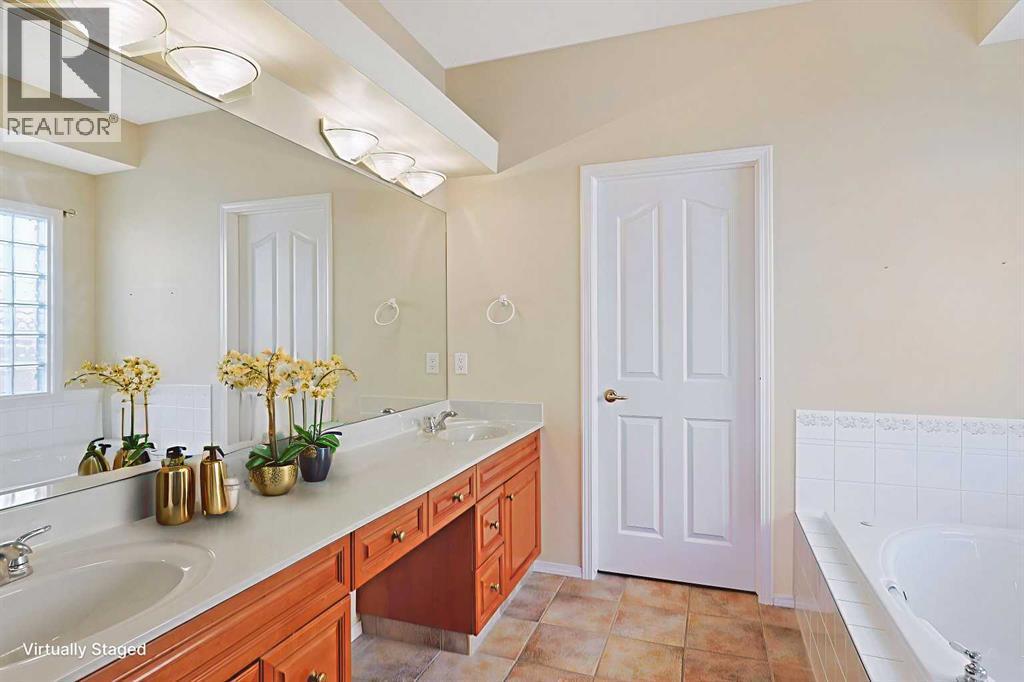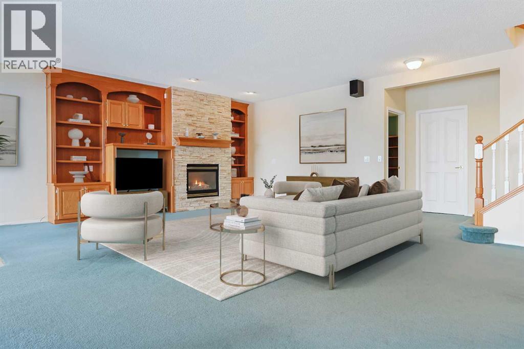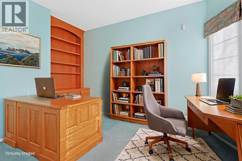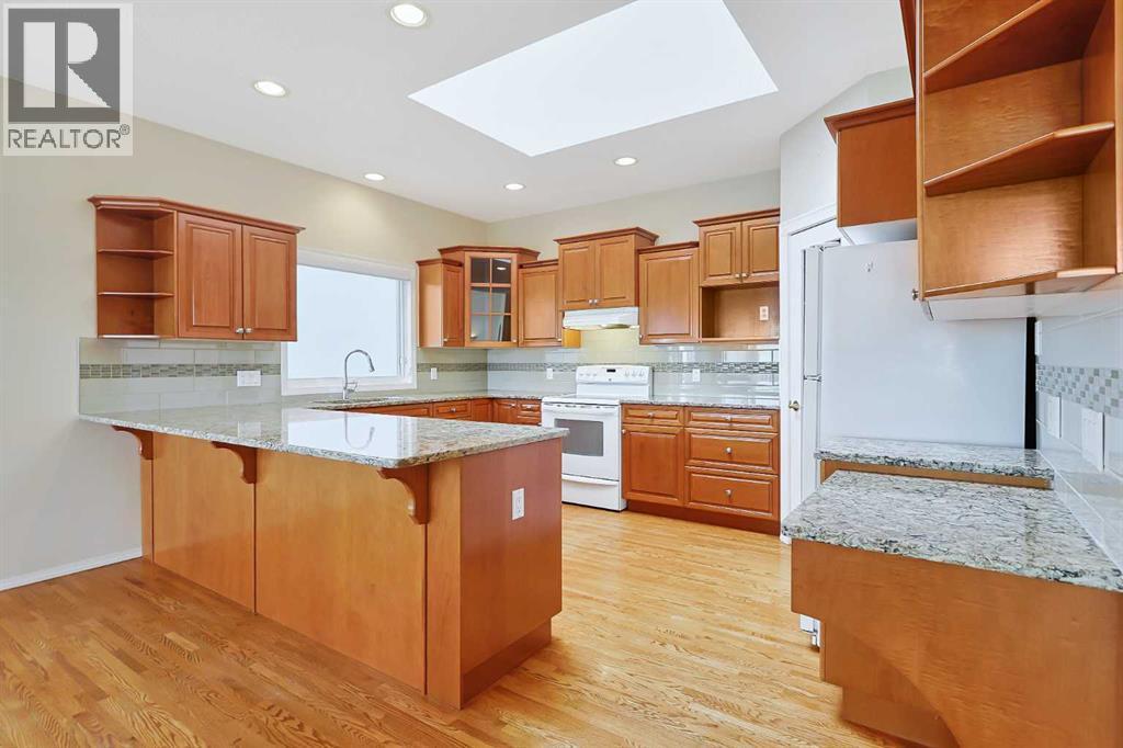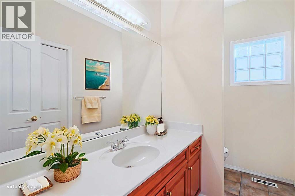 Lovingly maintained by the original owners, this wonderful home is ready & waiting for a new family to make it their very own, located here on exclusive Hamptons Heights backing onto the prestigious Hamptons golf course. Surrounded by breathtaking views of the 16th hole & distant horizon, this mint condition walkout bungalow enjoys beautiful hardwood floors & central air, 3 bedrooms + den, 2 toasty gas fireplaces & 2 fantastic decks to take in the glorious wide open views. Complemented by 9ft ceilings & expansive picture windows, you will just love the inviting & airy feel of the main floor with its stunning living room with 11ft stepped ceilings & 3-sided fireplace, elegant open concept formal dining room & sun-drenched maple kitchen with skylights & quartz counters, walk-in pantry & white/stainless steel appliances. A French door from the dining nook leads out onto the L-shaped balcony…with a covered section & almost 300sqft of outdoor space. The relaxing owners’ retreat has a big bay window with views of the golf course, great-sized walk-in closet & jetted tub ensuite with double vanities & separate shower. The beautifully finished walkout level – with infloor heating, has 2 large bedrooms (1 with a big walk-in closet), another full bathroom, loads of extra space for storage & fantastic games/rec room with wet bar, stone-facing fireplace & built-in cabinets. The main floor also has a dedicated home office with desk (included) & built-in bookcases, & laundry room complete with Maytag washer & dryer, sink & built-in cabinets. In addition to the balcony, you’ve also got a 300+sqft patio in the backyard, which is fully fenced & landscaped, & comes complete with winding gardens, mature shrubs & trees. Other features include crown moldings, finished garage, red brick façade & clay tile roof, Hunter Douglas blinds, 2 hot water tanks, central vacuum system & storage shed in the backyard for your gardening tools. Not-to-miss opportunity to make your home on one of the Ham ptons most desirable streets, only a few short minutes to all community amenities (Hamptons School, tennis courts & sports fields), shopping at the Hamptons Co-op & Edgemont Superstore, plus quick & easy access to Crowfoot Centre & LRT, University of Calgary, hospitals, major retail centers & downtown. (id:6769)