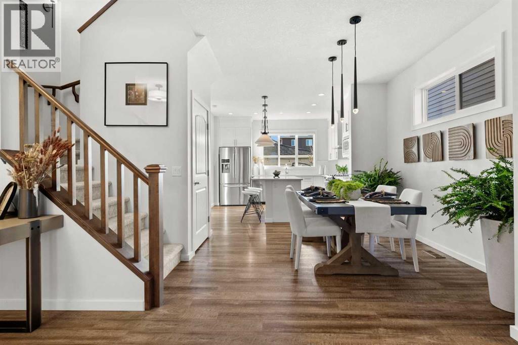 Welcome to this stunning 3 bedroom, 2.5 bathroom home in the desirable west Cochrane community of Heritage Hills. Combining modern comfort with timeless charm, this property offers the perfect balance of style, functionality, and location. From the inviting front porch to the thoughtfully designed interior, every detail has been carefully considered. The open concept main floor is filled with natural light, creating a warm and welcoming atmosphere. The spacious living room flows seamlessly into the dining area and modern kitchen complete with sleek stainless steel appliances including a gas range, ample cabinetry, and plenty of counter space — perfect for family meals or entertaining guests. Upstairs, you’ll find three generous bedrooms, including a primary suite featuring a walk-in closet and private ensuite bathroom. Two additional bedrooms, full laundry room and a full bath provide plenty of room for family or guests. The basement offers endless potential to customize the space to suit your needs — whether it’s a recreation room, home office, gym or additional living area. Outdoors, enjoy a low maintenance landscaped rear yard with a patio ideal for relaxing or hosting summer barbecues. The oversized detached double garage provides ample parking and storage space, and features a secondary overhead garage door offering convenient backyard access. Located just steps from a playground and minutes from amenities and scenic walking trails, with exceptional access to the majestic Rocky Mountains, this home perfectly blends convenience and community. Experience the best of Cochrane living in this exceptional Heritage Hills home. (id:6769)