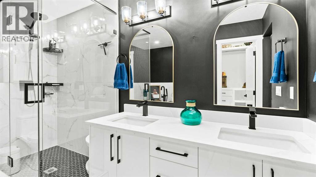 Gorgeous, substantially renovated and remolded bungalow in a premium location. Situated in the highly sought after NW community of Silver Spring and only minutes away from the extensive Bow River pathway system and beautiful Bowmont Park. Modern open concept plan is ideal for entertaining. Rich hardwood flooring stretches throughout the main level. The large central quartz waterfall island highlights the huge gourmet’s kitchen. Ample amounts of white slab style cabinetry and quartz countertops. Classic white subway tile backsplash. Stainless steel appliances include a gas stove, and custom hoodfan concealed behind Oak slats. The adjacent living room showcases a custom built-in lower wall unit with fireplace and Oak slat highlights. Luxurious primary suite features his and hers closets plus a third walk-in closet with built-ins. Spa style ensuite bath is highlighted buy a separate walk-in tiled shower and a gorgeous freestanding soaker tub plus a tile floor, quartz countertops and dual sinks. Secondary bedroom and a full bath with matching finishes round out the main level. The fully developed lower level adds to your living space and offers a fantastic built-in wall unit plus a fully custom built-in wet bar that’s makes this the perfect spot for movie night or watching the big game. 2 more generous bedrooms plus another full bath, home gym and laundry room complete the lower level. Beautifully landscaped. Multiple outdoor living spaces Double detached heated garage. Central A/C. All new windows, exterior paint and concrete walkways. Wow! Nothing to do but move in and enjoy! (id:6769)