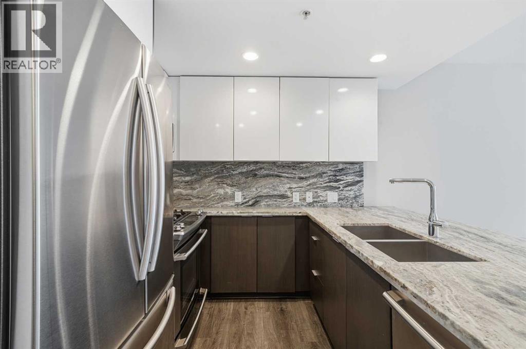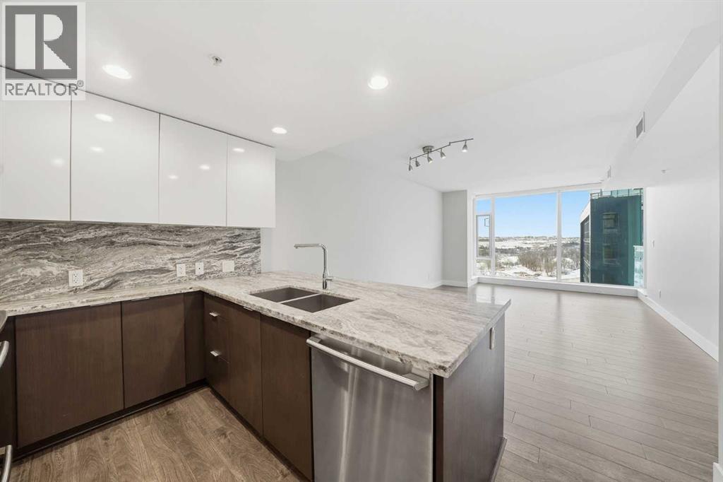 Welcome to Evolution, where city living meets incredible views and an unbeatable location. This bright and beautifully designed 2 bedroom plus den, 2 bathroom home offers nearly 900 sq ft of thoughtfully planned space with panoramic views of the Bow River and St. Patrick’s Island Park. The kitchen is both stylish and functional, featuring stainless steel appliances including a gas range, granite countertops, and plenty of cabinetry, all opening seamlessly into the dining and living areas, perfect for entertaining or everyday living. Floor to ceiling windows fill the home with natural light and lead out to an expansive balcony where you can soak in the city skyline. The bedrooms and bathrooms are tucked away for privacy while still enjoying the same stunning views and sunshine, and the den makes an ideal home office or flex space. In suite laundry, underground parking, and additional storage add everyday convenience. Residents of Evolution enjoy concierge service, visitor parking, two fitness rooms, steam and sauna rooms, and a beautiful elevated courtyard and lounge. Located in the heart of East Village, you are just steps to the Calgary Public Library, Studio Bell, the Simmons Building, river pathways, great dining, green spaces, and more, making this a fantastic opportunity to enjoy vibrant, walkable downtown living. (id:6769)