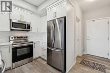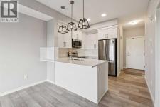 Welcome to The Rise—this bright, top-floor 2-bedroom, 1-bathroom condo offers move-in ready living. Freshly painted with new carpet, the open-concept layout is filled with natural light and complemented by vinyl plank flooring. The sleek kitchen is a standout, featuring quartz countertops, stainless steel appliances, full-height cabinetry, and a classic subway tile backsplash—perfect for everyday living and entertaining. The sunny living area opens to a west-facing balcony with a gas line for summer BBQs overlooking the courtyard. The spacious primary bedroom features a bright west-facing window and a closet, while the second bedroom is ideal for guests, a home office, or a nursery. A 4-piece bathroom and a convenient laundry/storage room complete this fantastic unit. Additional features include a TITLED outdoor parking stall, visitor parking, and plenty of street parking. Enjoy a pet-friendly community with ample outdoor activities including parks and walking paths, plus unbeatable access to Deerfoot and Stoney Trail, the airport, shopping, restaurants, schools, and entertainment. All you need is the key! (id:6769)